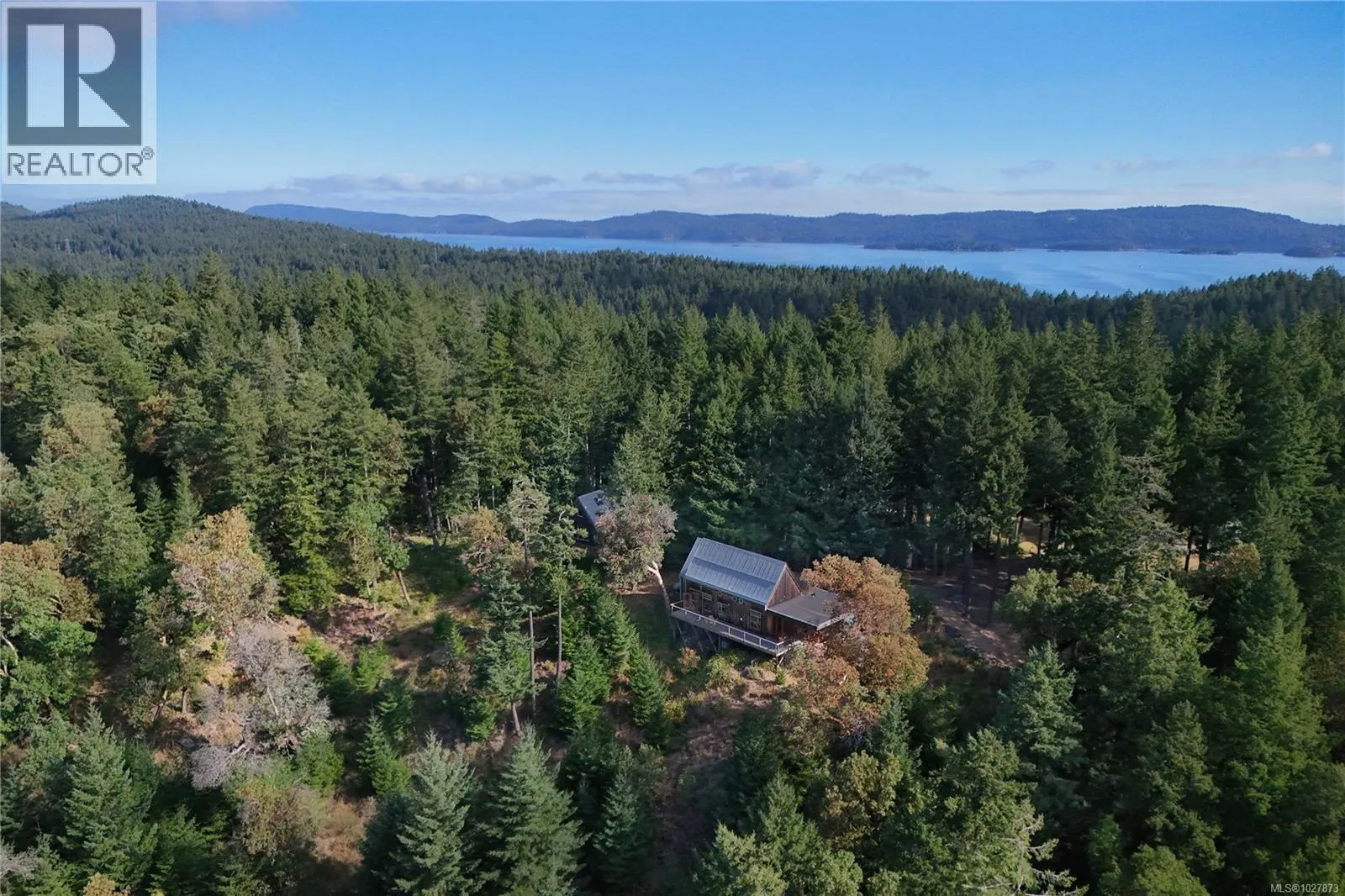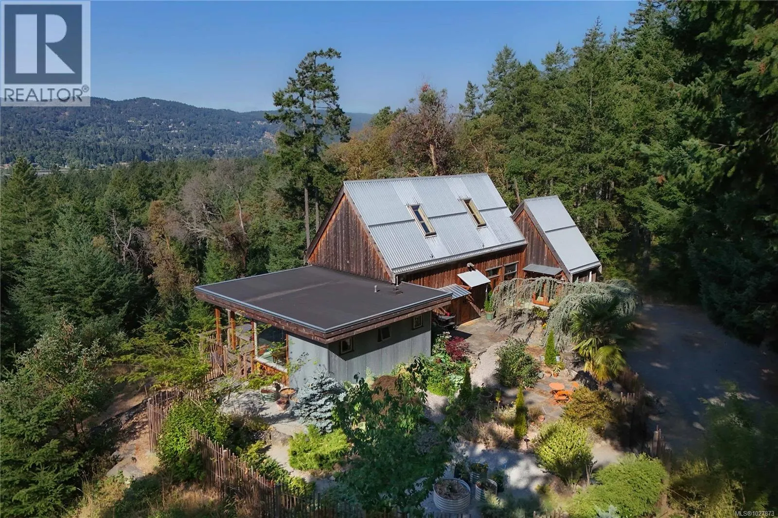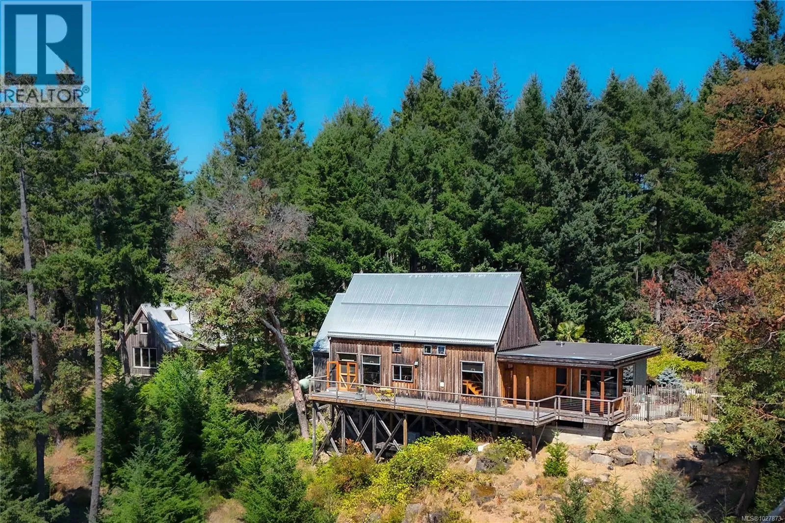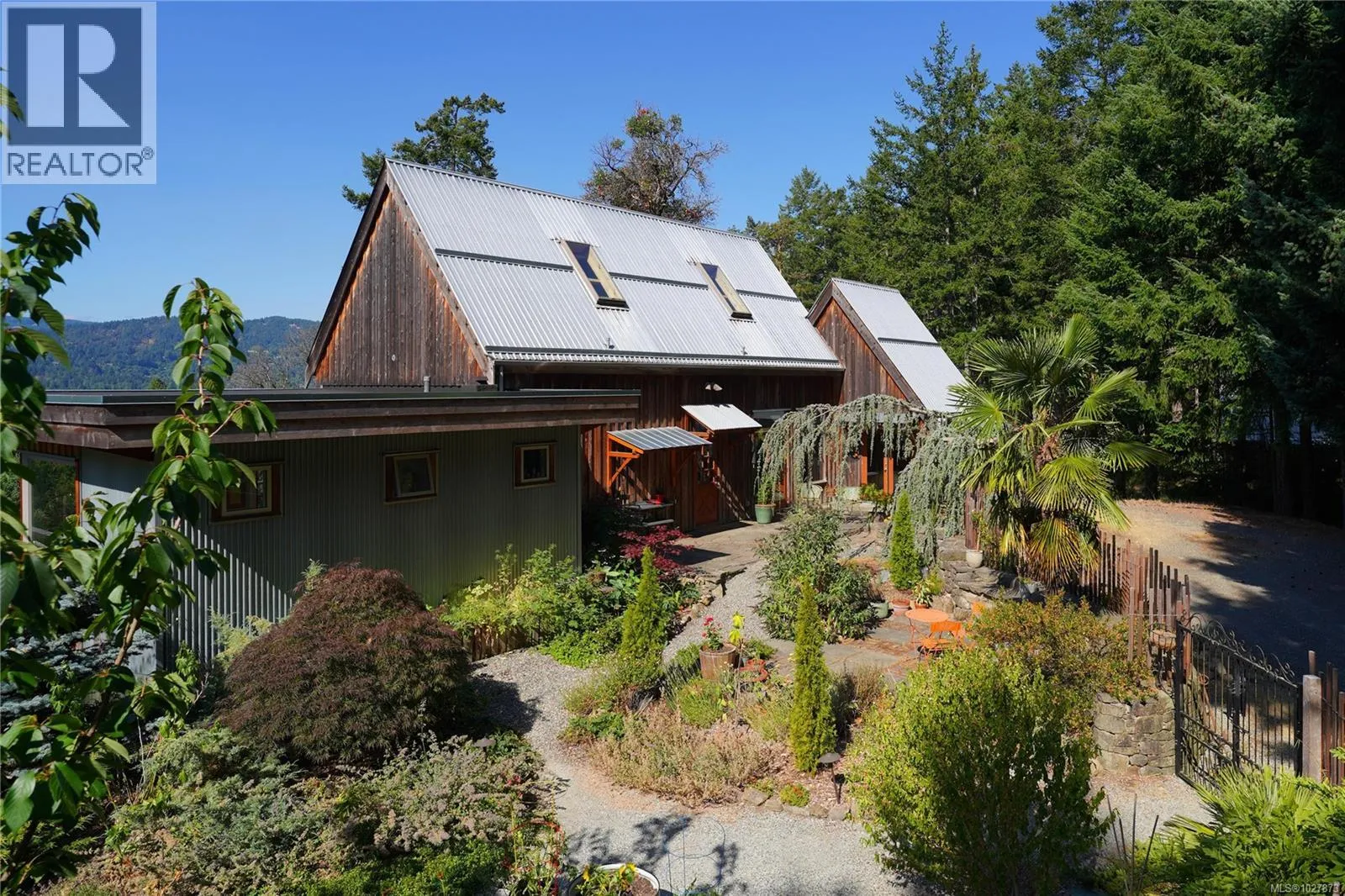 Stylish Salt Spring Sanctuary. Set back on a private 3-acre lot, this designer tree house offers views from every window. An open floor plan with a vaulted cathedral ceiling is further enhanced by unique metal walls and a propane fireplace for chilly nights. Two generous bedrooms at opposite ends of the house, each with access to outdoor space, are complemented by two modern bathrooms. An open 280-sq. loft provides another living space or guest bedroom with elevated views. South-facing, an expansive cedar deck with cable wire railings wraps around the house, creating a seamless indoor/outdoor living experience amongst the arbutus trees. On the front side, a fully-fenced French-inspired courtyard with a stone patio provides a serene outdoor setting perfect for entertaining. Down its own driveway, a 1074-sq. ft. additional building offers a multi-purpose space with soaring timber ceilings, perfect for a home office, workshop, or gallery space. With a boat launch down the road, the Long Harbour ferry minutes away, and all the conveniences of Ganges close by, a turn-key Salt Spring Island property awaits on Little Mountain. (id:27476)