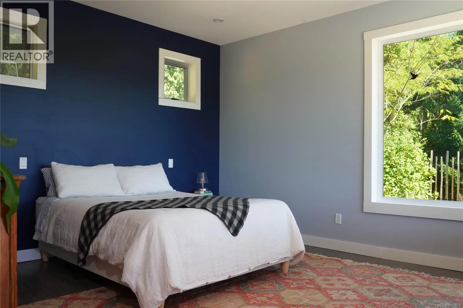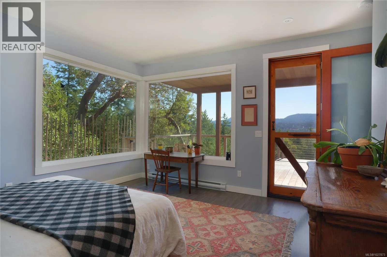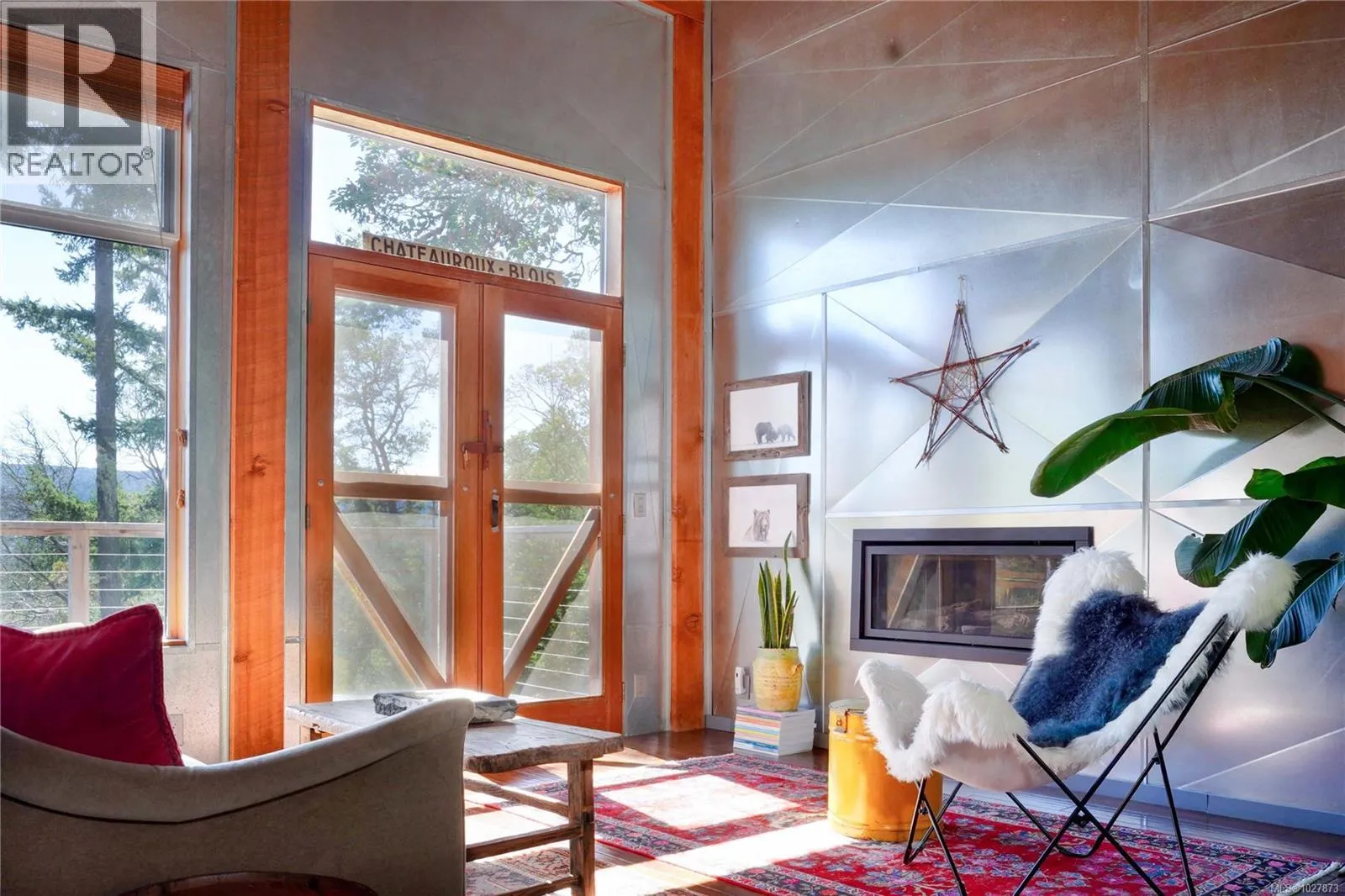Stylish Salt Spring Sanctuary. Set back on a private 3-acre lot, this designer tree house offers views from every window. An open floor plan with a vaulted cathedral ceiling is further enhanced by unique metal walls and a propane fireplace for chilly nights. Two generous bedrooms at opposite ends of the house, each with access to outdoor space, are complemented by two modern bathrooms. An open 280-sq. loft provides another living space or guest bedroom with elevated views. South-facing, an expansive cedar deck with cable wire railings wraps around the house, creating a seamless indoor/outdoor living experience amongst the arbutus trees. On the front side, a fully-fenced French-inspired courtyard with a stone patio provides a serene outdoor setting perfect for entertaining. Down its own driveway, a 1074-sq. ft. additional building offers a multi-purpose space with soaring timber ceilings, perfect for a home office, workshop, or gallery space. With a boat launch down the road, the Long Harbour ferry minutes away, and all the conveniences of Ganges close by, a turn-key Salt Spring Island property awaits on Little Mountain. (id:27476)