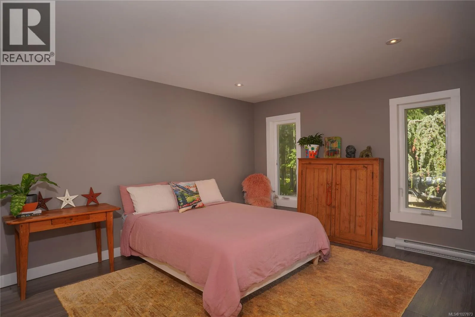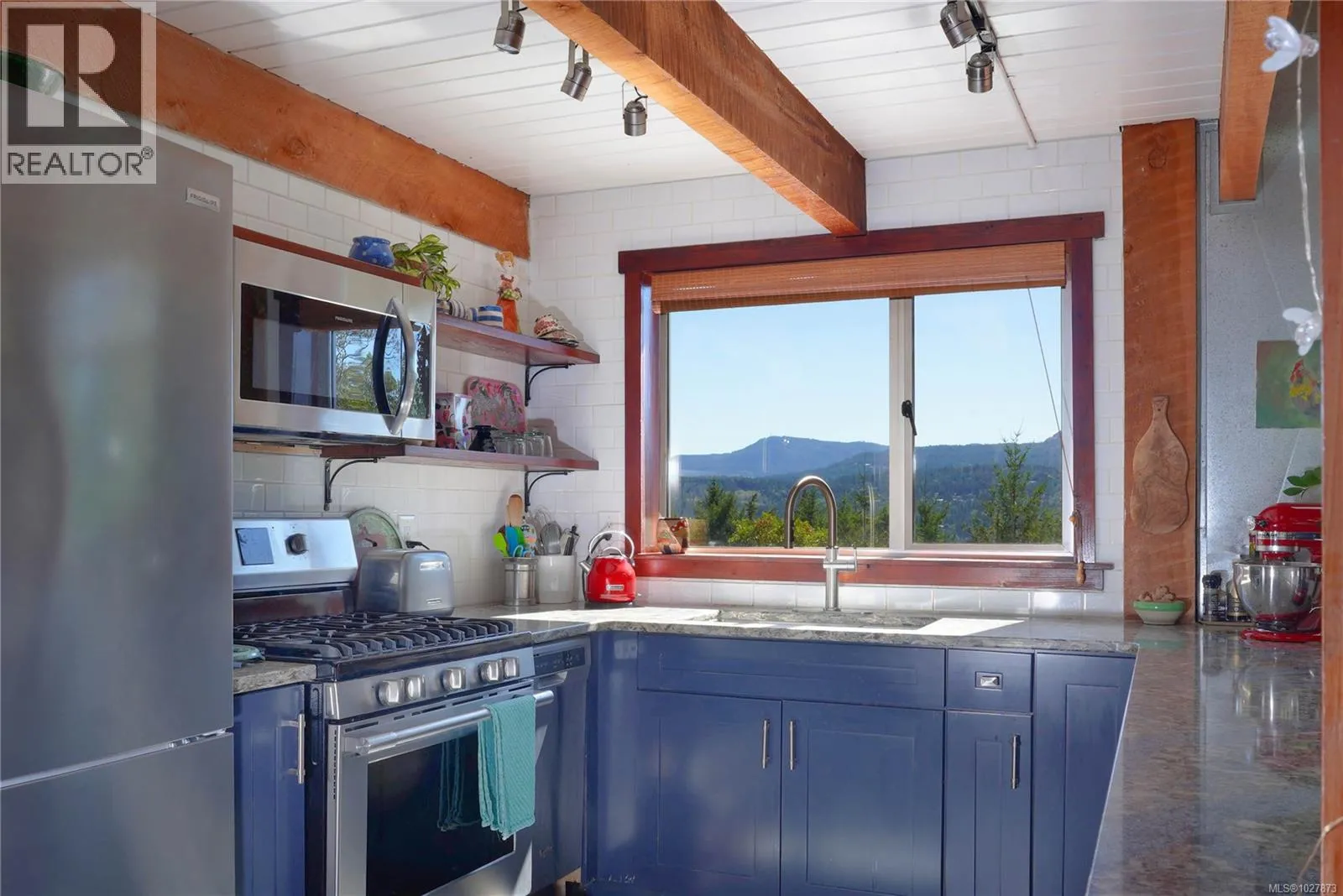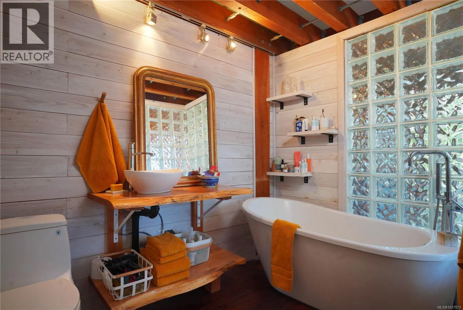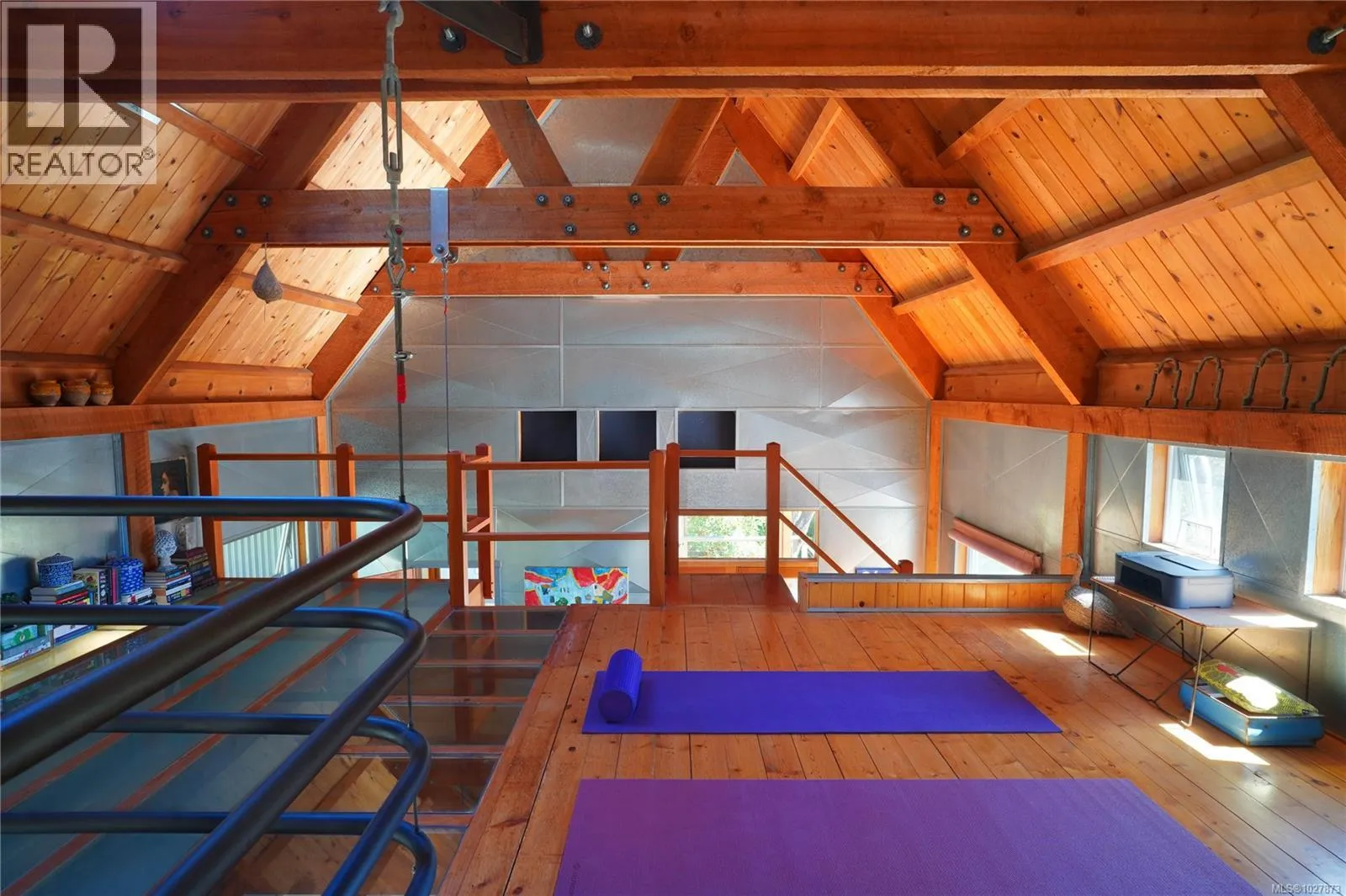 Stylish Salt Spring Sanctuary. Set back on a private 3-acre lot, this designer tree house offers views from every window. An open floor plan with a vaulted cathedral ceiling is further enhanced by unique metal walls and a propane fireplace for chilly nights. Two generous bedrooms at opposite ends of the house, each with access to outdoor space, are complemented by two modern bathrooms. An open 280-sq. loft provides another living space or guest bedroom with elevated views. South-facing, an expansive cedar deck with cable wire railings wraps around the house, creating a seamless indoor/outdoor living experience amongst the arbutus trees. On the front side, a fully-fenced French-inspired courtyard with a stone patio provides a serene outdoor setting perfect for entertaining. Down its own driveway, a 1074-sq. ft. additional building offers a multi-purpose space with soaring timber ceilings, perfect for a home office, workshop, or gallery space. With a boat launch down the road, the Long Harbour ferry minutes away, and all the conveniences of Ganges close by, a turn-key Salt Spring Island property awaits on Little Mountain. (id:27476)
