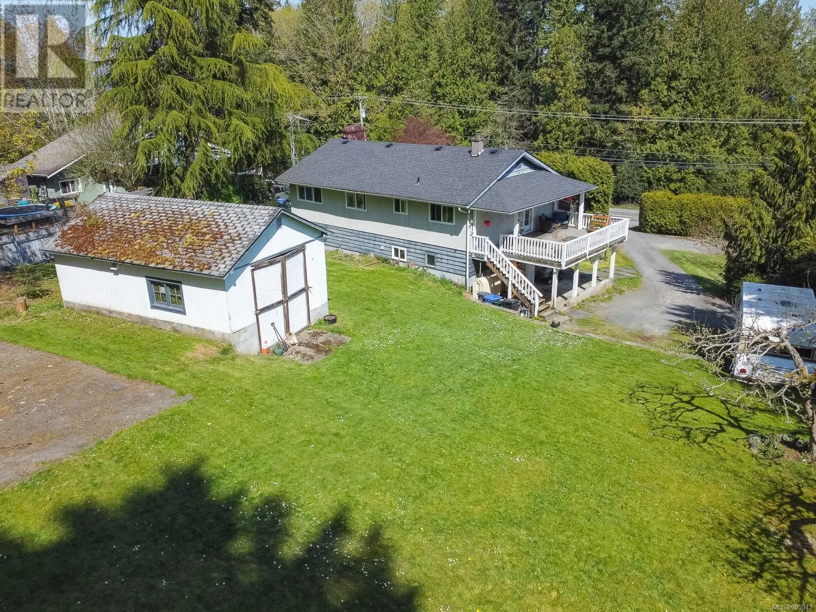 SHOWINGS ON TUESDAYS ONLY; 12PM - 5PM, BY APPT. Rare opportunity to purchase in Sunny Saltair! .67 acre lot, with a detached workshop, and potential for a coachouse. (confirm with CVRD). Single family home with 4 bedrooms, 2 bathrooms, plus two additional flex spaces for use as rec room or additional bedrooms. Upstairs features a semi-open concept kitchen and dining, oak floors, and a large sundeck finished in stamped concrete which features ocean views. On the lower level is a partially finished bathroom and Utiity room which are ready to welcome your finishing ideas. A carport for parking and front yard is fenced in for pets. This property backs onto the CVRD trail, which is perfect for walking and biking. Upgrades include vinyl windows, newer roof, septic system, and oil tank. Property Boundaries to be confirmed with CVRD. (id:27476)