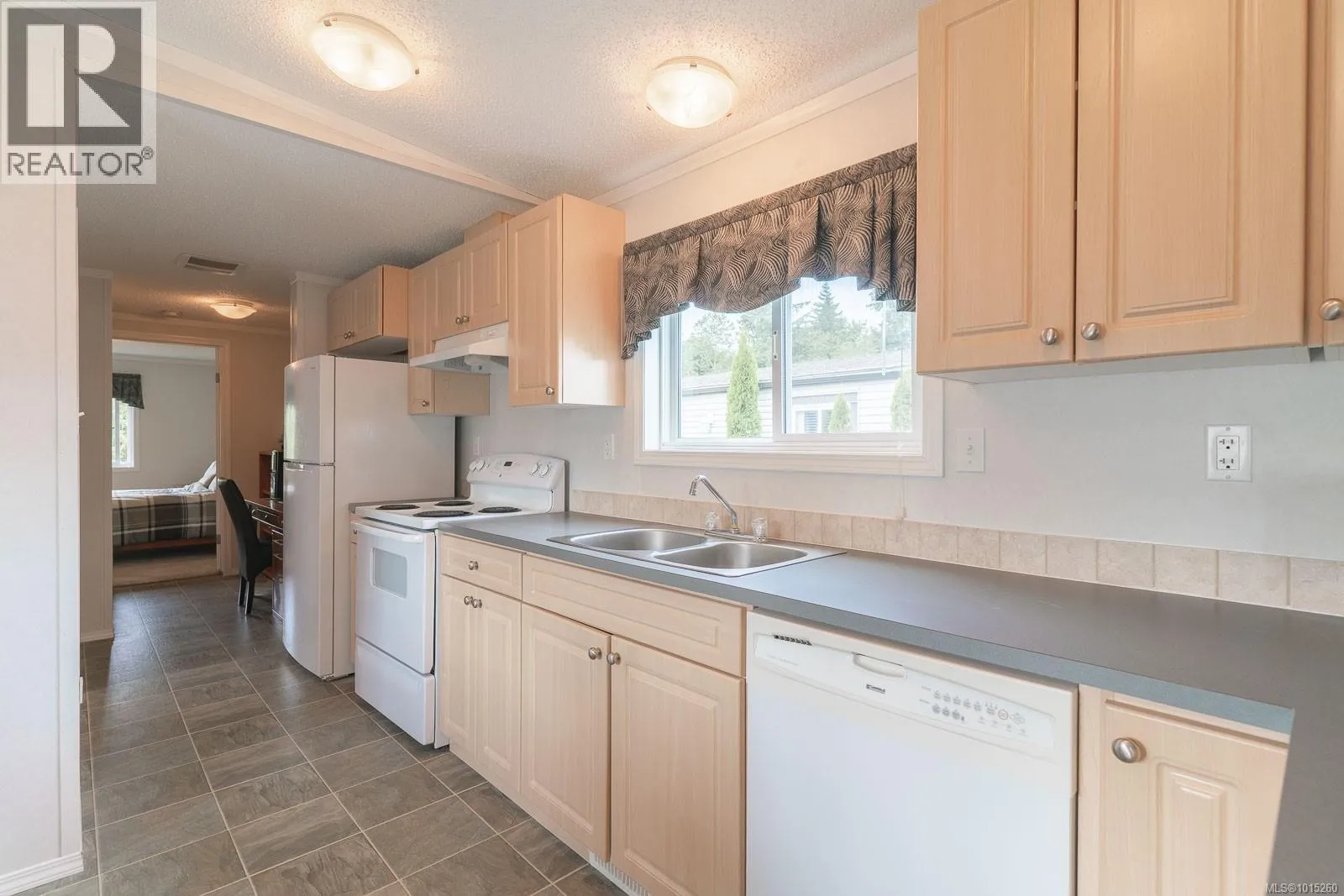 Looking for quiet, easy living in a well-kept community? This 2-bedroom, 2-bathroom mobile home offers a great layout with a spacious open-concept kitchen, dining, and living area. Built in 2010 and located in a peaceful 55+ adult-oriented park in Saltair, this home sits on a well-kept pad and features a private patio and open yard spaceâperfect for gardening or relaxing outdoors. Both bedrooms are a generous size, and having two full bathrooms adds extra flexibility. This small, well-run mobile home park allows for one small dog or indoor cat, making it a great option for those seeking low-maintenance living with a friendly, community feel. Measurements approx, buyers to verify. (id:27476)