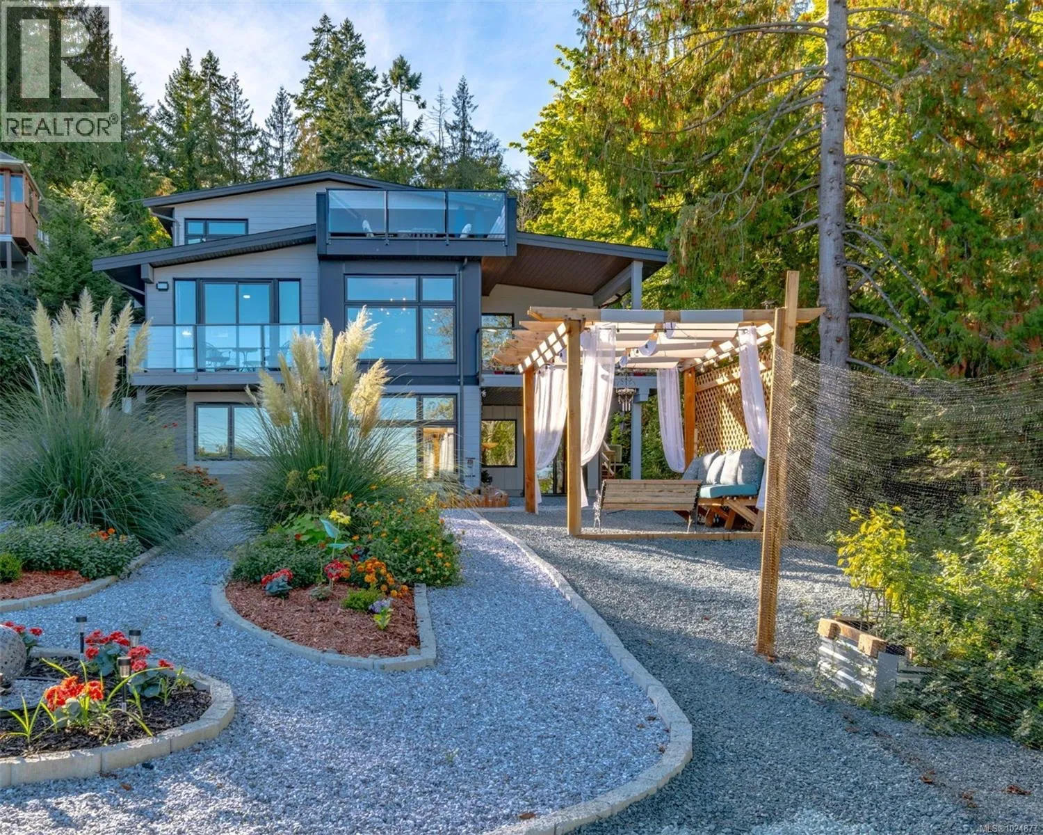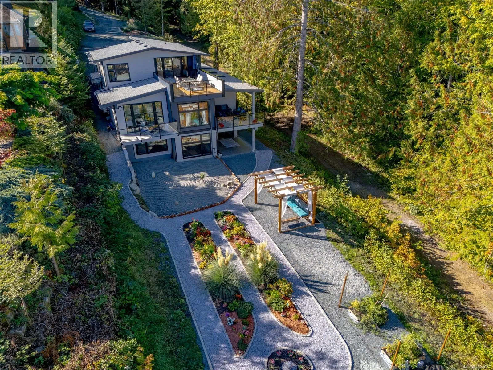 Created to celebrate lifeâs best moments and designed to take advantage of spectacular ocean views and tranquility of the forest, this custom-built 2023 beauty isnât just a house; itâs a dream come true. With over 4,300 sq ft. this house is perfectly positioned near the heart of Chemainus , shops, theatre, seaside trails, hospital and schools. Striking the balance between luxury and functionality, it offers four bedrooms, and five bathrooms, a gym, an office, over 900 sqft of outdoor living space and a large garage with a workshop. Step into the main floor where coastal ocean views pour through a stunning wall of windows. The chefâs kitchen, with a large quartz island, is where meals become memories. The extensive fireplace is a focal point of this open concept space. The covered deck off the dining room offers the perfect spot for entertaining or to just listen to the birds in the morning. The primary suite, located on the main floor, offers comfort, privacy and a large balcony which greets you each morning like a warm embrace. Upstairs- a bonus room with a wet bar opens to a huge sundeck that sets the stage for laughter and connection. Downstairs space suited with a large rec room, two bedrooms, gym, kitchen and two bathrooms which can accommodate your guests or be easily transformed into a suit. Backyard is your oasis- with flower beds, a vegetable garden, a gazebo and a Japanese garden. Outside, RV parking, more parking spaces, and room for a pool Donât just imagine it, come and fall in love (id:27476)