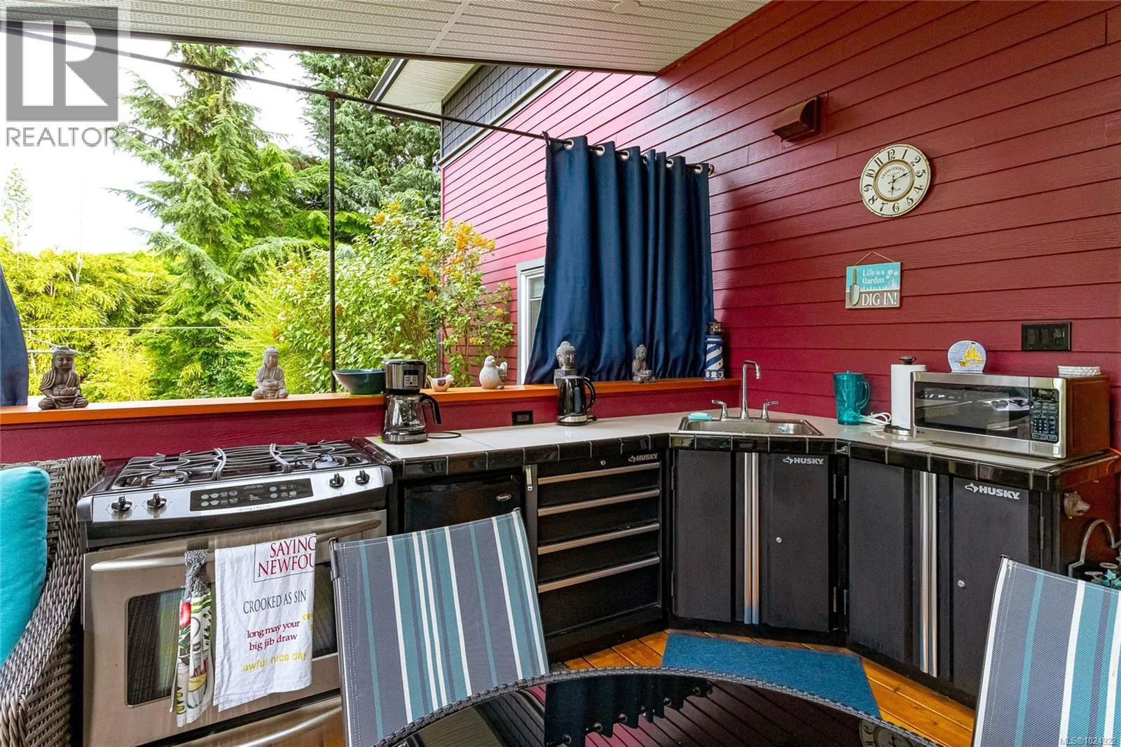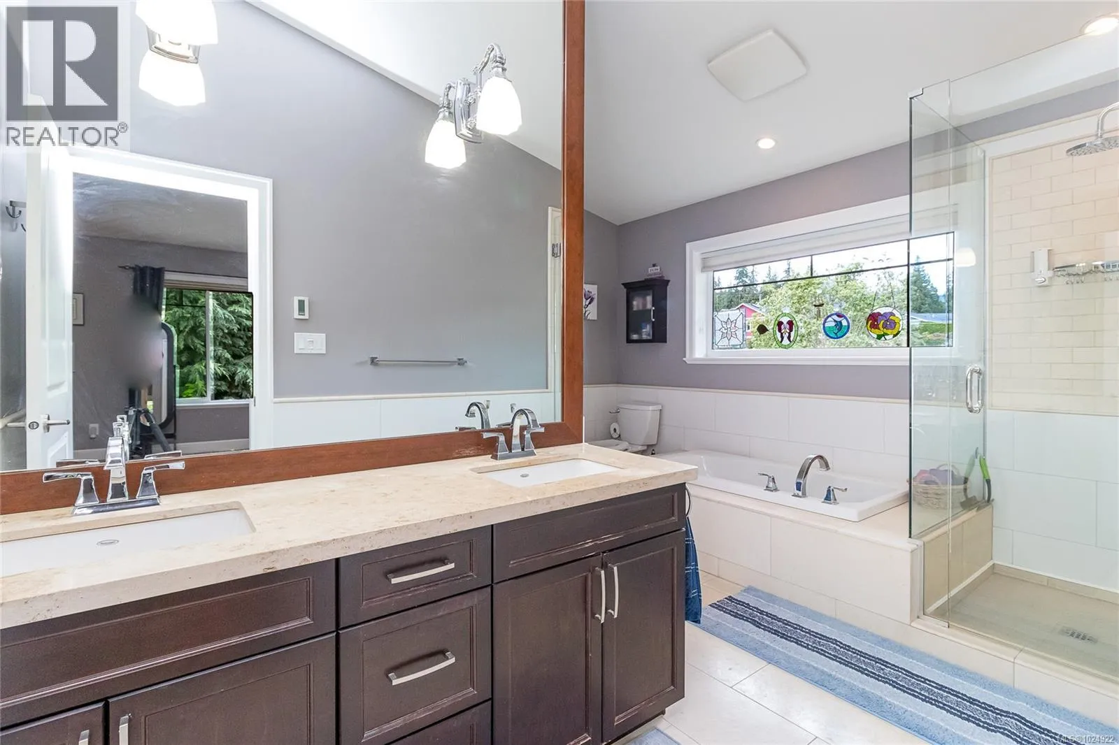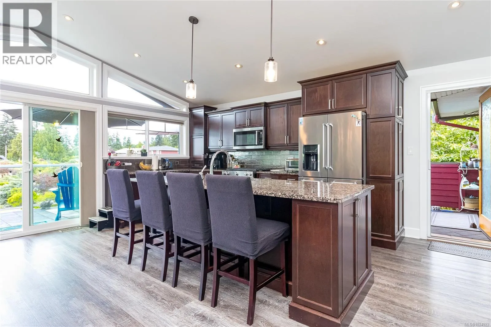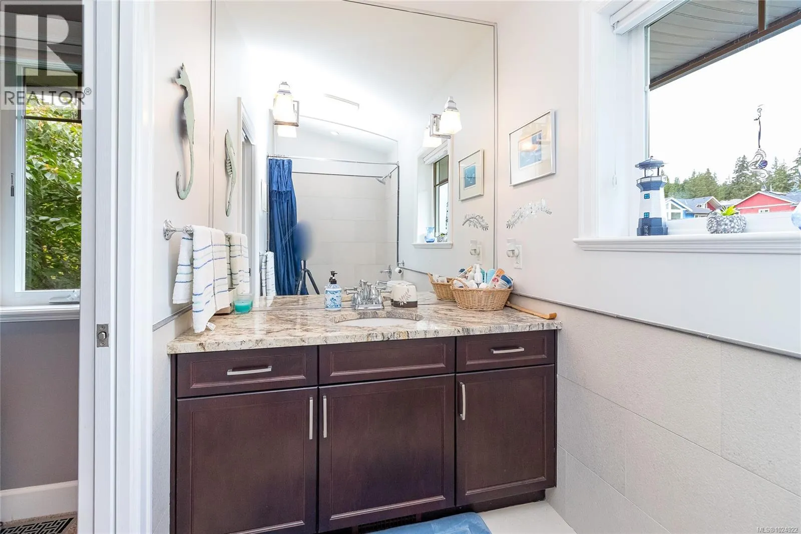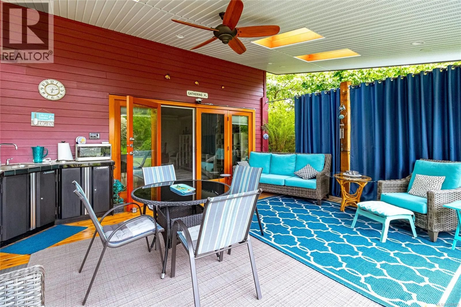 Spotless ocean view home on half acre in Saltair. From the moment you drive up and the gates open, you will be captivated by the attention to detail and quality in this home. Grand entry with high ceilings to main floor. The lower level offers 2 spacious bedrooms, both with walk in closets and one with a cheater 4 pce ensuite. The family room has french doors to your back yard covered outside fully equipped kitchen. Enjoy the views and peacefulness of your water feature, and lush garden oasis. Enjoy the upstairs with its open concept living and floor to ceiling windows. Newer appliances in the gourmet kitchen. Cozy living dining room with gas fireplace. Step out onto your front deck and enjoy the ocean views and amazing sunrises! Master bedroom with deluxe ensuite, gas fireplace and built in desk. Organized walk in closet. 2nd bedroom with full 4 pce ensuite. Fully fenced, sprinklers, RV parking with 220. Updated floors, paint in and out, This home is like new and wont disappoint! (id:27476)