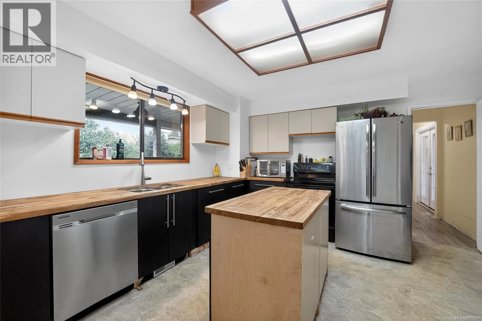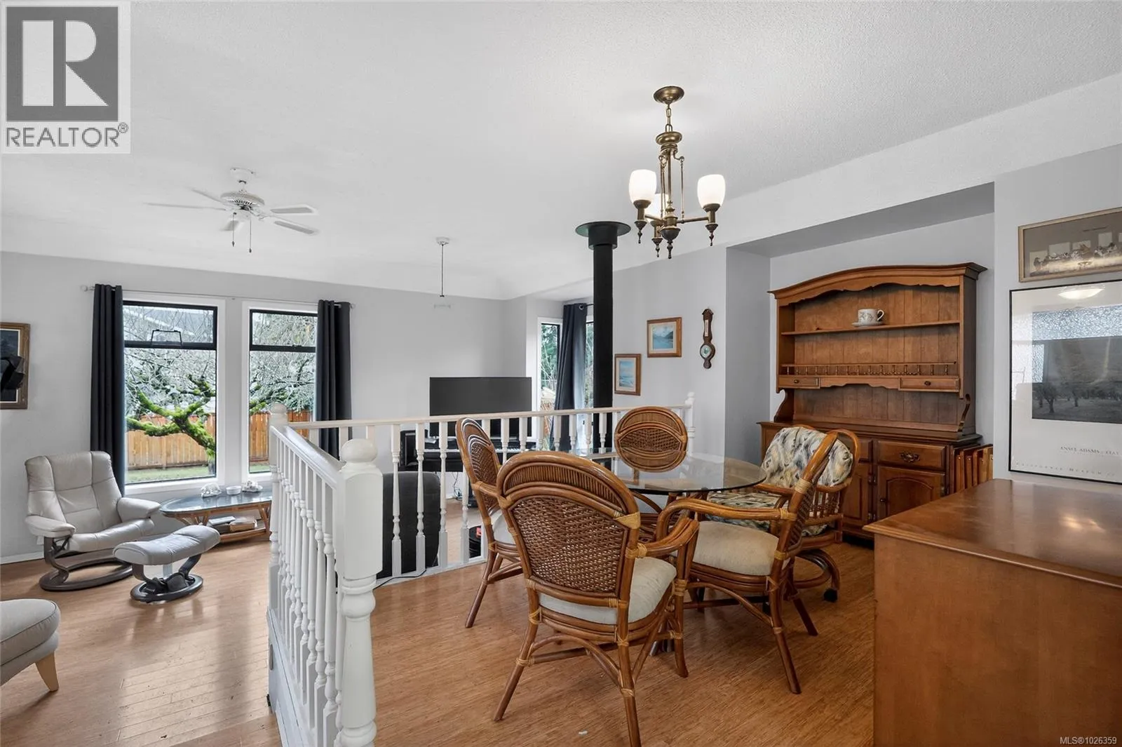 This bright Saltair home, just two blocks from the beach, offers coastal living with incredible versatility. Enjoy ocean views from the upper patio, accessible from both the primary bedroom and sunroom. Thoughtful features include oak hardwood in the primary, a spa-inspired ensuite with soaker tub, a cozy brick-accented woodstove, cedar details, and a spacious living room with charming window seat. The updated country kitchen shines with new appliances and a wood-topped island. Two kitchens provide excellent potential for an in-law suite. Outside, youâll love the sunny backyard, deer-fenced veggie garden, established orchard with fruit trees, plus a workshop/tool shed and garden shed. Measurements are approximate, please verify if important. (id:27476)