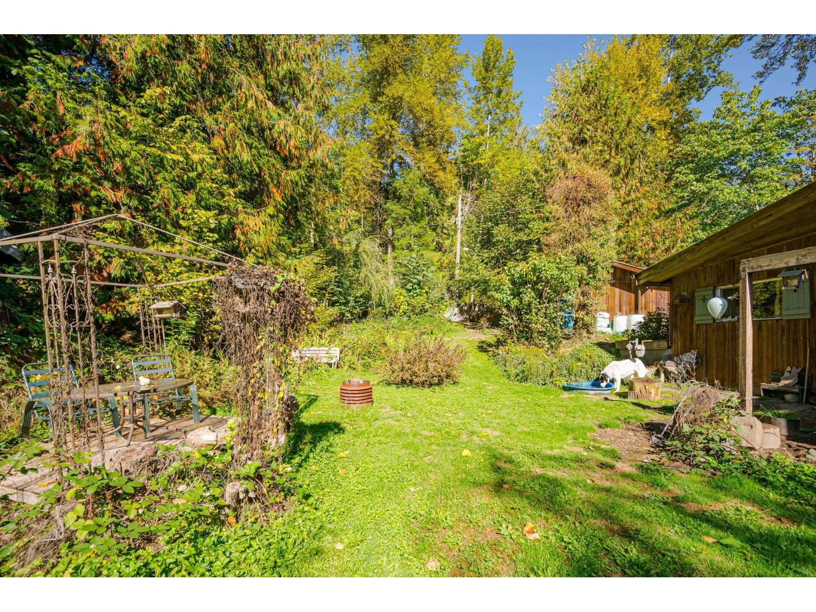 Welcome to your secluded haven in the woods! Nestled at the end of a quiet cul-de-sac, this charming 2-bed,1-bath home sits on just under an acre of treed land & offers 1300 sqft of living space, large covered patio, small chicken barn, & a large 23'6 x 27'6 shop! Convenient natural gas feeds the furnace & fireplace, the shop has its own 200amp power supply and water is supplied by a 155' well. Ideal for the nature enthusiast, this property is situated close to amazing hiking trails and outdoor adventure activities, and is walking distance to some of the best fishing spots on the Chilliwack River! With glorious mountain views and acres of forested crown land behind you, you cannot help but feel you're in a secluded paradise even though your just 10 minutes from town! Call today to view/ (id:27476)