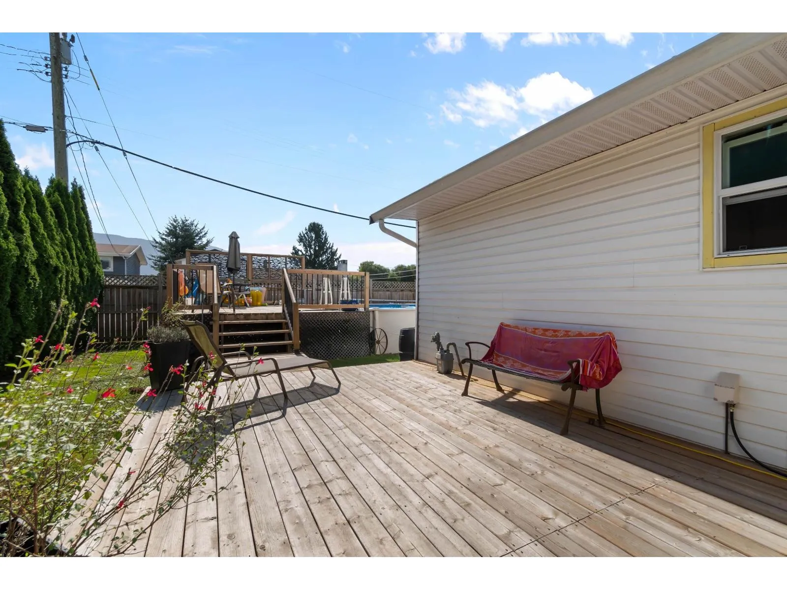 Welcome to Greendale! Featuring a well taken care of 2 (could be 3) bedroom, 1 bath rancher with loft on almost 1/4 acre corner lot. This property also features a fully fenced private yard with mature hedging, a large covered patio/deck, a new above ground pool and pool deck, a 20X30ft shop that is perfect for working from home, all your toys, projects, or time and space needed alone, you name it! Tons of parking as well, and all of this in the sought after little country community of Greendale. Walking distance to the bus stop and Greendale Elementary, 5 minutes to Highway #1, the Vedder River, and golfing, and less that 10 minutes to all shopping and restaurants. (id:27476)