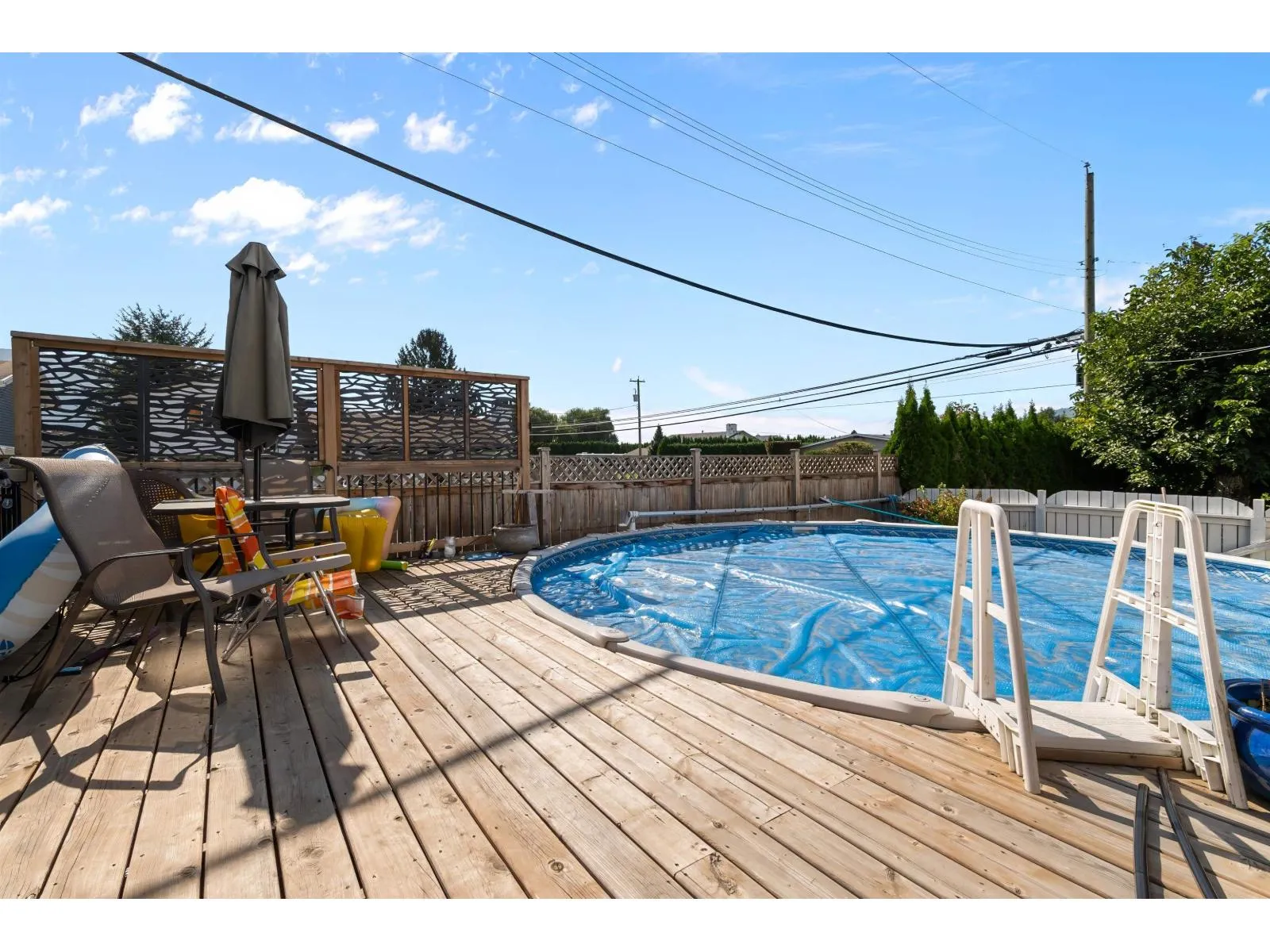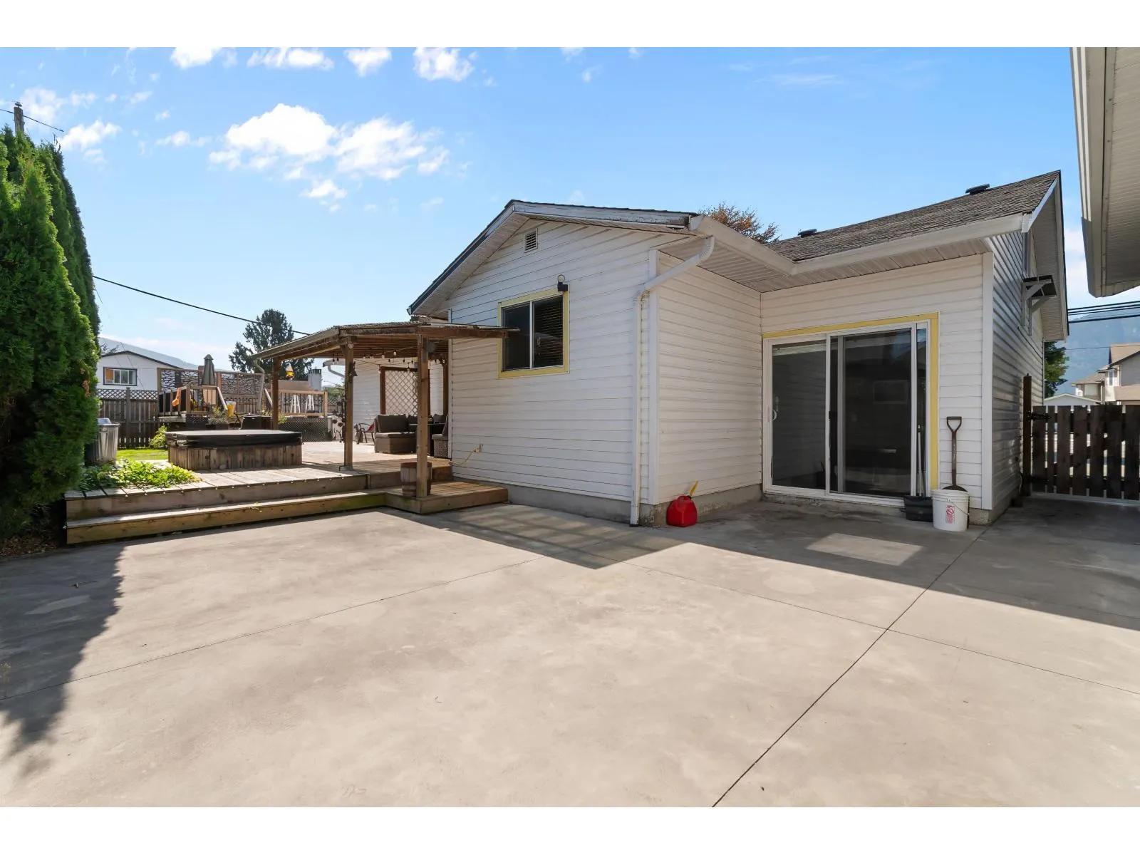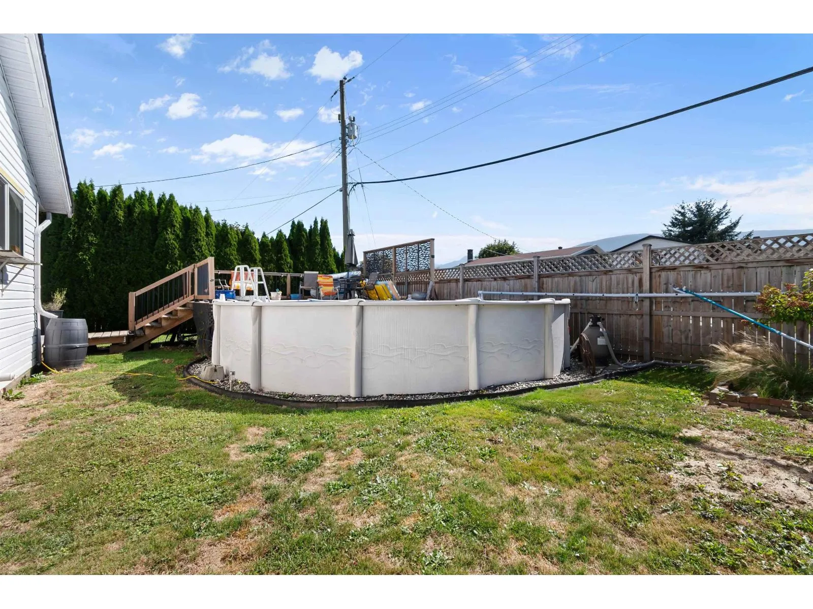 Welcome to Greendale! Featuring a well taken care of 2 (could be 3) bedroom, 1 bath rancher with loft on almost 1/4 acre corner lot. This property also features a fully fenced private yard with mature hedging, a large covered patio/deck, a new above ground pool and pool deck, a 20X30ft shop that is perfect for working from home, all your toys, projects, or time and space needed alone, you name it! Tons of parking as well, and all of this in the sought after little country community of Greendale. Walking distance to the bus stop and Greendale Elementary, 5 minutes to Highway #1, the Vedder River, and golfing, and less that 10 minutes to all shopping and restaurants. (id:27476)