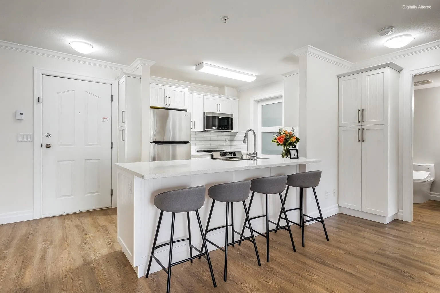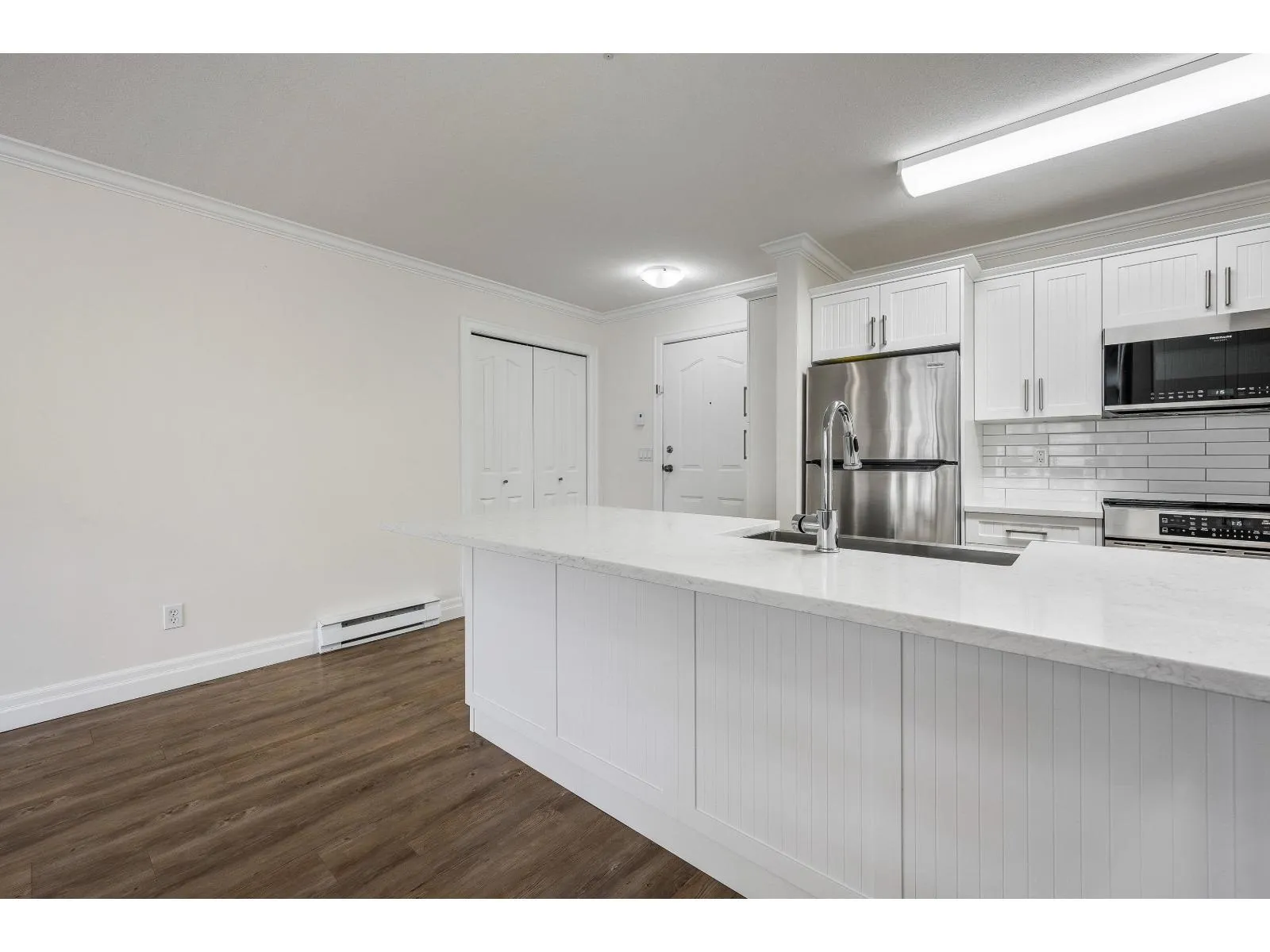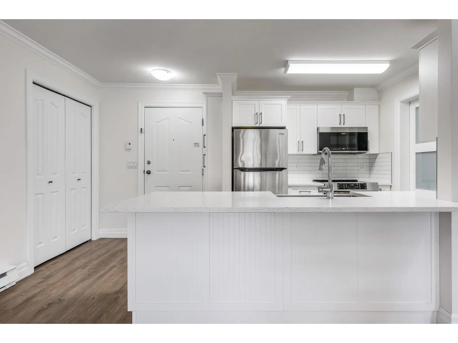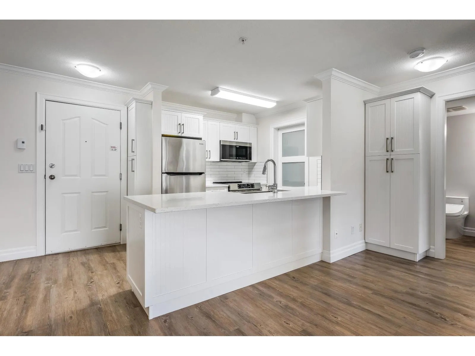 FABULOUS LOCATION! Ideally situated near shopping, schools, recreation, AND transit, this bright & airy 2-bedroom condo offers INCREDIBLE value. Step into a SPACIOUS open-concept living area bathed in natural light, featuring a generous kitchen w/newer SS appliances, quarts countertops, & AMPLE counter space. The versatile laundry room includes shelving AND room for pantry storage. STUNNING primary suite boasts large windows, a roomy closet w/built-in cabinets, & a calm, inviting ambiance. A second bedroom sits privately across from a FULLY RE-DONE 4pc bathroom w/walk-in glass shower. Fresh paint, newer vinyl plank, & added cabinets are just some other highlights to this FABULOUS unit. Unwind on the covered patio at day's end! Ready to fall in love? Come see it for yourself! * PREC - Personal Real Estate Corporation (id:27476)