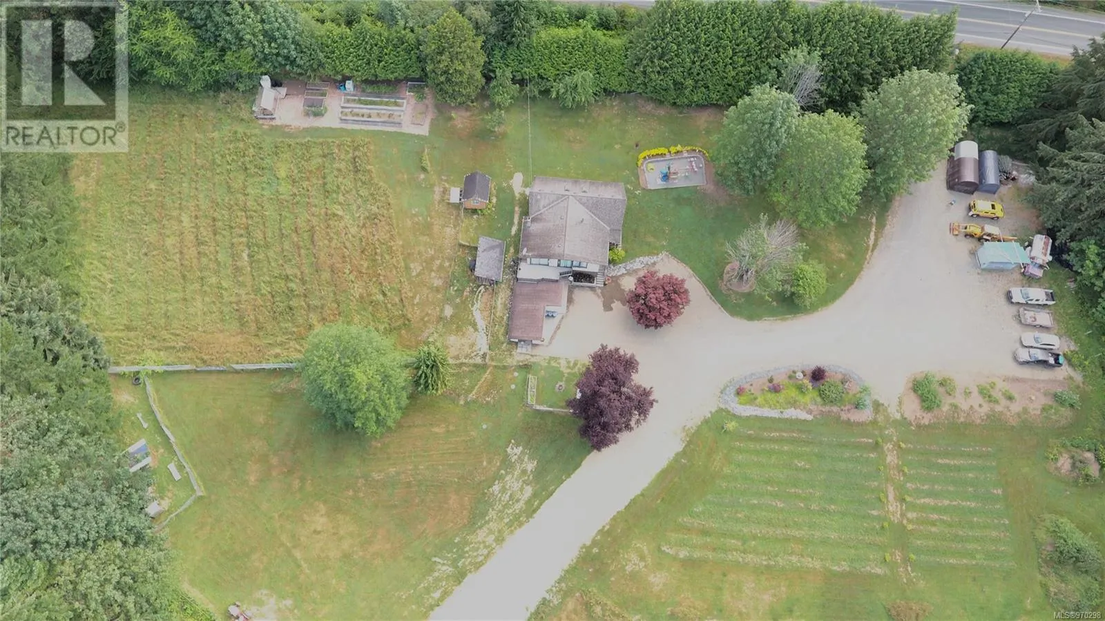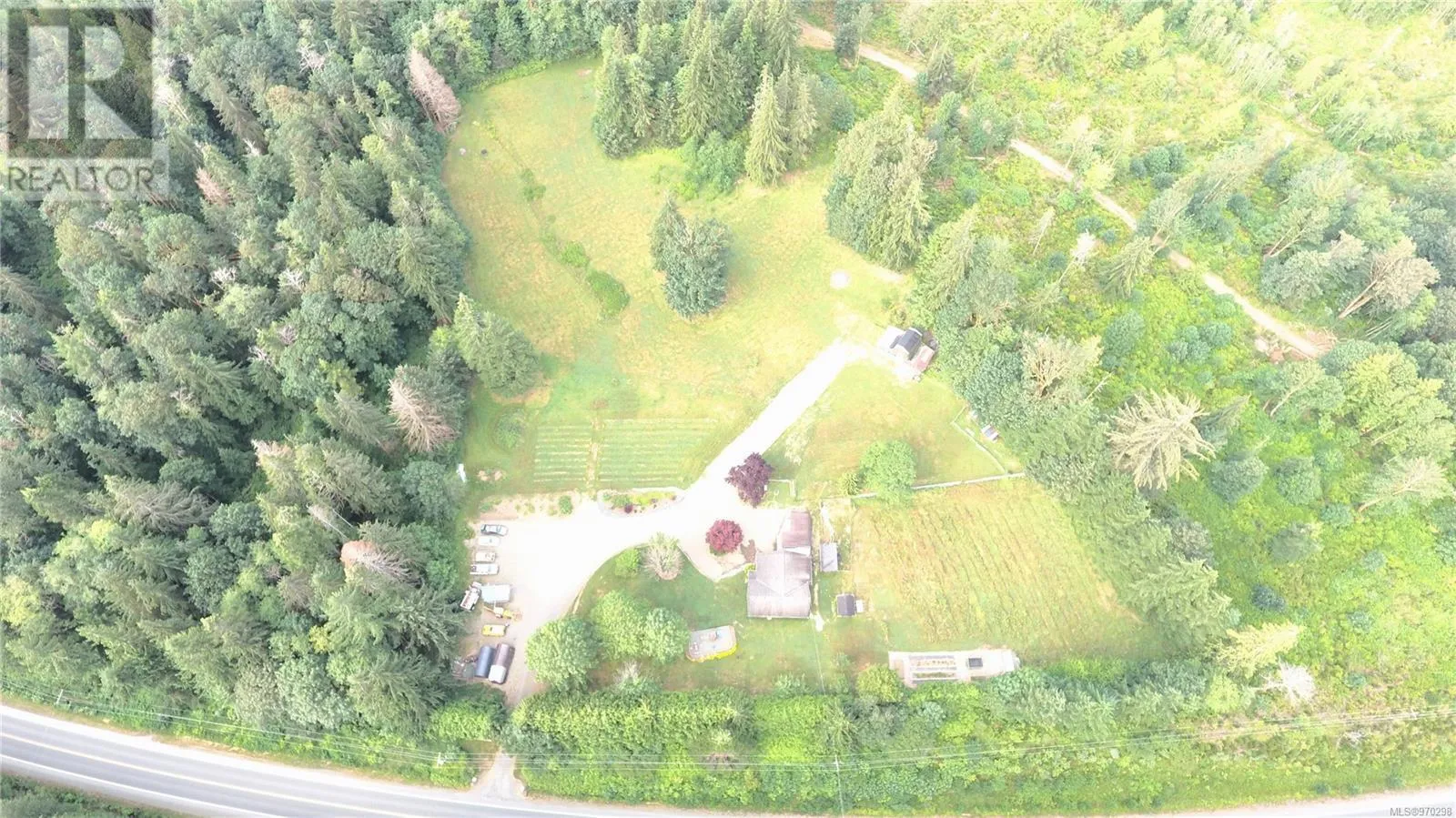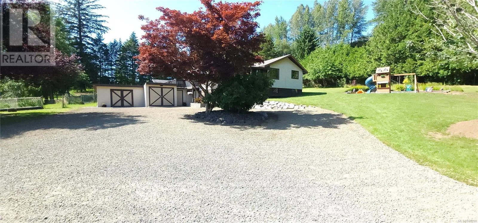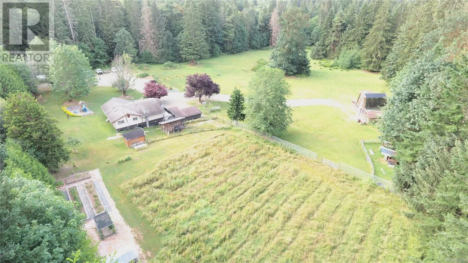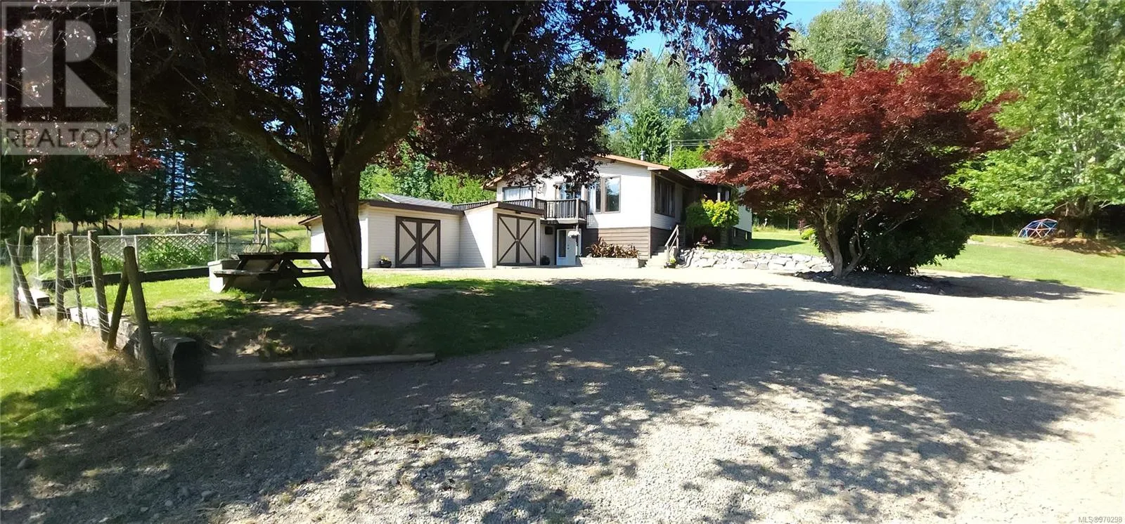 Just 35 minutes from Campbell River, this 12.8 acre piece of paradise awaits you. Fully landscaped with a perimeter of trees, the privacy is unfounded, with a nicely updated family home, garden area, separate barn with tack stalls and loft, and acres of grassed areas for horses, or just room for kids to run! The home features a massive primary bedroom with it's own woodstove and wall to wall windows and patio overlooking the sprawling oasis and the mountain views. The 2nd bedroom off the primary is ideal as a nursery or for toddlers. The main living area is open and inviting with updated flooring and beautiful country kitchen. Downstairs you find a spacious family room plus an extra rec room for your gym, as well as a basement workshop, with an additional 700 sq/ft attached shop. There is an abundance of fruit trees, berry bushes and garden beds for the avid gardener. New perimeter drains in 2022 and new septic in 2016. Fantastic opportunity for a hobby farm exists here. (id:27476)