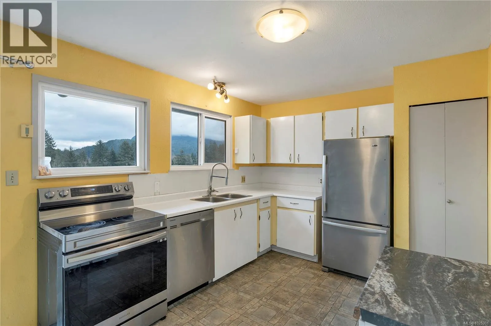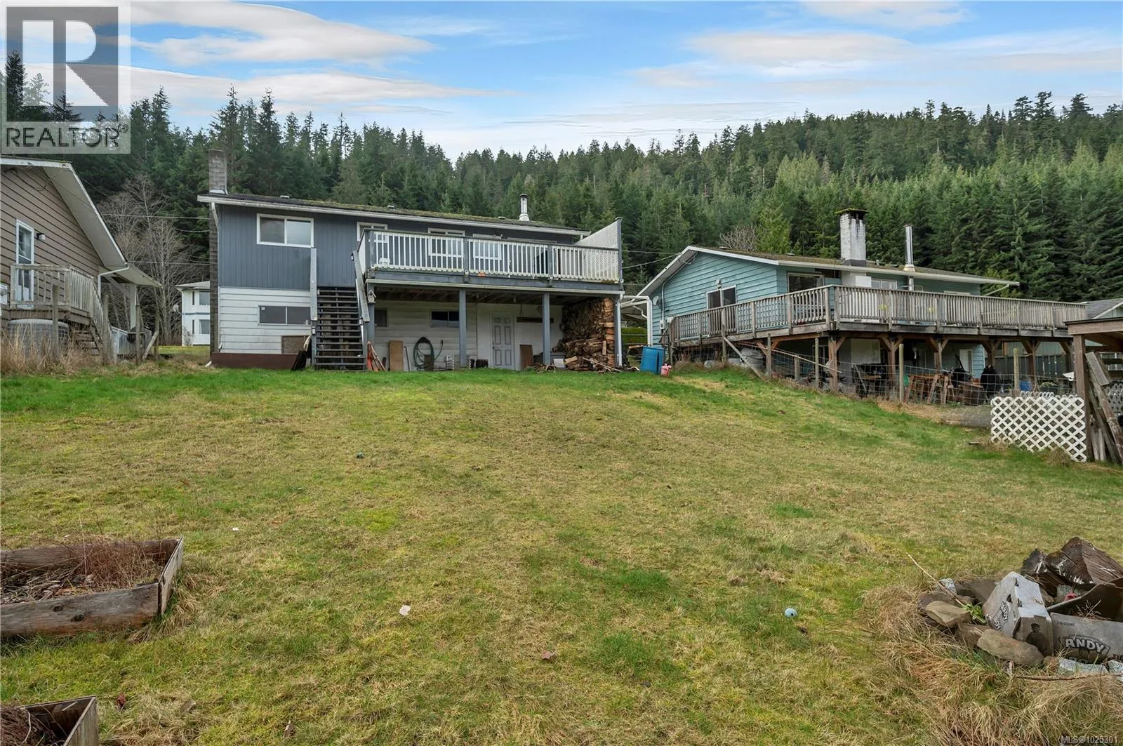 This 2 bedroom, 2 bathroom split-entry home in Sayward is not shy and neither is its colour palette. It's full of personality, full of stories, and very well loved, but it's also ready for its next owner to show it some fresh appreciation. Backing onto H'Kusam Park, your backyard neighbours are trees in the distance, birds, and the occasional curious deer, no future construction, no surprise fences, no awkward wave-to-the-neighbour moments. Just nature, exactly as it should be. The large deck is ideal for coffee, wine, or standing there proudly saying, ''Yep...this is my backyard.'' Inside, things stay toasty thanks to two wood stoves, because winter in Sayward is not the time to mess around. The home has great bones, undeniable charm, and plenty of opportunity for someone who sees potential. Is it perfect? No. Is it boring? Absolutely not. Give your Realtor a call to book a viewing! (id:27476)