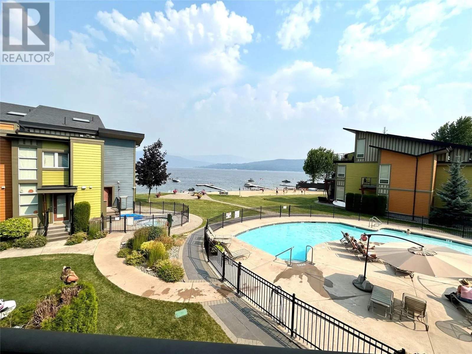 Turn Key Ready! This 2 bedroom, 2 bathroom waterfront unit comes fully furnished in the Shuswap Lake Resort on Shuswap Lake. Kitchen features stainless steel appliances with maple cabinets and the living room opens onto a private deck allowing a spectacular view of the lake. Stay cool in the summer with air conditioning, go for a swim in the lake or soak up the sun in the pool! Master bedroom has a vaulted ceiling with private sun deck with a four piece ensuite. Extra features include a gas fireplace, hot tub patio and everything you need to walk in and enjoy. Direct access to skiing, hiking, biking, golfing, swimming, sledding & boating just steps from your door. Commercial zoning allows you to rent your place out while you are not enjoying this paradise yourself. Property comes with bookings already lined up that will need to be honored and brings in an income of roughly $25,000/year. (id:27476)