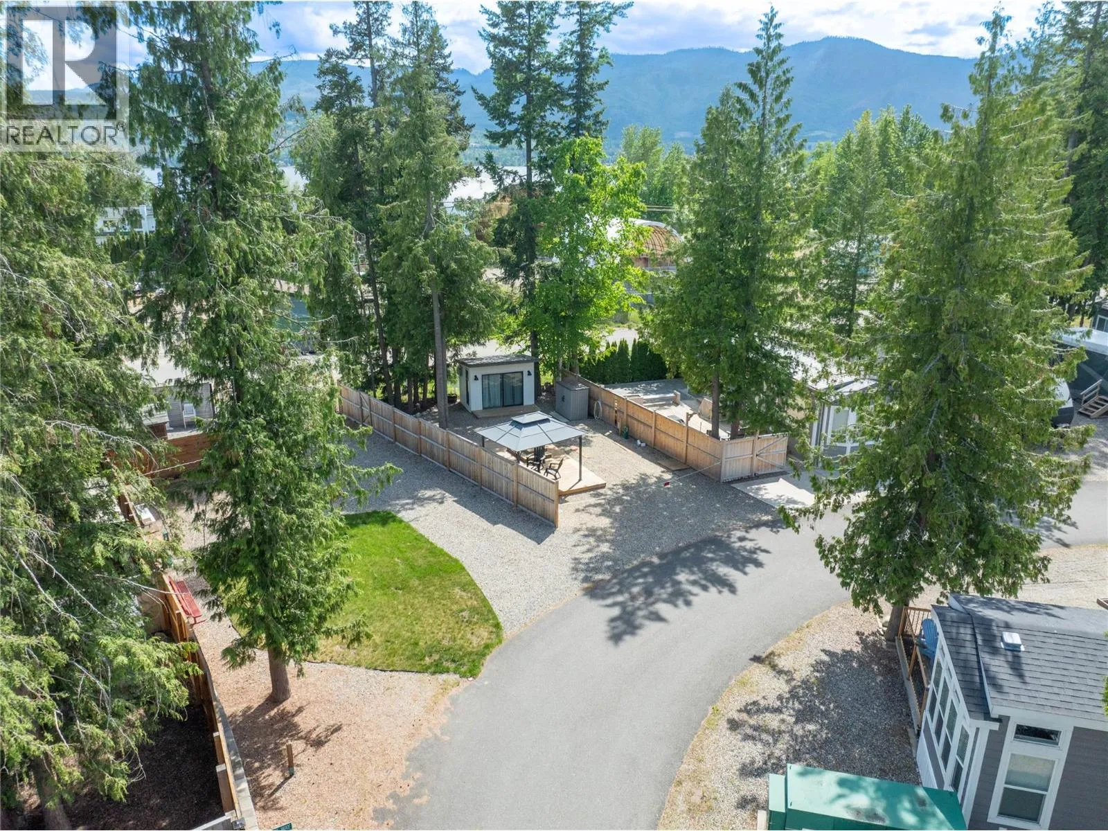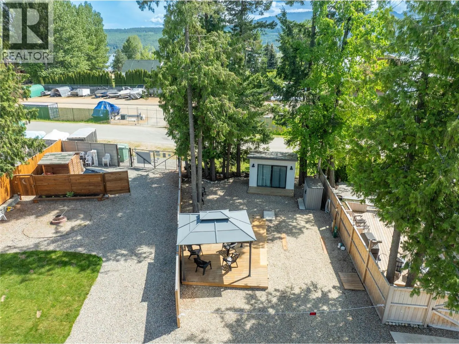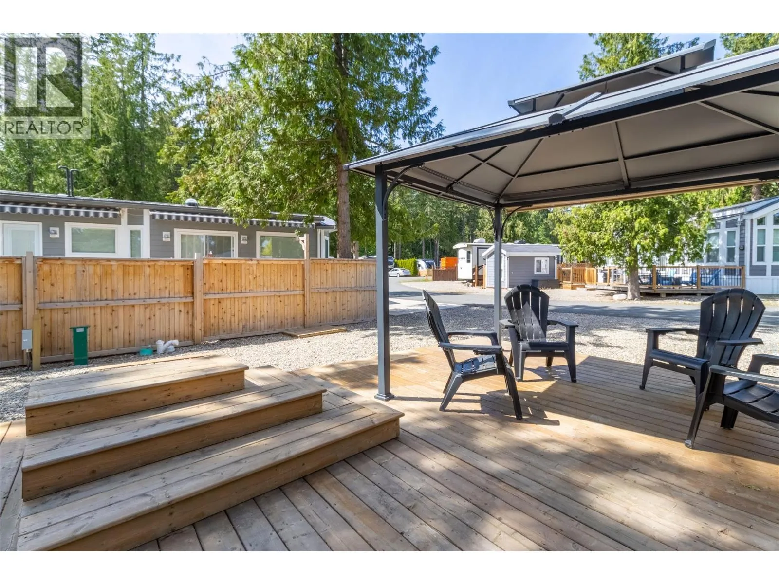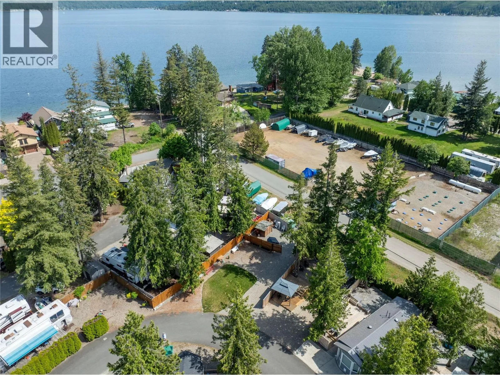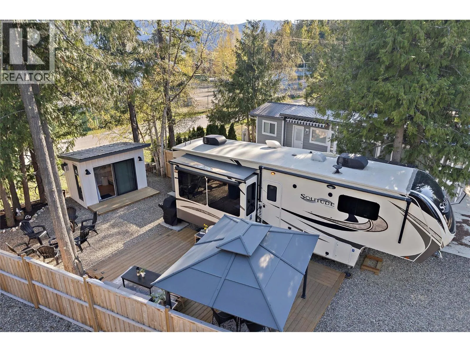 Escape to the serene beauty of Pine Grove RV Park Retreat in Scotch Creek, where leisure living meets modern comfort. This exclusive property offers a unique opportunity for seasonal enjoyment, with residency limited to 180 days per year. The site will easily fit an RV as long as 35' (maybe longer) with slides. Residents are only a short walk away from the private sandy beach with a roped off swim area. A custom shed/studio provides additional storage or creative space complete with AC and privacy curtains, hardwood flooring, tongue & groove wood ceiling, LED lighting, and Premium FIBO Wallboard (100% Watertight). The stone/gravel patio (with landscape cloth beneath) is a great area to set up your propane fire pit or a tent for extra guests. Your custom deck with a gazebo offers the perfect spot for outdoor relaxation or entertaining. Privacy is ensured with a brand new fence bordering the common area with your own gate to provide quick access to the road behind the site. (id:27476)