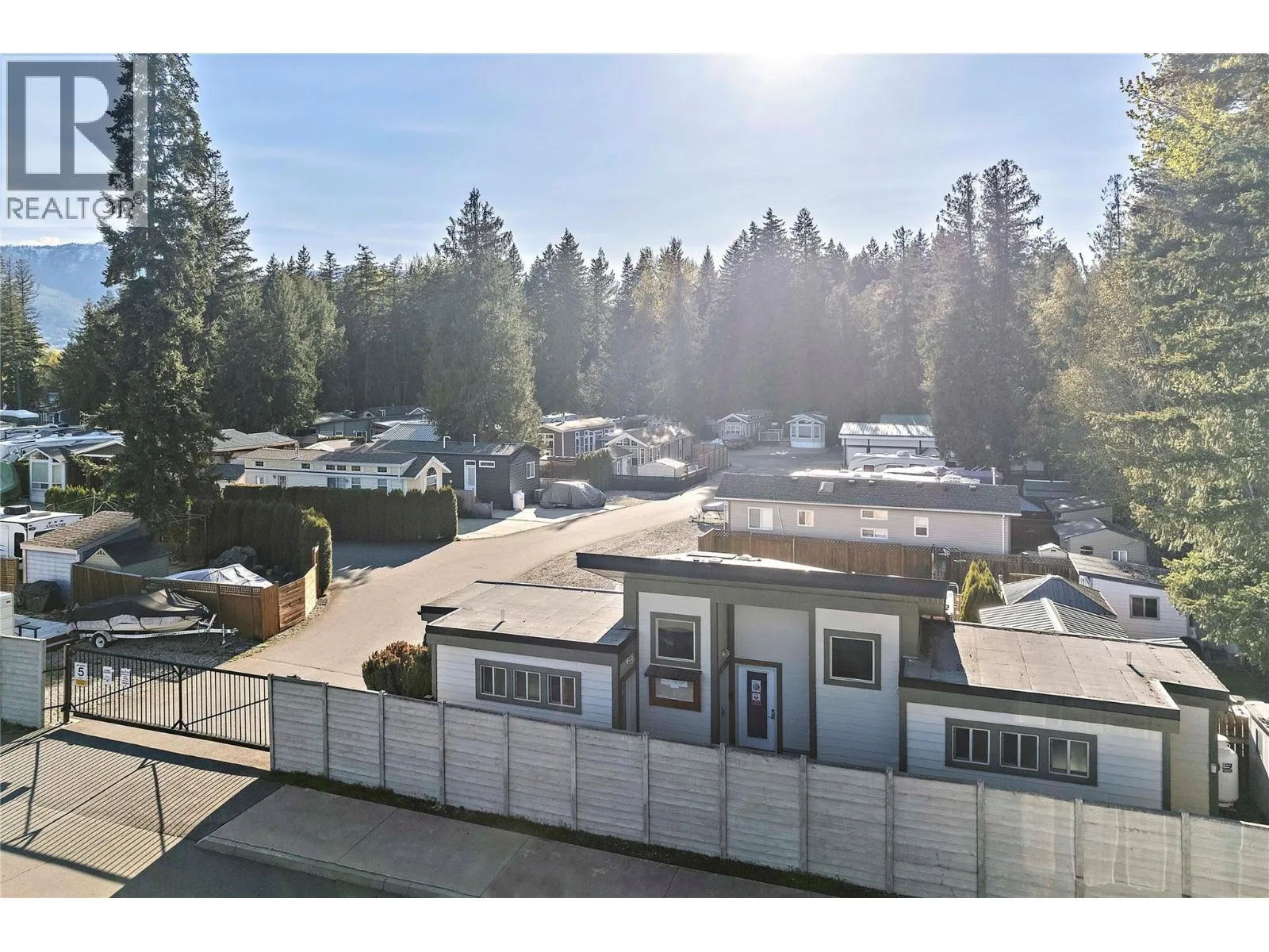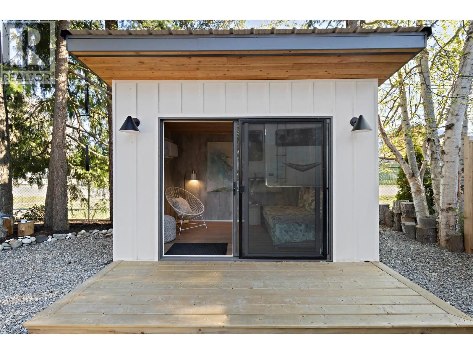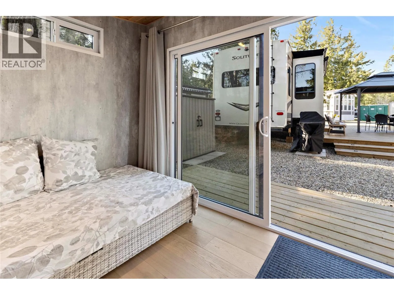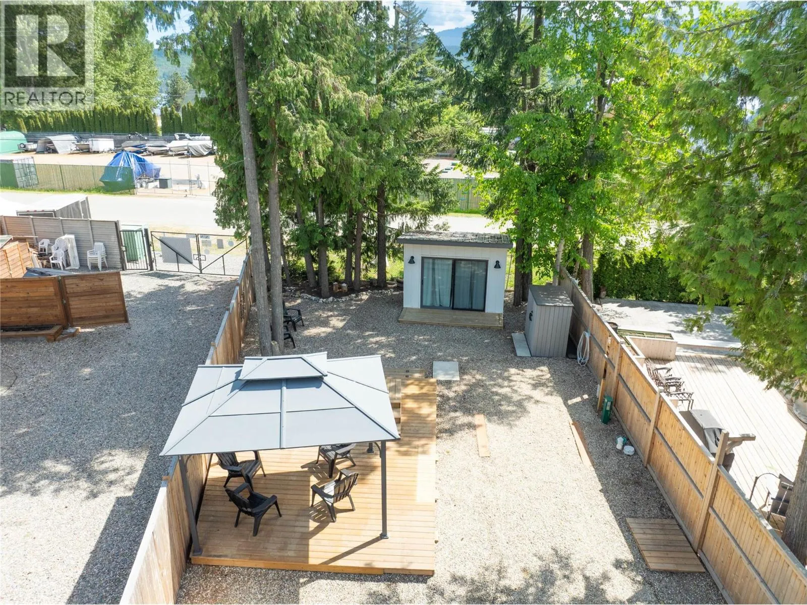 Escape to the serene beauty of Pine Grove RV Park Retreat in Scotch Creek, where leisure living meets modern comfort. This exclusive property offers a unique opportunity for seasonal enjoyment, with residency limited to 180 days per year. The site will easily fit an RV as long as 35' (maybe longer) with slides. Residents are only a short walk away from the private sandy beach with a roped off swim area. A custom shed/studio provides additional storage or creative space complete with AC and privacy curtains, hardwood flooring, tongue & groove wood ceiling, LED lighting, and Premium FIBO Wallboard (100% Watertight). The stone/gravel patio (with landscape cloth beneath) is a great area to set up your propane fire pit or a tent for extra guests. Your custom deck with a gazebo offers the perfect spot for outdoor relaxation or entertaining. Privacy is ensured with a brand new fence bordering the common area with your own gate to provide quick access to the road behind the site. (id:27476)