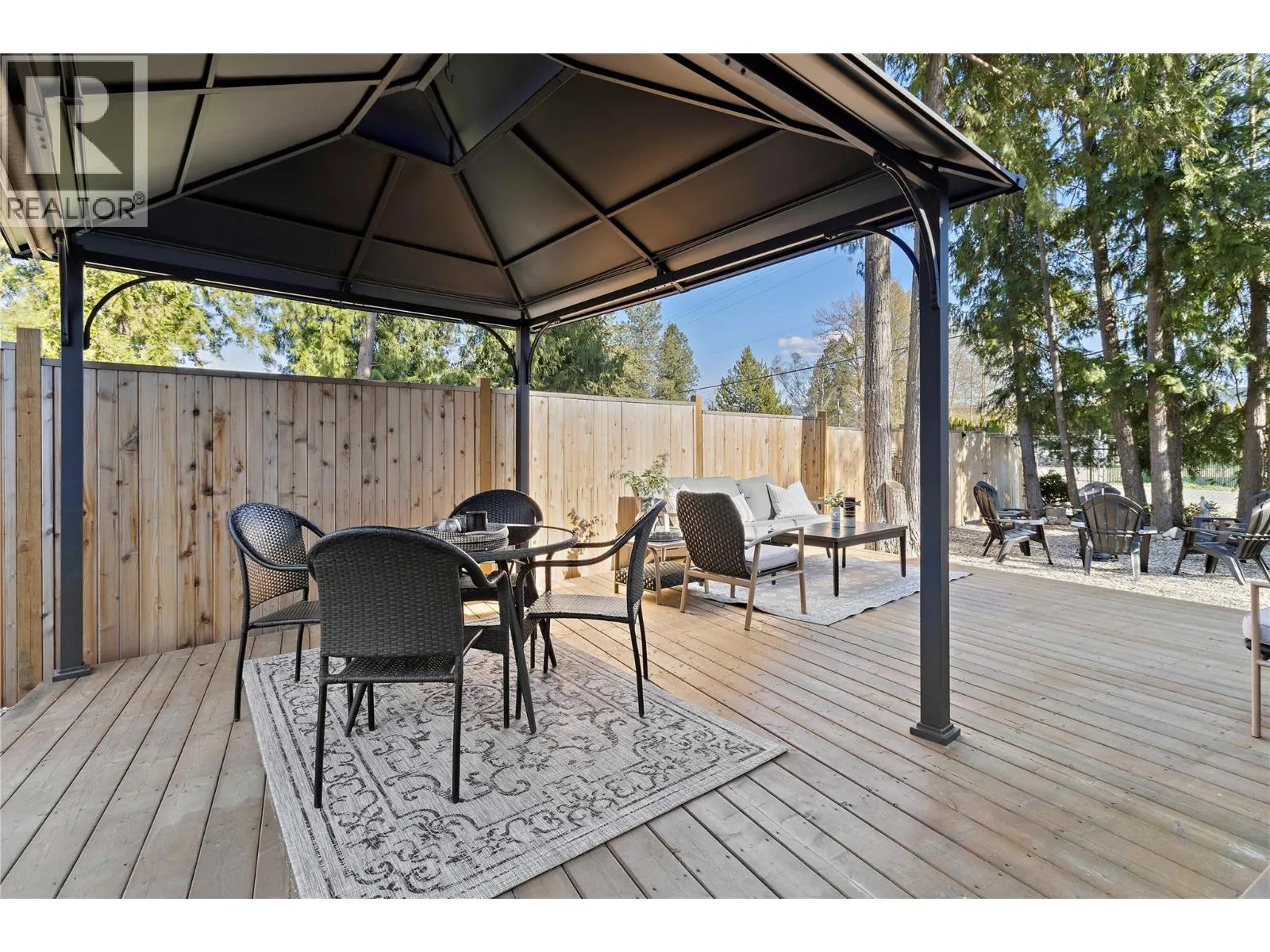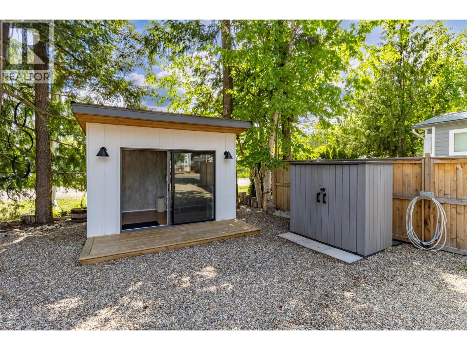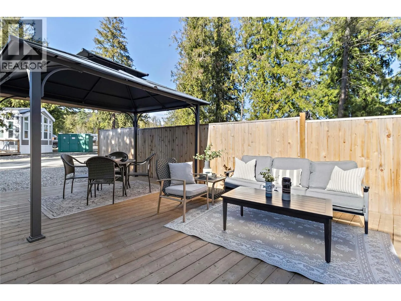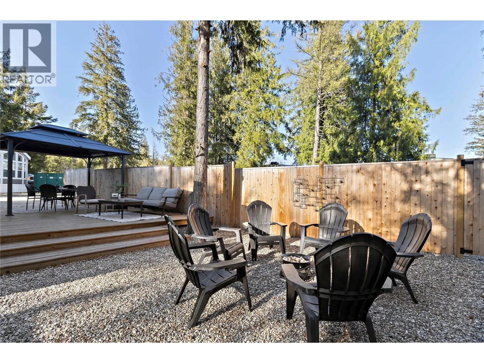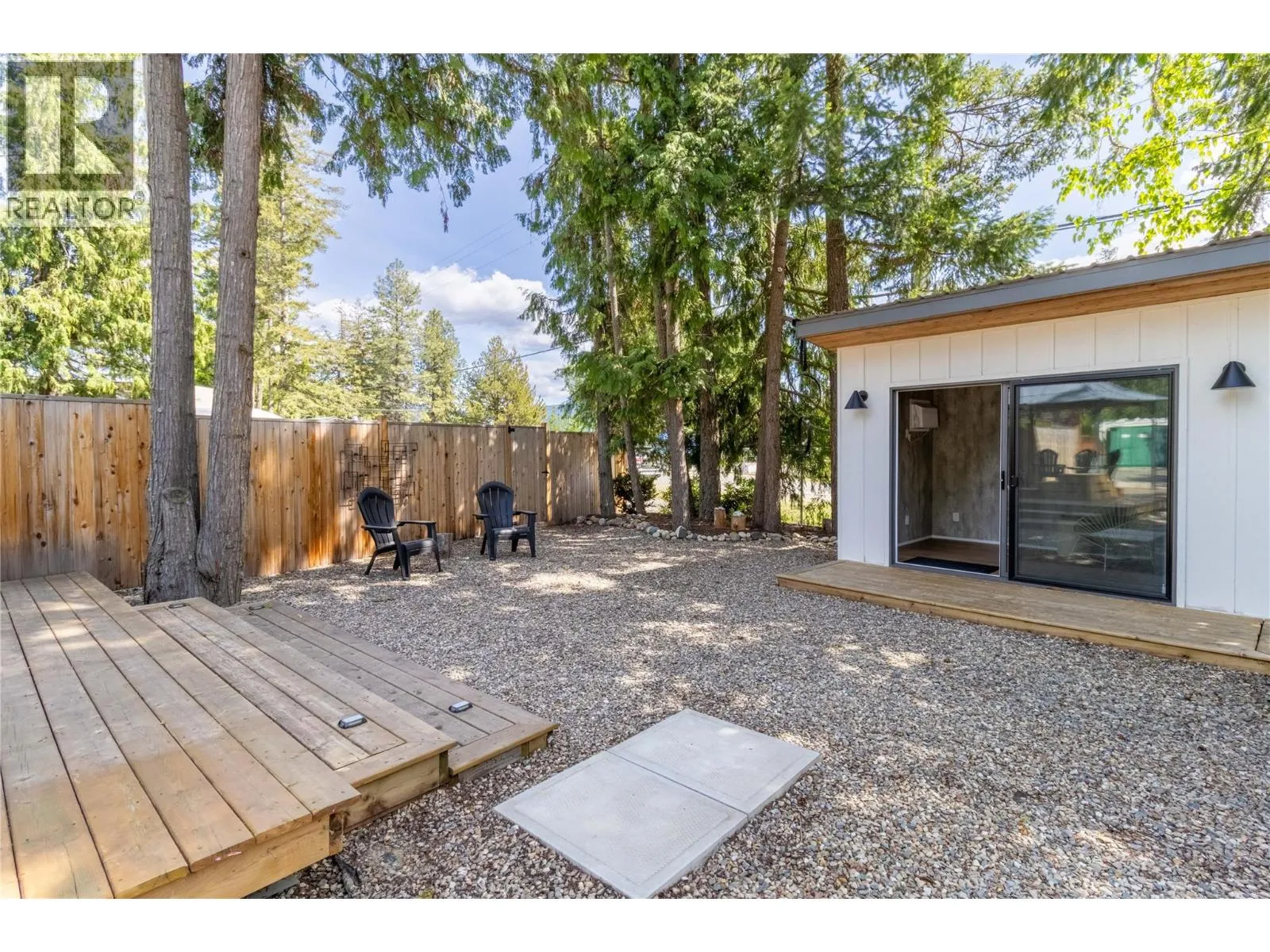 Escape to the serene beauty of Pine Grove RV Park Retreat in Scotch Creek, where leisure living meets modern comfort. This exclusive property offers a unique opportunity for seasonal enjoyment, with residency limited to 180 days per year. The site will easily fit an RV as long as 35' (maybe longer) with slides. Residents are only a short walk away from the private sandy beach with a roped off swim area. A custom shed/studio provides additional storage or creative space complete with AC and privacy curtains, hardwood flooring, tongue & groove wood ceiling, LED lighting, and Premium FIBO Wallboard (100% Watertight). The stone/gravel patio (with landscape cloth beneath) is a great area to set up your propane fire pit or a tent for extra guests. Your custom deck with a gazebo offers the perfect spot for outdoor relaxation or entertaining. Privacy is ensured with a brand new fence bordering the common area with your own gate to provide quick access to the road behind the site. (id:27476)