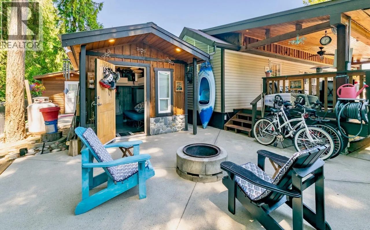 Welcome to your very own beach access getaway at Shuswap Lake! This charming 1-bedroom, 474 sq.ft. park model in Pine Grove RV Park, offers comfortable living with an additional 88sq.ft. bunkhouse, perfect for guests. Enjoy the outdoors with a large covered deck, a private firepit zone for evening gatherings, and a convenient storage shed. This home has forced air for heat and A/C, as well as an electric fireplace to cozy up to. Located in beautiful Scotch Creek, this property is ideal for those seeking a relaxed lifestyle in the Shuswap, with beach and lake access. Enjoy up to 182 days of personal use annually, with flexible scheduling throughout the year. The monthly park fee of $180 covers water, garbage disposal, septic, snow removal on main roadways, access to the common washrooms/showers and laundry facilities, the contingency reserve fund, and park maintenance. This property is conveniently located in a gated community within minutes to Scotch Creek's diverse amenities, including, Scotch Creek Market for groceries, liquor and a Canada Post office, PharmaChoice, Home Hardware, The Social District for bowling, arcades, ice cream, and a business centre, Creekside Restaurant, The Hub, Lakeside Fitness Centre, Raven Coffee House, BeTeased Food Truck, KAVA Coffee, Scotch Creek Gas Station, Shuswap Lake Provincial Park which has a boat launch, numerous walking and biking trails, and so much more! Embrace the Shuswap lifestyle and secure your recreational property today. (id:27476)