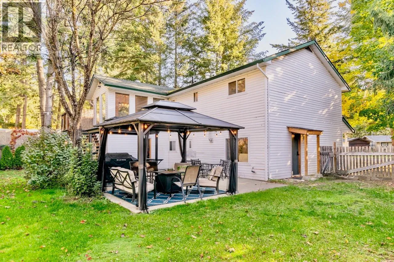 This home in the heart of Scotch Creek is the ultimate blend of location, comfort, and privacy. Escape to this bright 3-bedroom, 2-full bath residence sitting on a spectacular 0.36-acre fully fenced lot, offering a private, resort-like feel, while being steps from everything. The heart of this home is the sun-drenched solarium dining room that offers unobstructed views of the backyard. Itâs the perfect place to start your day or enjoy a quiet meal. The adjacent kitchen features stainless steel appliances, a covered deck, and is open to the living room, perfect for gatherings. Stay cozy with a WETT certified pellet stove, and enjoy peace of mind with a complete PEX plumbing upgrade. The expansive, fully fenced backyard is an entertainer's dream. It's easily maintained, incredibly private, and features a patio with a gazebo, fire pit zone, large storage shed, and a cabana with a sundeck. Location is everything! Live in town, but still feel like you're in the country. Enjoy a quick 6-minute walk to the beach or to Shuswap Lake Provincial Park (public boat launch/playground/bike pump track). All of Scotch Creek's amenities are easily walkable to the many shops, restaurants, grocery and hardware stores, gas station, and pharmacy. The school bus stop is just a 2-min walk away, and the North Shuswap Elementary goes from Preschool to grade 7, and offers after school care. This home would make a great investment opportunity for anyone seeking a rental property. Make it yours today! (id:27476)