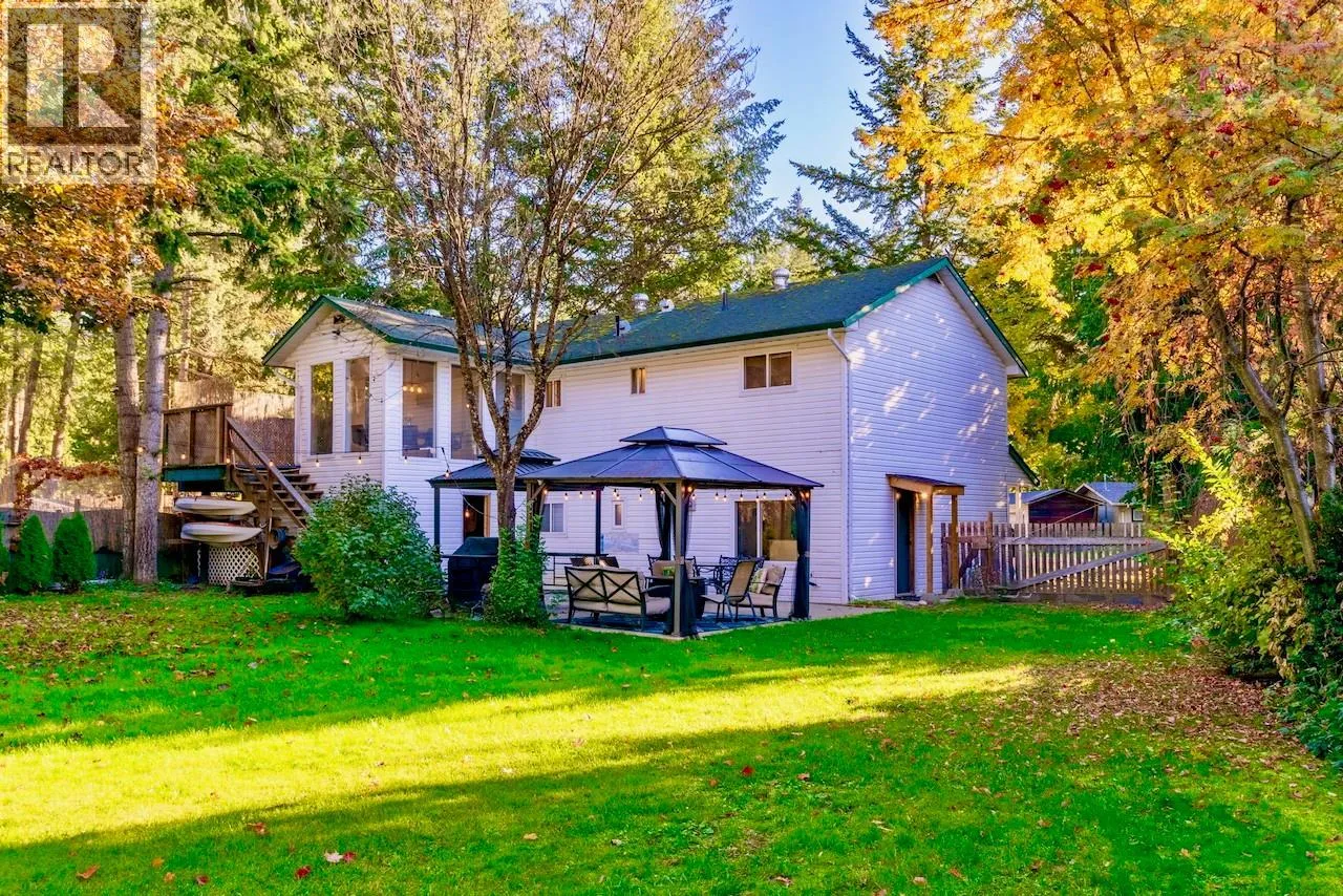 This home in the heart of Scotch Creek is the ultimate blend of location, comfort, and privacy. Escape to this bright 3-bedroom, 2-full bath residence sitting on a spectacular 0.36-acre fully fenced lot, offering a private, resort-like feel, while being steps from everything. The heart of this home is the sun-drenched solarium dining room that offers unobstructed views of the backyard. Itâs the perfect place to start your day or enjoy a quiet meal. The adjacent kitchen features stainless steel appliances, a covered deck, and is open to the living room, perfect for gatherings. Stay cozy with a WETT certified pellet stove, and enjoy peace of mind with a complete PEX plumbing upgrade. The expansive, fully fenced backyard is an entertainer's dream. It's easily maintained, incredibly private, and features a patio with a gazebo, fire pit zone, large storage shed, and a cabana with a sundeck. Location is everything! Live in town, but still feel like you're in the country. Enjoy a quick 6-min walk to the beach or to Shuswap Lake Provincial Park (public boat launch/playground/bike pump track). You can easily walk to the many shops, restaurants, grocery and hardware stores, gas station, and pharmacy in Scotch Creek. The school bus stop is just a 2-min walk away, and the North Shuswap Elementary goes from Preschool to grade 7, and offers after school care. This home would make a great investment opportunity for anyone seeking a rental property too. Available for immediate possession. (id:27476)