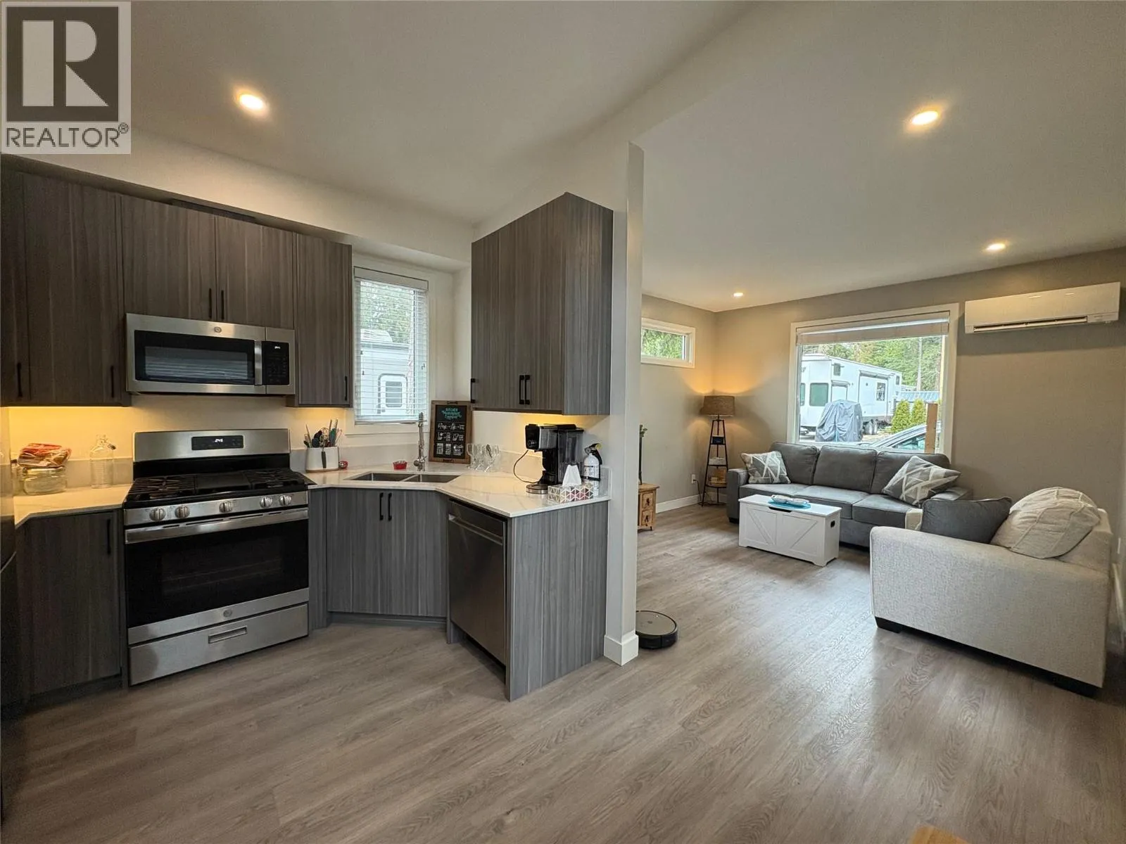 Welcome to resort living at Caravans West RV Resort, one of the Shuswapâs most sought-after gated communities. This 2021 park model home offers 1 bedroom, 1 bathroom, and approximately 560 sq ft of modern living space backing onto green space for added privacy. This turn-key property is being sold fully equipped with many extras including golf cart and 11ft inflatable Tobin boat with trailer, making it ideal for full-time living or a recreational getaway. The bright open-concept layout features modern finishes throughout, a gas stove, in-unit washer and dryer, and an efficient heat pump providing both heating and cooling. The home also includes hot water on demand for added convenience. Outside, the property is fully fenced with locking gates, creating a private and secure yard space. An 8x10 bunkhouse provides additional sleeping space or storage, and there is also an outdoor storage shed for tools and seasonal items. Residents of Caravans West enjoy a wide range of resort-style amenities, including: clubhouses, swimming pools and hot tubs, pickleball courts, playground, guest suites, shared laundry and kitchen facilities, private beach with dock access, workshop and community activity areas. This well-maintained property provides a rare opportunity to enjoy year-round resort living in the beautiful Shuswap region, close to lakes, outdoor recreation, and the welcoming community of Scotch Creek. (id:27476)