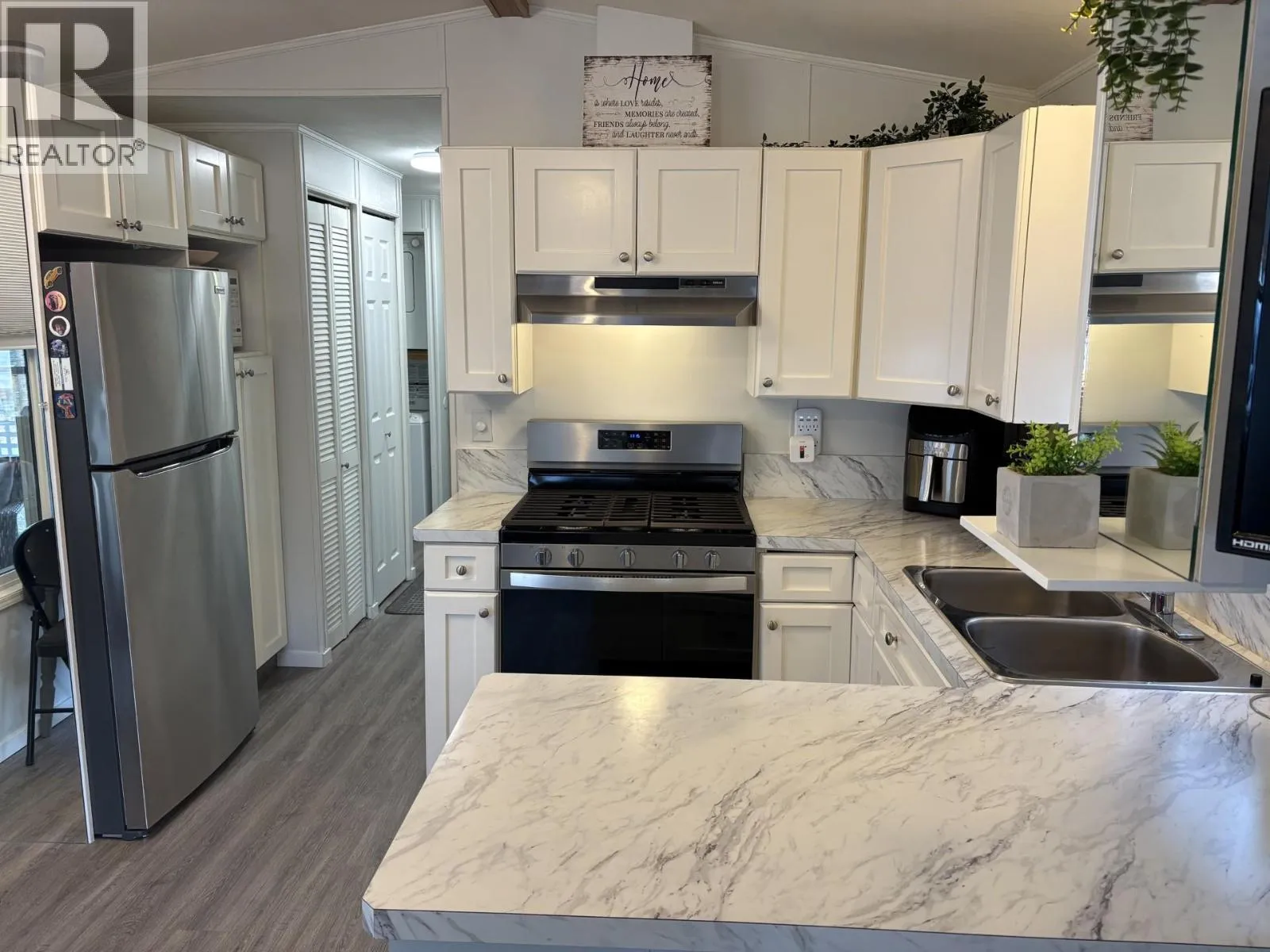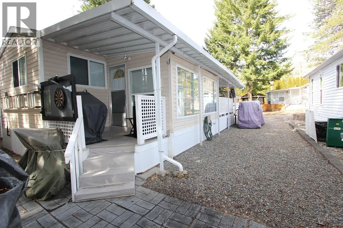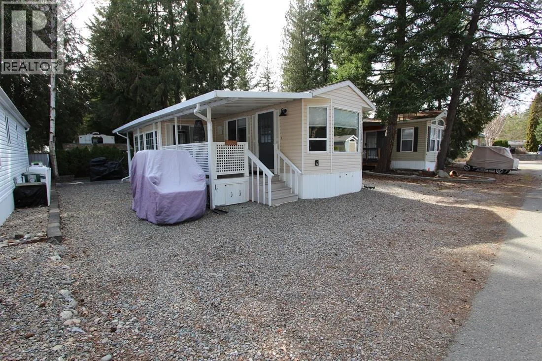 Welcome to Caravans West in desirable Scotch Creek. This well-maintained 2 bedroom plus den park model offers comfortable living in a sought-after, year-round gated community. The bright open-concept layout features an updated kitchen with ample cabinetry and functional living space. The den provides flexibility for guests, office use, or additional storage. Enjoy the covered deck, perfect for use in any weather, along with a private backyard offering peaceful sitting areas. This property is ideal for year-round living or as a seasonal retreat with the option to travel during the winter months. Caravans West offers a wide range of amenities including 2 pools, 2 hot tubs, 2 clubhouses, fitness centre, tennis and pickleball courts, playground, and spray park. Annual dues for 2026 are $4,252.19 and include $863.87 in prepaid property taxes. This is an undivided interest property; traditional financing is not available. Appointments are required as this is a gated community. QUICK POSSESSION is available. (id:27476)