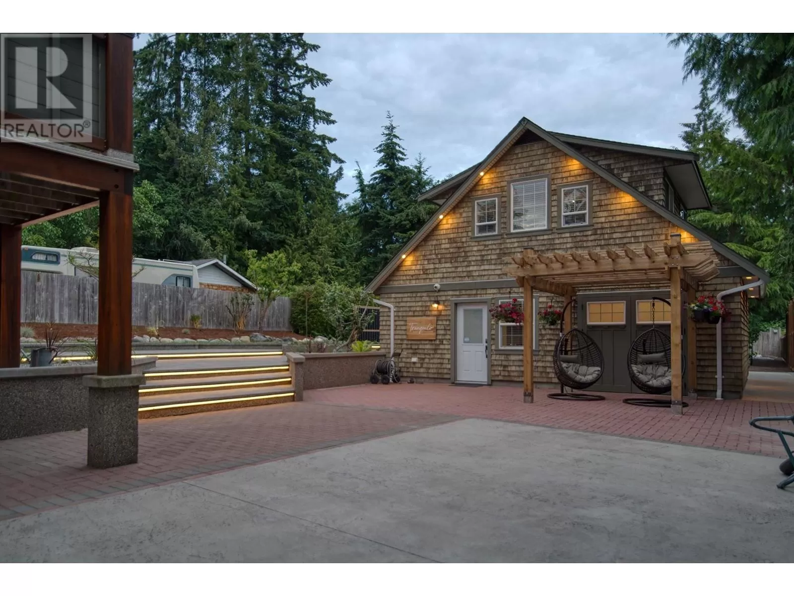 Located in Sechelt on a sunny lot just steps to recreation, this incredible property offers a beautiful residential space and revenue opportunities. The main home features a spacious and newly upgraded, open-concept layout with 2bed plus gym/flex room, 2baths, gym, a large deck, signature fireplace, and nanny suite. The home has been designed with an eco-friendly rainwater retention system. The second home is ideal for two separate living areas for licensed Airbnb or B&B, completely renovated with modern finishing , private outdoor areas and beautifully landscaped gardens. The serene grounds include palm trees, vegetable garden spaces, and greenhouse, making it perfect for a wellness spa or retreat. Additional highlights include an art studio, installed metal fence (with front entrance gate), concrete pathways, and exterior lighting. This Sechelt gem offers endless potential for investors or multi-family living. (id:27476)
