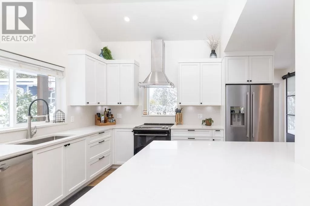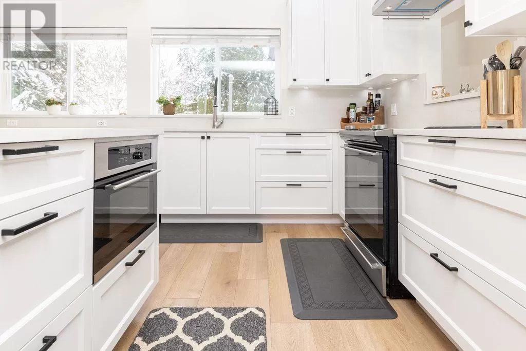Nestled in a serene location on close to 1/2 an acre of parklike property, this stunning 5-bed, 4-bath, and bonus room home offers the perfect blend of comfort and style. As you step inside, you're greeted by a living room with French doors that lead out to a sunny outdoor space. Upstairs, a vaulted ceiling enhances the open-plan family room, dining area, and beautifully updated kitchen, which features two ovens, a built-in espresso machine, and a wine bar-a dream for entertaining. The spacious primary suite has direct access to a deck with a hot tub for ultimate relaxation. The property also boasts a double and single-car garage, complete with heated floors which extend through the main level. Additionally, there is a workshop with a powder room, and plenty of space for easy suite options. R3 Zoning Check out the virtual tour for a walk through of the home. (id:27476)