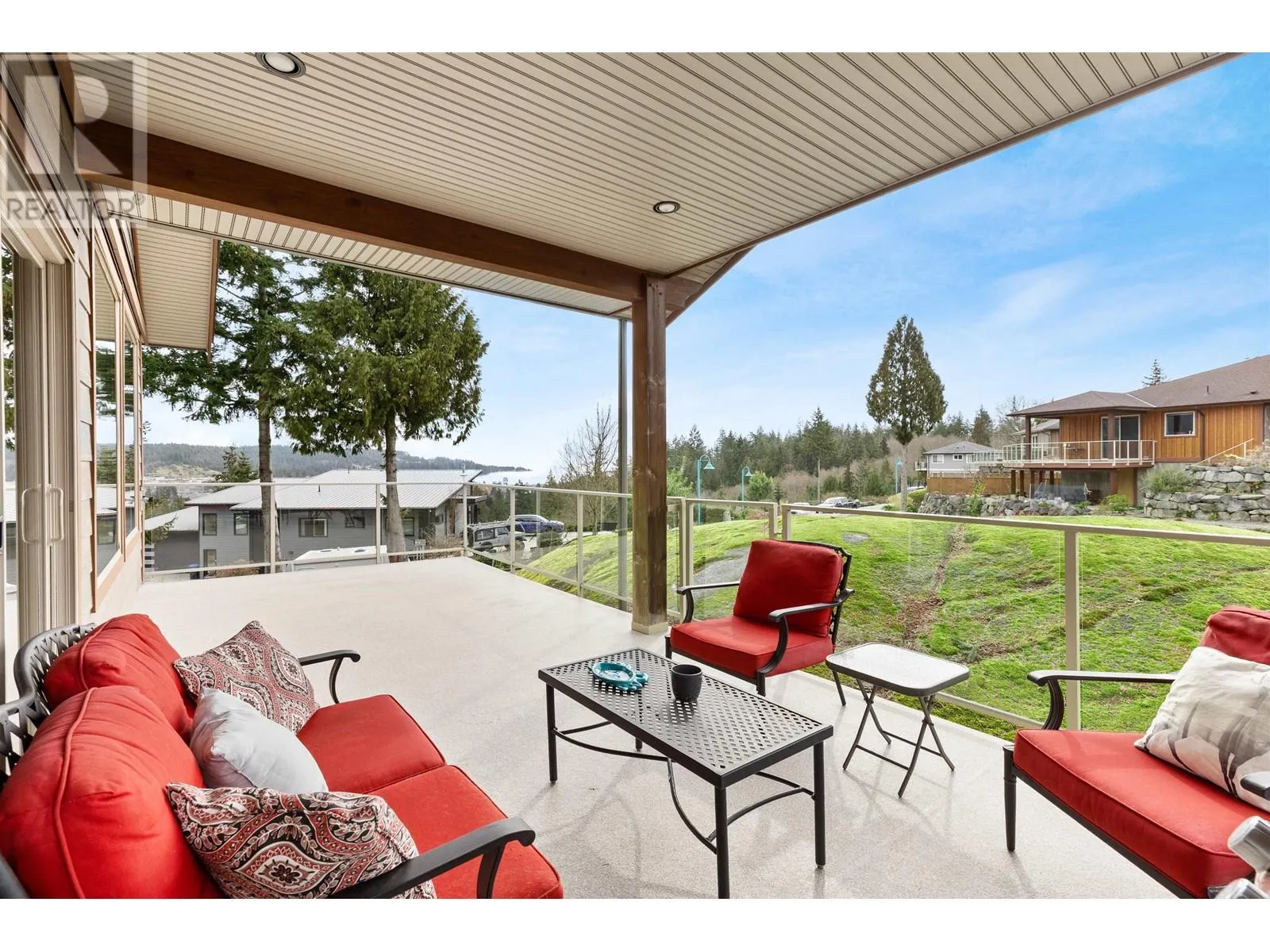 Custom built OCEAN VIEW home located in an exclusive area of quality homes and neighborhood, known as the "Ridge". Within walking distance of Sechelt Schools, Shopping, & Recreation Facilities, this 4 Bedroom & Den Home has 3 Full Bathrooms, plus a large downstairs Rec Room opening onto the low maintenance back yard. The spacious Primary bedroom has a walk-in closet, beautifully appointed ensute bath, & an Ocean View. The spacious open floor plan allows the South facing Ocean View to be with you constantly as you move about the living area. The real maple hardwood & stone tile exude a true feeling of warmth. The designer kitchen features a large multi-use quartz counter island & all appliances. There is a 12´ x 24´ South facing sundeck that is ½ covered for year around barbeques. The huge 28' x 28' garage & downstairs shop with additional 4' concrete shelf. From the high-end doors to the specialty tile treatments in the bathrooms you will love the custom features of this near new home. (id:27476)