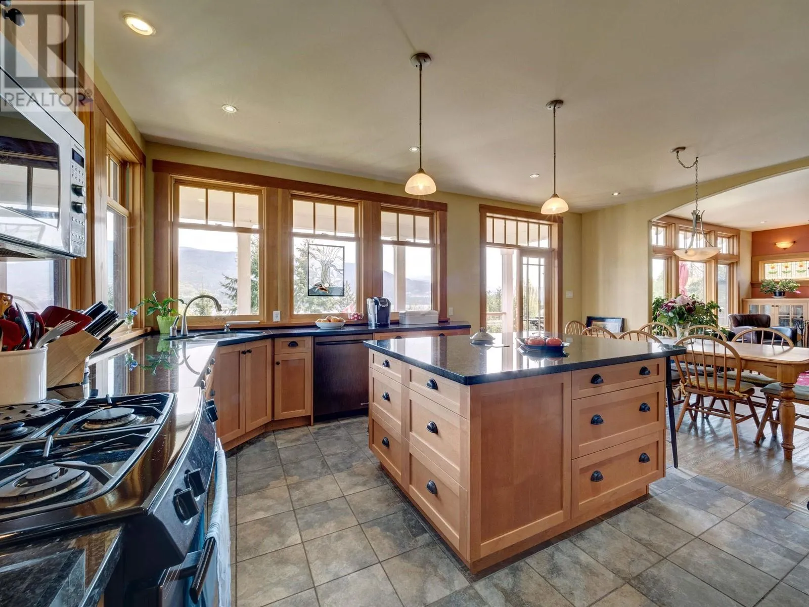Custom built architecturally designed home for the discerning buyer. Built with so many extras - enjoy it all with the fabulous panoramic views of the Sechelt Inlet and the mountain range. Spacious kitchen with granite countertops, living room with wood burning Rumford fireplace, quality wood doors and windows throughout. 3 large bedrooms, 4 bathrooms, an office, two family rooms, workshop, lots of storage, greenhouse/garden shed, beautifully landscaped, wrap around veranda and large garden with patio and sunshade. 24 solar panels for energy saving, HW on demand. Complete with a separate entrance 900 square ft one bedroom suite with loft. Double garage with rough in for electric vehicle charging. Fully serviced RV pad and extra parking space on site. Short drive to all the amenities downtown. (id:27476)