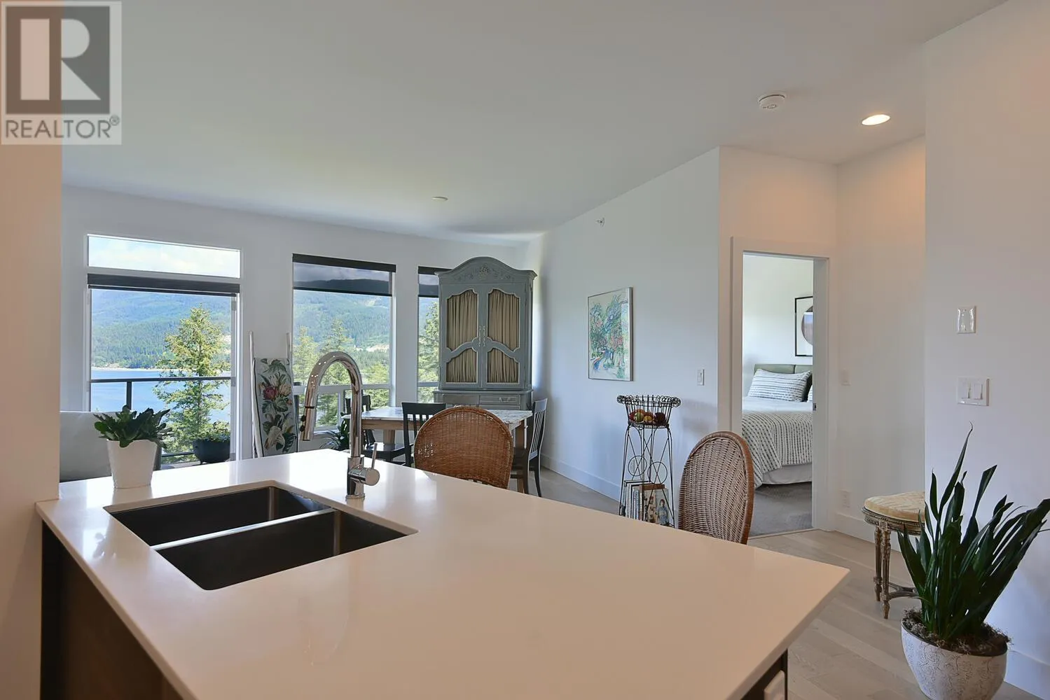 Enjoy coastal living at its finest in the top-floor unit of this low-rise, immaculately maintained building, just 5 mins. to Downtown Sechelt. Offering privacy, tranquility & unobstructed ocean views of the stunning Sechelt Inlet, this bright, contemporary & pristine home embraces the magnificent landscape from every window. The architecturally curved design, high ceilings, French doors, European style cabinetry, quartz countertops & high-quality appliances all complement the beauty of the building itself. Equipped with a BBQ outlet, the large patio facing the Inlet is ideal for entertaining. Other features include a N/Gas fireplace, engineered HW floors, radiant heat in the primary ensuite, HW on demand, & lush, colourful gardens. Meticulously kept, this home is move-in ready! (id:27476)