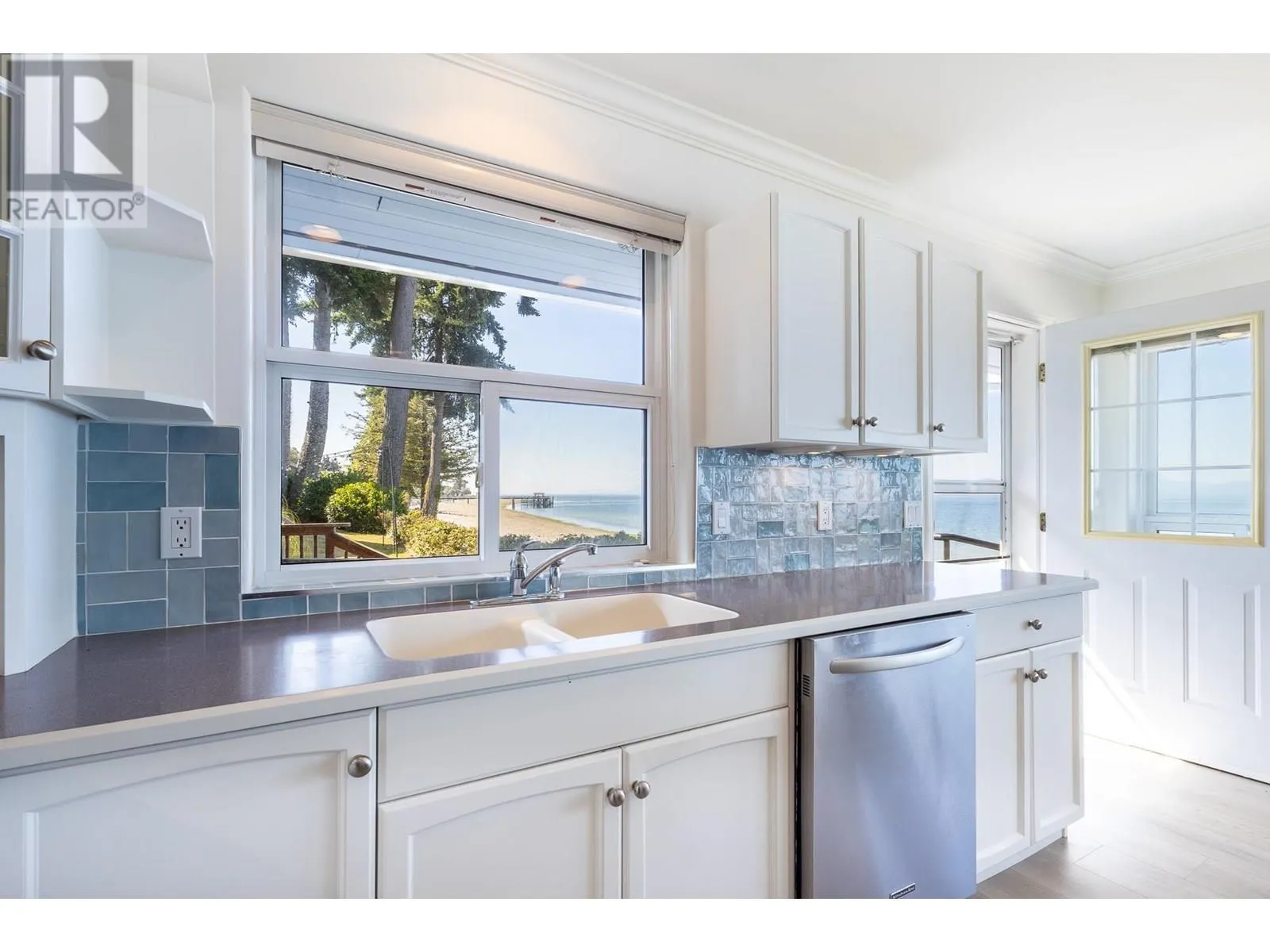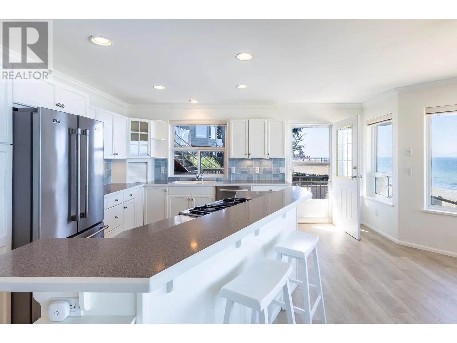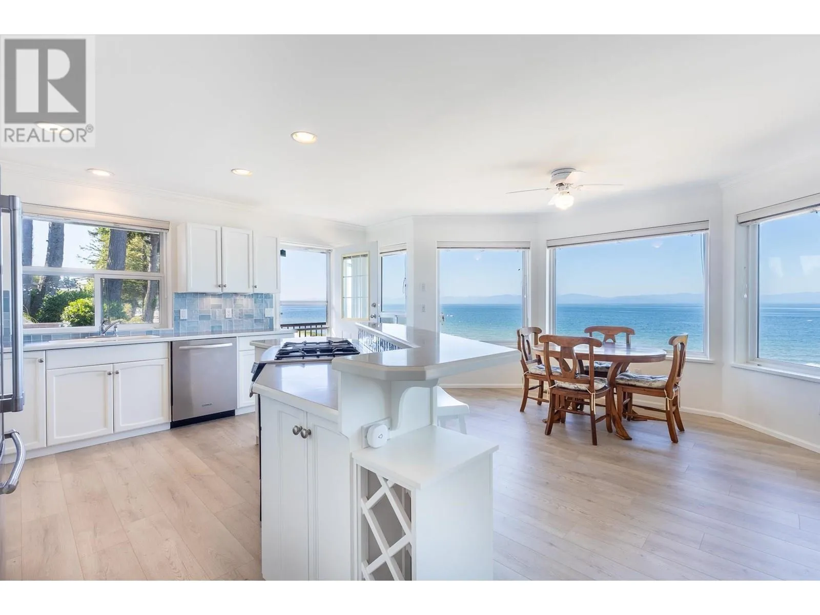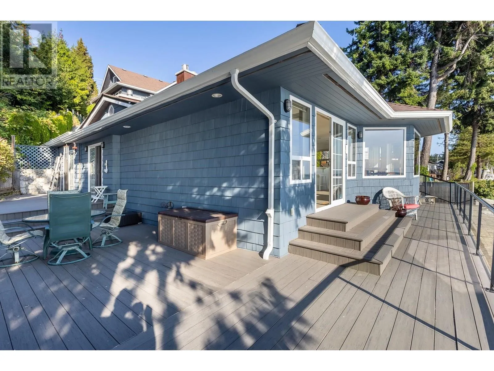 Absolutely one of the best panoramic, close-up ocean views in all of Davis Bay. This rare low-bank waterfront property features a charming 2-bedroom + den rancher and a detached carriage house guest suite, perfect for visitors or extended family. Expansive wrap-around decks offer many options for outdoor entertaining and enjoyment. A 3-bay detached finished garage + workshop, plus a large, flat concrete parking area offer tons of space for vehicles, toys, and RV. Walk to the seawall, beach, and popular restaurants. Coastal living at its finest! (id:27476)