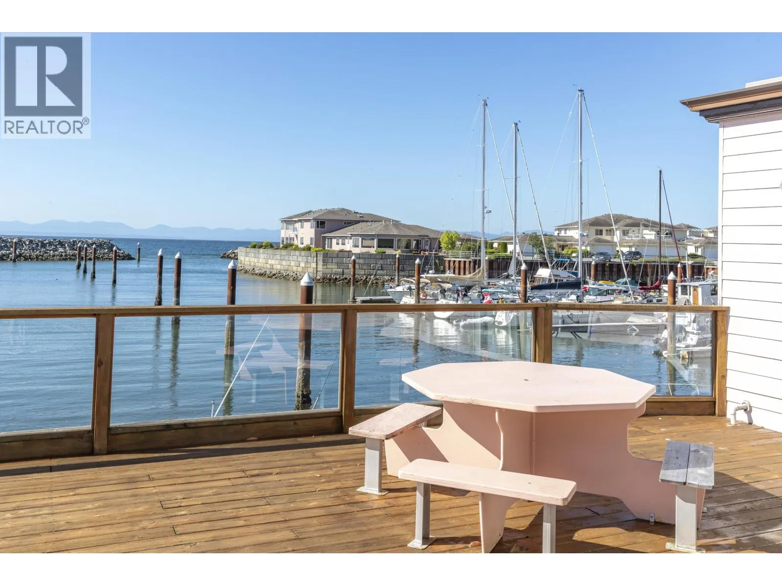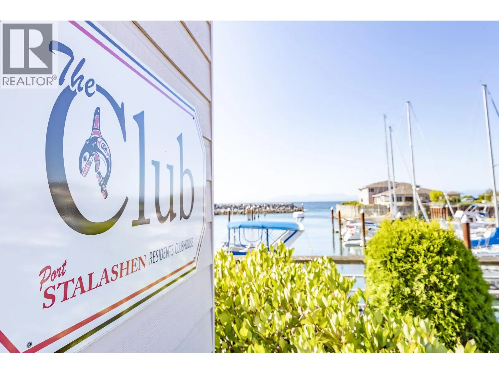Fabulous level access Waterfront Unit at Port Stalashen. Fully renovated with quality hardwood flooring, upgraded appliances, new hot water tank, gas fireplace. Immaculately kept this spacious 1625 square ft 2 bedroom 2 bathroom home is totally private and overlooks the entrance into the marina. Wonderful open floorplan that takes in beautiful Ocean & Mount Baker Views from all rooms. Bright & Sunny this impressive home has both a private deck & a concrete terraced patio sitting area beside the water. This gated complex is situated around a marina & features an owners clubhouse with gym, media room; billiards room, spacious kitchen & party room, Plus separate guest suite for family or guests. 5 minute walk to transit, IGA Canadian Tire. Single Attached Garage with built ins. Shows 10/10 (id:27476)