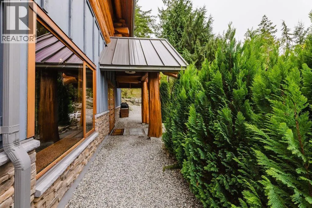 Stunning West Coast Log Home crafted by Pioneer Log Homes (Timber Kings, Williams Lake), embodies quintessential rustic luxury with sweeping views of Sechelt Inlet & surrounding mountains. Massive hand-crafted logs, warmth & character with wrap around windows, soaring ceilings & custom carvings. The Great Room is perfect for curling up by the fire to watch a winter storm roll in or soaking up spectacular sunsets. Heat pump, energy-efficient windows, solar panels, & heavy-gauge steel roof ensure lasting comfort, while the loft style stainless kitchen & open layout flow easily for gatherings or a quiet hangouts. Featuring a carriage house with spacious garage below for all your outdoor gear & guest suite above-perfect for friends or B&B. Truly a one-of-a-kind coastal sanctuary. (id:27476)