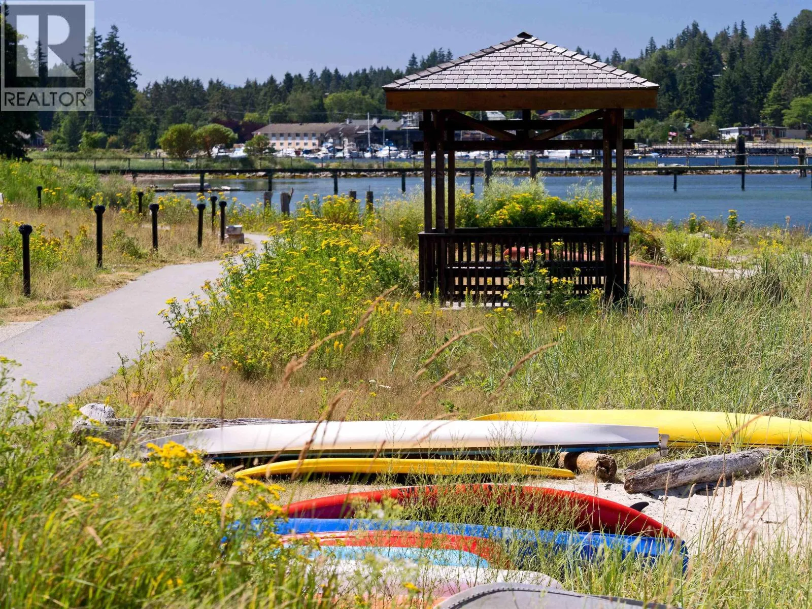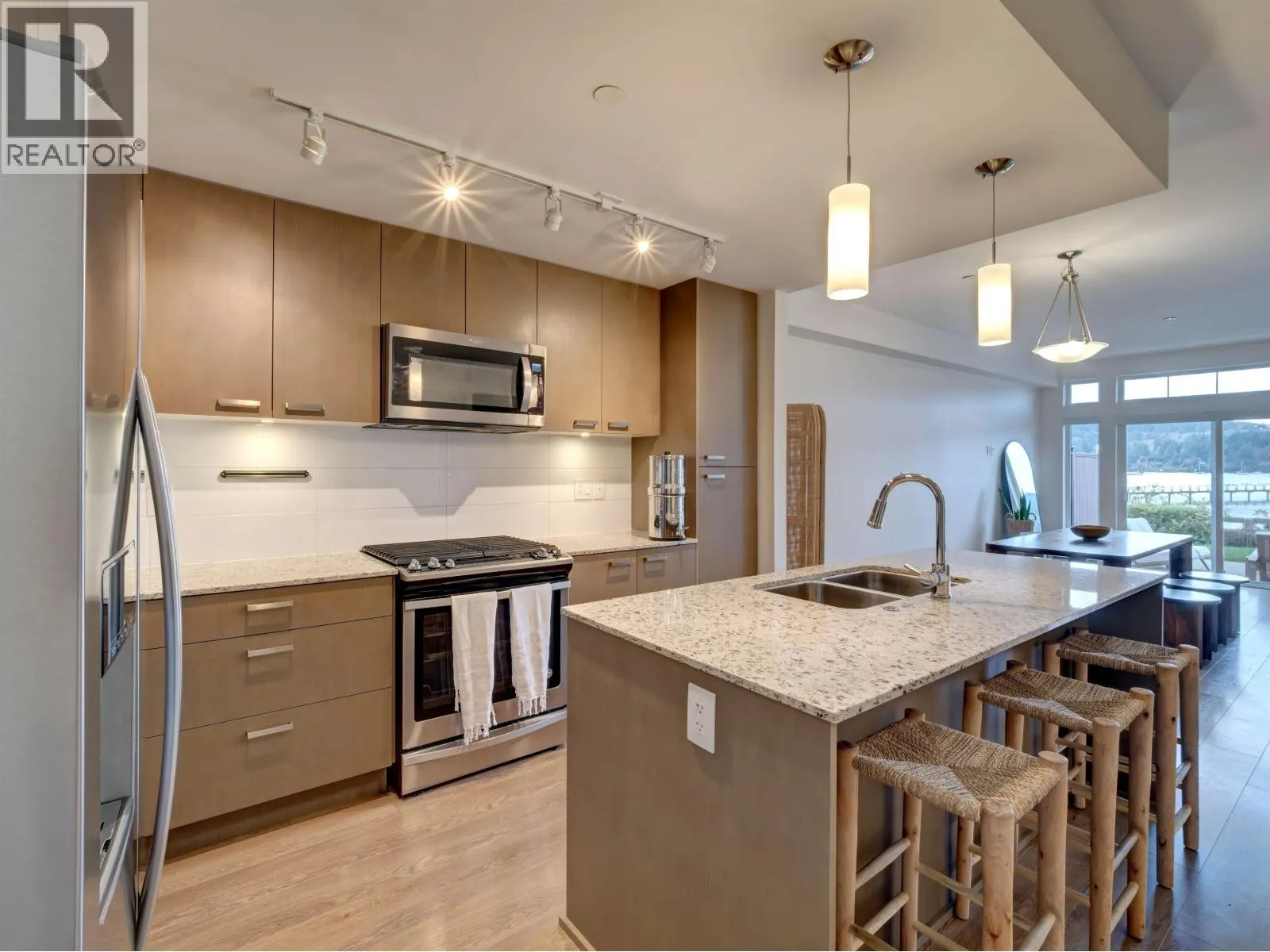 Experience low-bank waterfront living in this stunning west-facing townhome, perfectly designed for comfort, style, and connection to nature. Featuring 3 bedrooms, 3 baths, a flex/office/4th bedroom, this spacious home offers an open-concept layout with 9´ ceilings and abundant natural light. The gourmet kitchen is a chef´s dream with stainless steel appliances, granite countertops, and a seamless flow to the outdoors. High-efficiency new gas fireplace, automatic blinds. unwind on your private primary upper or lower balcony enjoying tranquil water views & sun sets. Launch your kayak from your doorstep, swim, or simply soak in the rays looking for whales. (id:27476)