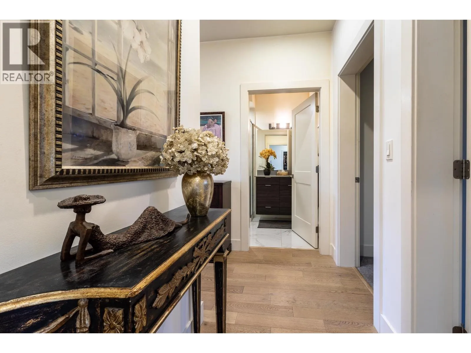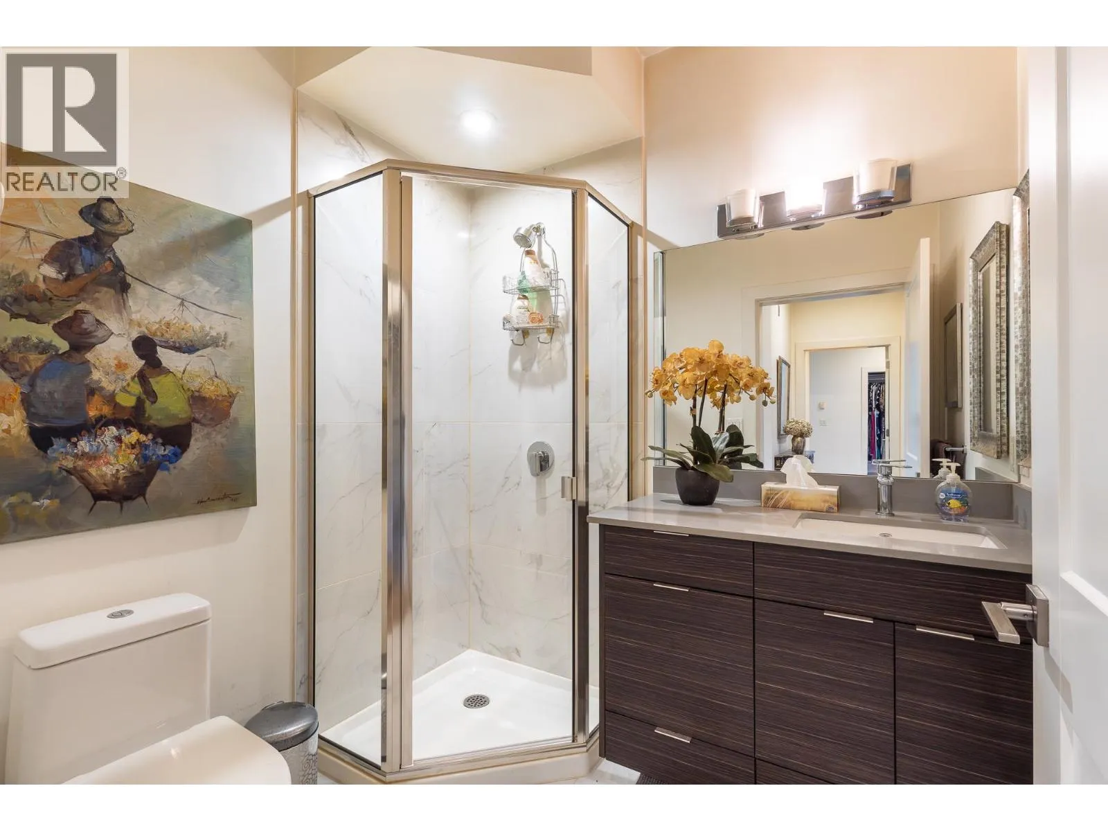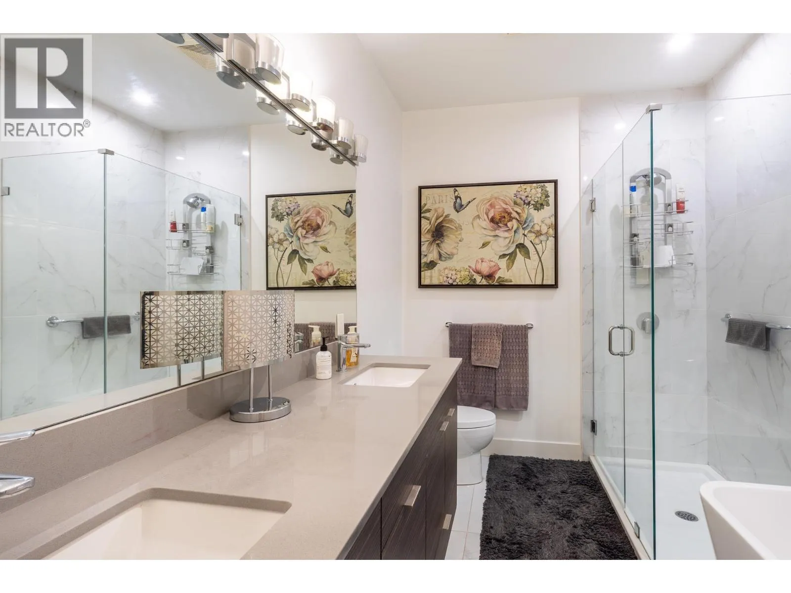Fabulous ocean view corner unit in a quiet, private location, yet just minutes from shopping, restaurants, the golf course and more! This 3 bed/ 2 bath stylish single-level home offers 1,445 sq.ft. of bright, open living space with floor to ceiling windows & a gourmet kitchen with quartz countertops and newer appliances. You'll love the spacious patio, perfect for morning coffee or relaxing afternoons. The luxurious primary bedroom features a large walk-in closet and elegant ensuite with heated floors. Thoughtful details include a cozy N/gas fireplace, engineered HW floors, HW on demand, custom built-in closet systems, ample storage throughout, 2 parking stalls & a separate storage locker. A wonderful opportunity to enjoy comfortable, low-maintenance coastal living in a welcoming community. (id:27476)