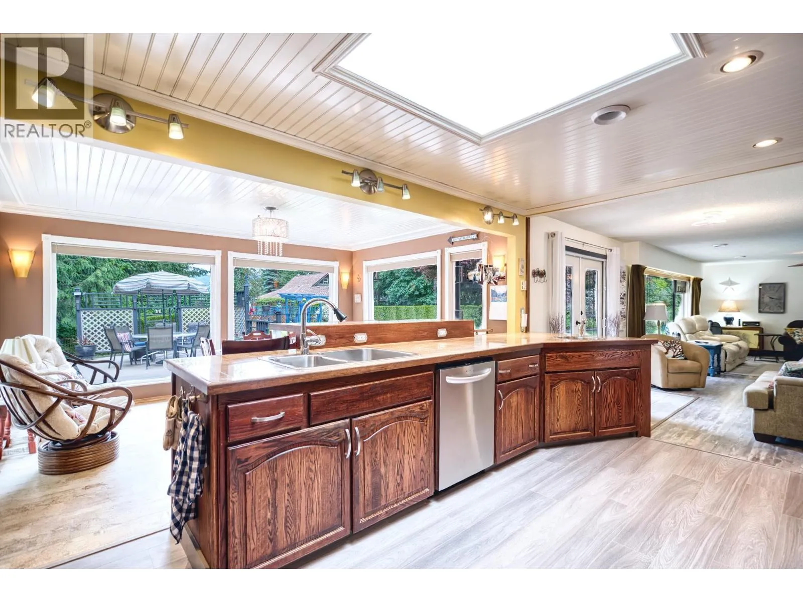 This lovely 3-bed family home is located on a private ½ an acre level-lot, just steps to the beach. The open floor plan is filled with natural light from skylights and abundant windows that look out over mature gardens. Step outside to your oversized deck and listen to the soothing sounds of Brunett Creek as it meanders through your private garden oasis. The chef´s kitchen boasts craftsman-style wood cabinetry and flows into a bright dining area and spacious living room. Entertain in style under the hardtop gazebo or unwind in your fully equipped home theatre with a 75" TV, sound system, and lounge seating. Perfect for easy one-level living with indoor-outdoor harmony. Well on property can be used for irrigation. Short walk to sandy beaches, Brunett Creek falls, 3-min drive to Sechelt! (id:27476)