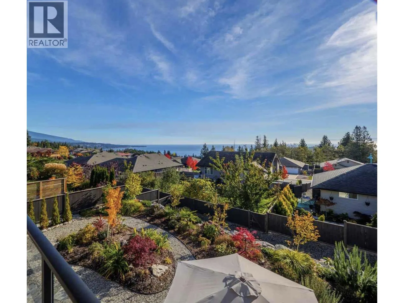 Huge ocean view from this lovely 4-bedroom home in upper West Sechelt, boasting level-entry main floor living with a full walk-out basement (easily suited). Featuring vaulted ceilings, an open-plan layout, a spacious kitchen with granite counters and an oversized island perfect for entertaining. The wide plank flooring and gas fireplaces in both the living and family rooms create a warm, inviting atmosphere. Enjoy breathtaking panoramic views from Davis Bay to the Trail Islands from your oversized sundeck, primary bedroom, family rooms and kitchen. Highlights include a gorgeous mature landscaped yard with irrigation, new heat pump & A/C on the main floor, a retractable awning for indoor-outdoor living. This meticulously cared for home is located just moments from the amenities of Sechelt. (id:27476)