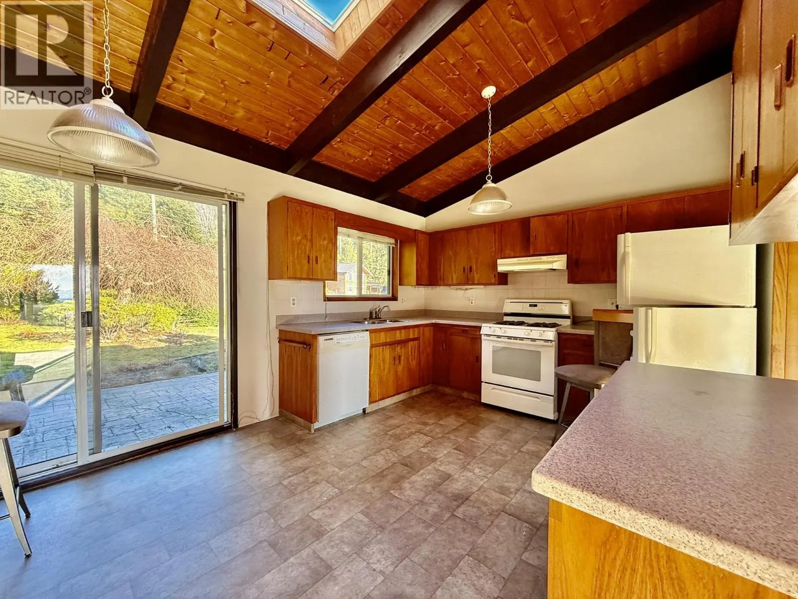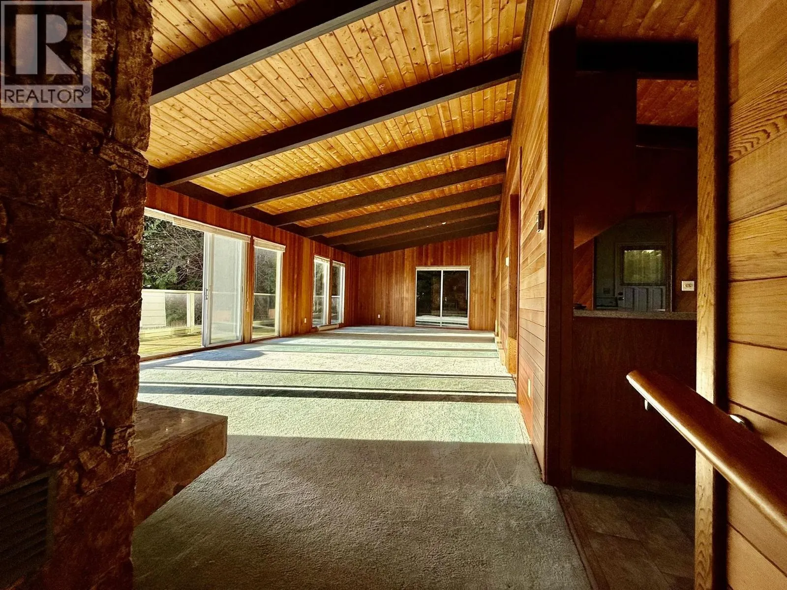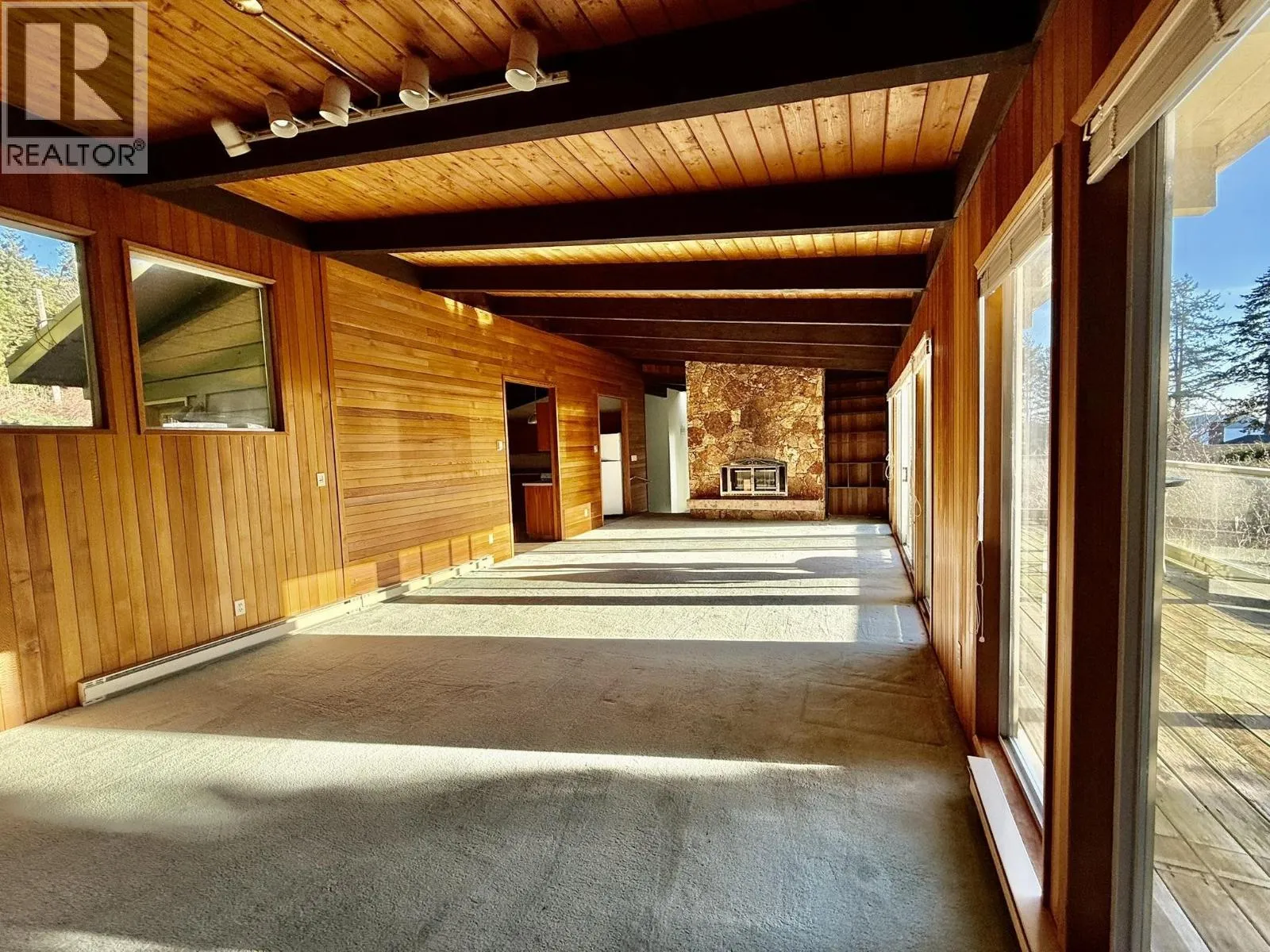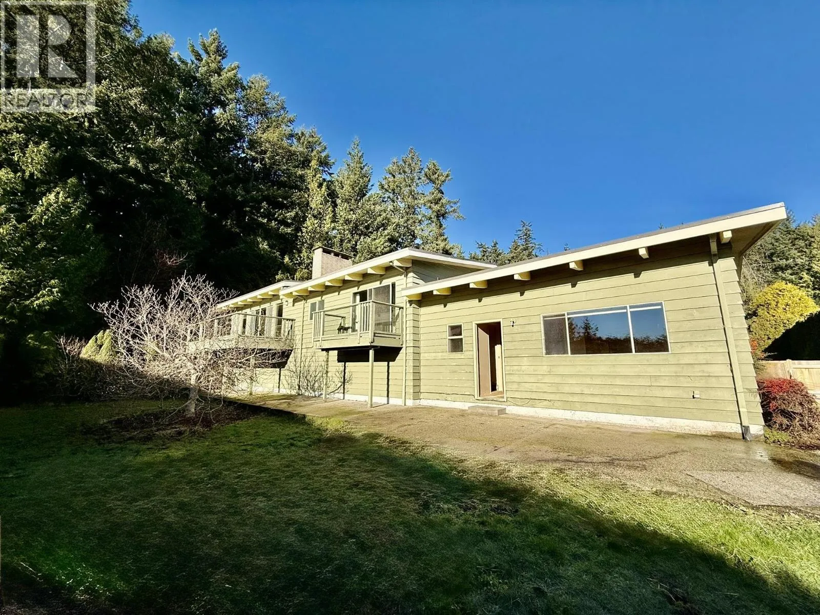 This expansive mid century ranch-style residence boasts a metal roof, fully fenced yard, and level lot Oceanview lot. The floor plan includes 3/4 bedrooms is suitable for an in-law suite while the main living area is complemented by cedar wall paneling, and mid-century design elements, the sprawling layout features three bedrooms, large kitchen, laundry area with mud room door access, a spacious basement/ crawlspace for workshop and ample storage. Outside enjoy mature landscaping, large deck, patio and garden space and all just 100 yards from public beach access on a cul-de-sac. The driveway and front area have ample space for RV or boat parking, this property is ripe for design upgrades. (id:27476)