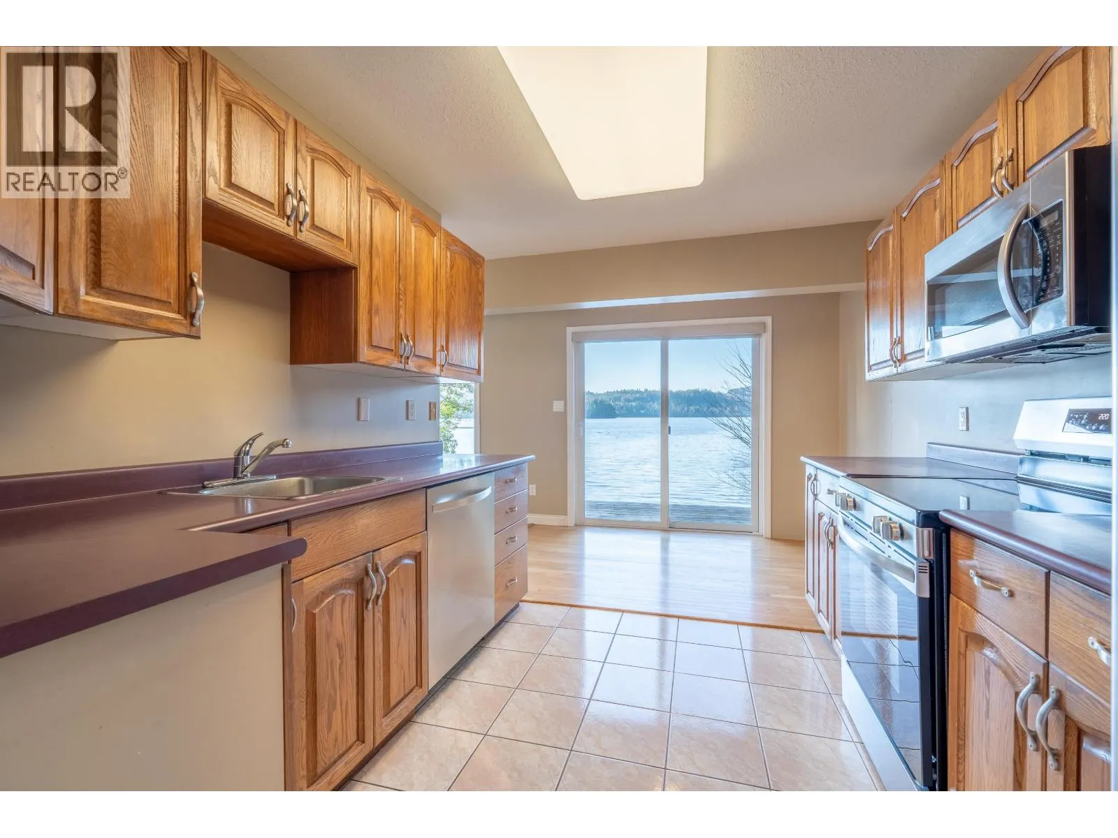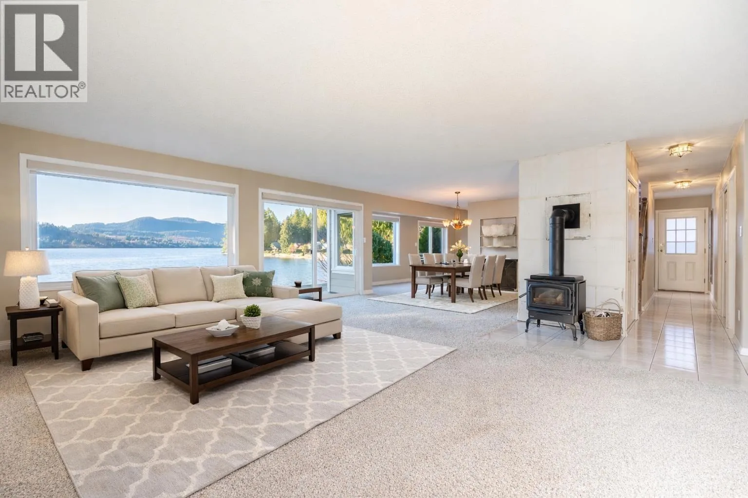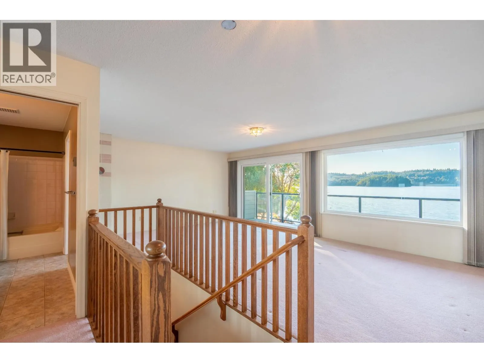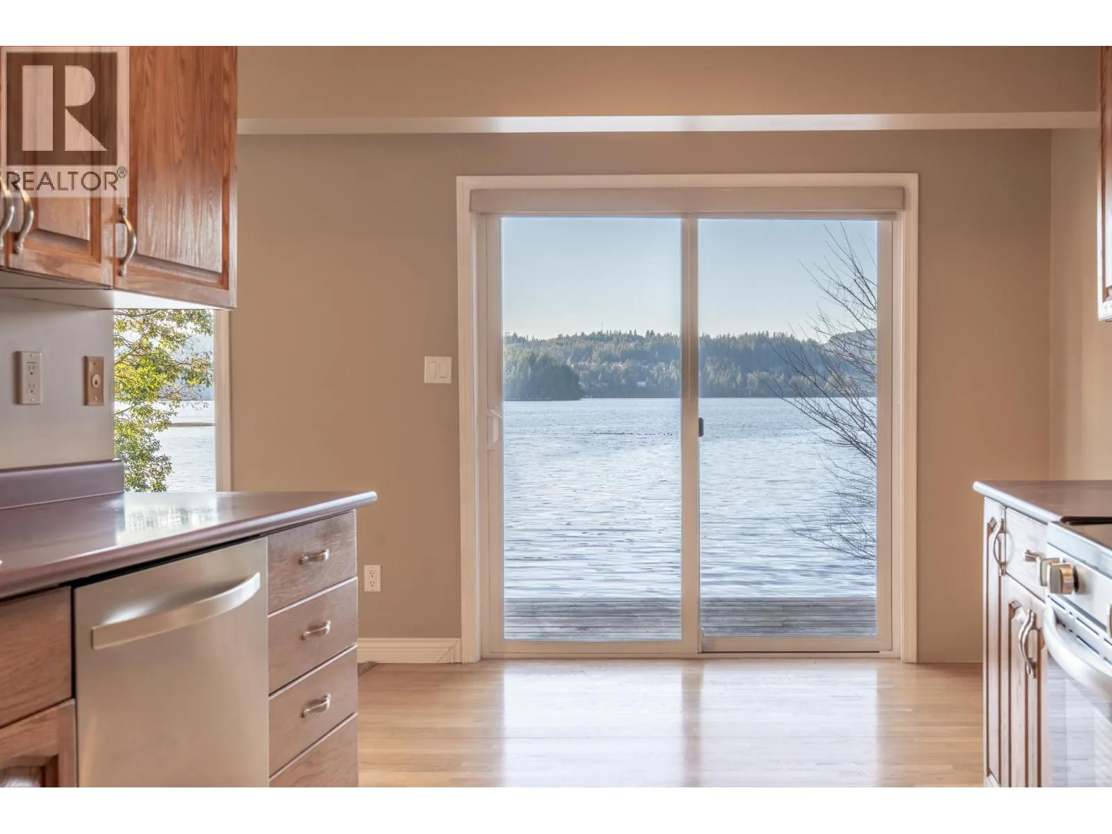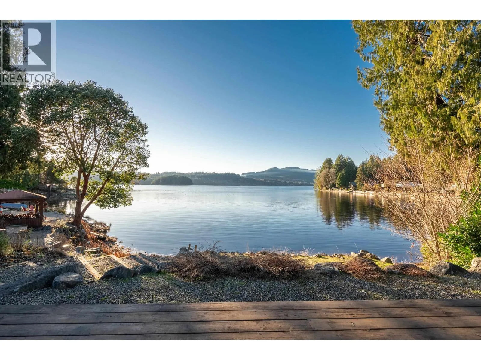 Gorgeous level walk-out waterfront rancher with loft, tucked into a quiet bay on a peaceful street. This 3-bed, 3-bath home new addition added a wall of windows to enjoy the ocean views and hardboard siding. Free standing gas fireplace, new stove and hot water tank, some flooring replace, walk in shower with grab rails. Two bedrooms are on the main level, with a 3rd bedroom/hobby room, ensuite, closet with a window for cross breeze, and large deck capturing the scenery around. Original owner-thoughtfully selected this exceptional lot for its privacy and stunning views of Poise Island. Lots of parking for recreational vehicles. Forest trails at the end of the cul-de-sac. (id:27476)