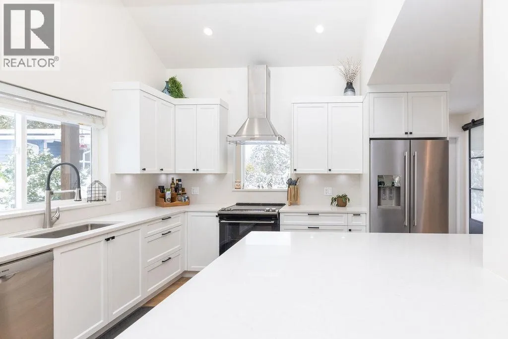 Nestled in a serene location on close to 1/2 an acre of parklike property, this stunning 5-bed, 4-bath, and bonus room home offers the perfect blend of comfort and style. As you step inside, you're greeted by a living room with French doors that lead out to a sunny outdoor space. Upstairs, a vaulted ceiling enhances the open-plan family room, dining area, and beautifully updated kitchen, which features two ovens, a built-in espresso machine, and a wine bar-a dream for entertaining. The spacious primary suite has direct access to a deck with a hot tub for ultimate relaxation. The property also boasts a double and single-car garage, complete with heated floors which extend through the main level. Additionally, there is a workshop with a powder room, and plenty of space for easy suite options. R3 Zoning Check out the virtual tour for a walk through of the home. (id:27476)
