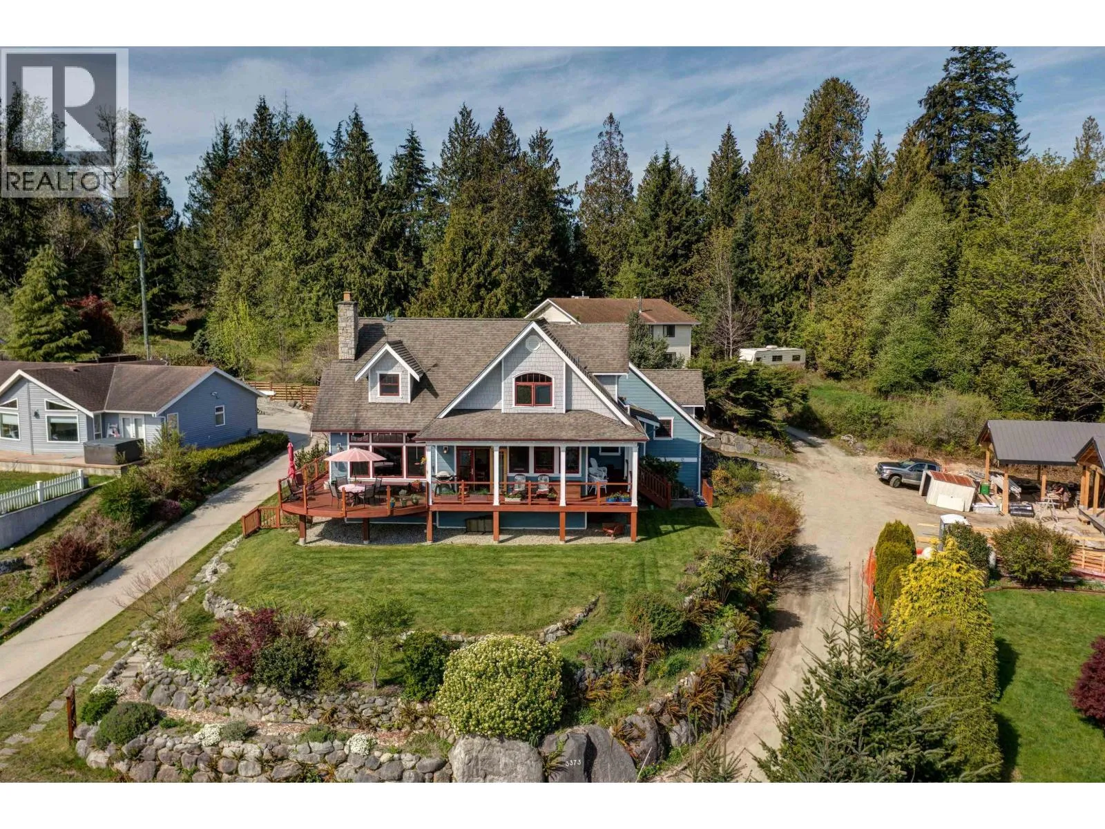 Custom built architecturally designed home for the discerning buyer. Built with so many extras - enjoy it all with the fabulous panoramic views of the Sechelt Inlet and the mountain range. Spacious kitchen with granite countertops, living room with wood burning Rumford fireplace, quality wood doors and windows throughout. 3 large bedrooms, 4 bathrooms, an office, two family rooms, workshop, lots of storage, greenhouse/garden shed, beautifully landscaped, wrap around veranda and large garden with patio and sunshade. 24 solar panels for energy saving, HW on demand. Complete with a separate entrance 900 square ft one bedroom suite with loft. Double garage with rough in for electric vehicle charging. Fully serviced RV pad and extra parking space on site. Short drive to all the amenities downtown. (id:27476)