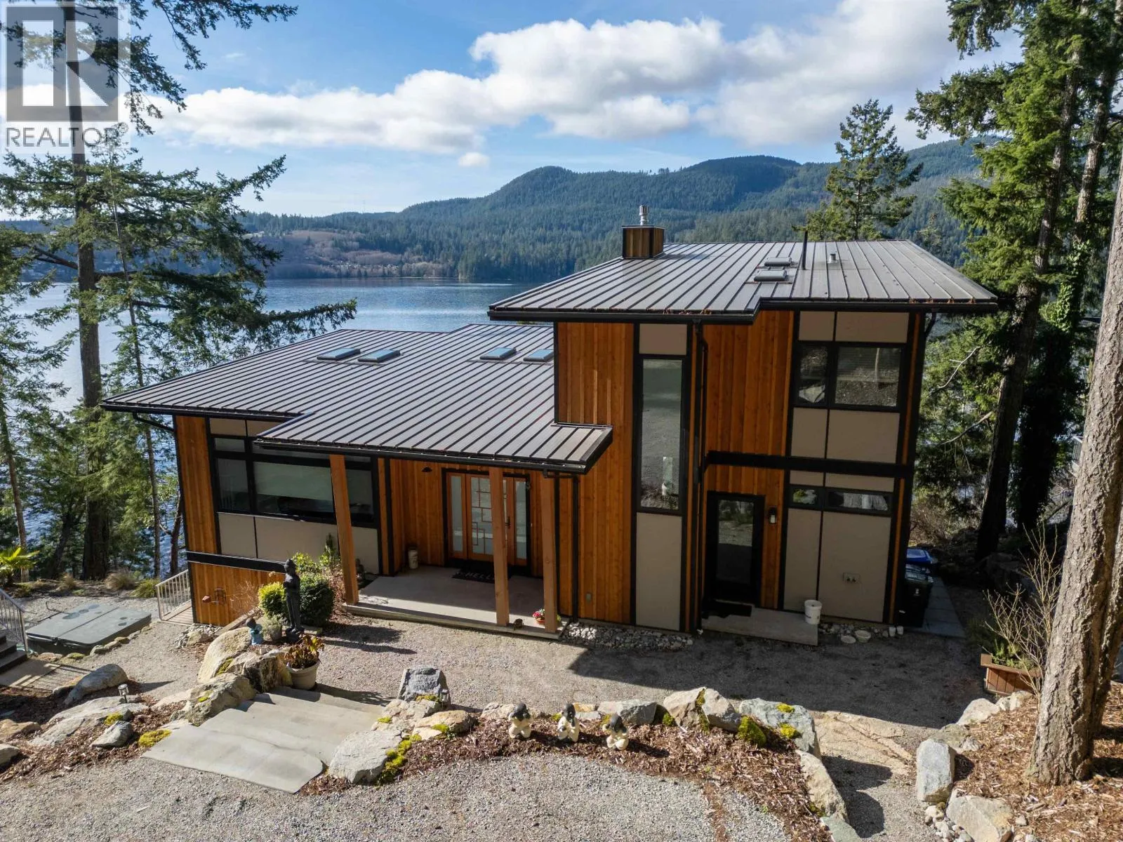 Stunning Custom-built waterfront home completed in late 2020, approx. 2,600 sq.ft. of modern living on a private 25,700 sq.ft. lot with panoramic inlet views. Thoughtfully designed over 2 levels, this 2-bedroom+ den, 3-bathroom residence features an open living plan, chef´s kitchen, expansive entertaining deck, spa-style hot tub, and quality finishes throughout including gas fireplace, heat pump, remote-controlled blinds and skylights, and built-in speaker system. Fully detached 500 sq.ft. 1-bedroom cottage currently operates as a successful Airbnb, ideal for guests or rental income. Level driveway, exceptional privacy, and striking modern design. Located close to Sechelt marina, trails, and town amenities. Only 30 minutes to Gibsons and approximately 1 hour ferry ride from West Vancouver. (id:27476)