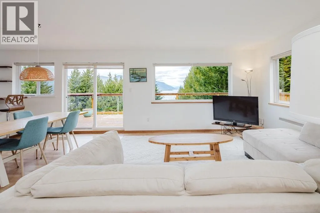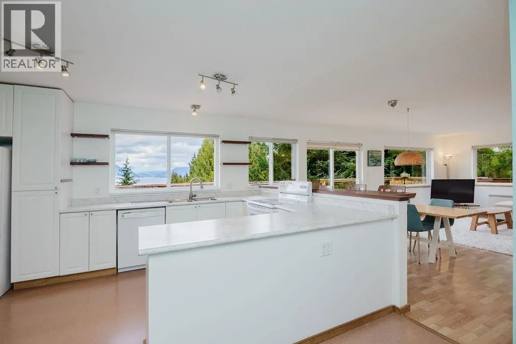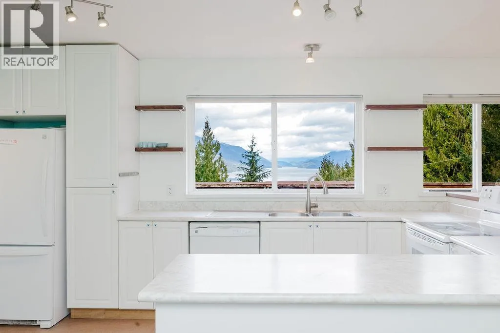 Well-maintained 3 bed, 3 bath view home in Sandy Hook, with beautiful outlooks over Sechelt Inlet. The upper floor features bright open-plan living areas with a clean minimalist feel and large front deck perfect for enjoying the views. Functional layout and great natural light, plus two spacious bedrooms, and a large office/flex space. The lower level features a rec room, additional bedroom, large storage space, and workshop. Suite potential. The home is set on a 8200 sqft property with large level yard space, garage and situated in a peaceful neighbourhood with walkability to forest trails and the waterfront. (id:27476)