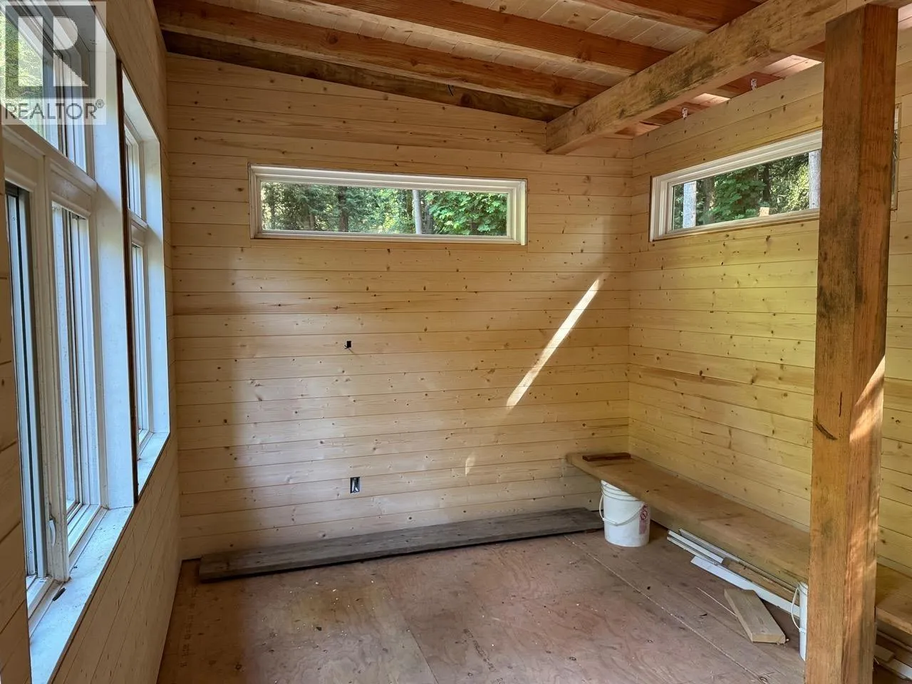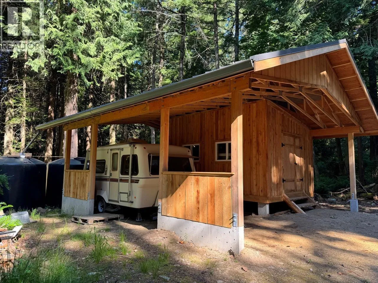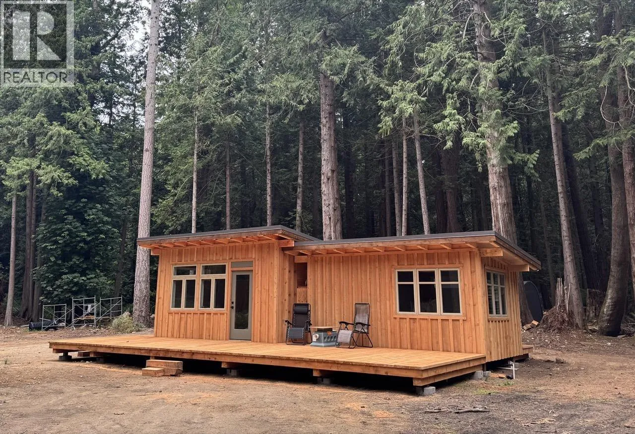 Escape to your own private retreat this summer on 10.9 acres of level, forested land, rich w/towering trees, a tranquil pond & complete seclusion. This unique property features two thoughtfully designed movable pod-style cabins one offering an open-concept kitchen, family room, & cozy wood stove, the other a spacious bedroom, full bath & storage. Enjoy seamless indoor-outdoor living with an outdoor shower connected directly to the cabin & beautiful cedar siding milled right from the property. Additional improvements include a storage/sleeping shed, carport, well, & rainwater collection system.Two separate driveways provide access to multiple building sites, including plans for a 1,339 sq. ft. cottage offering excellent future potential. Ideally located near one of the best beaches in BC! (id:27476)