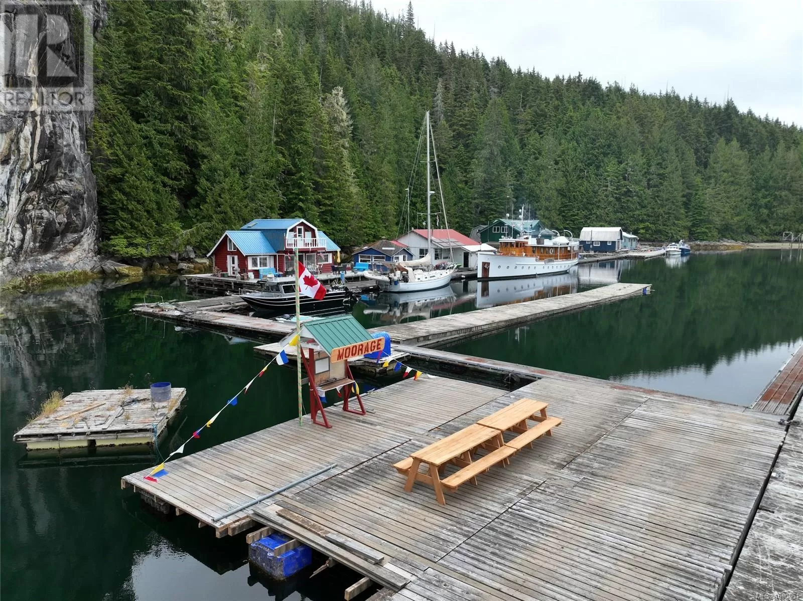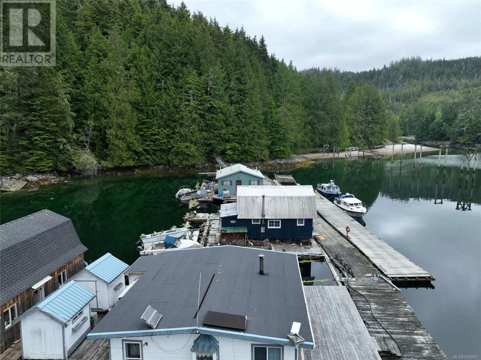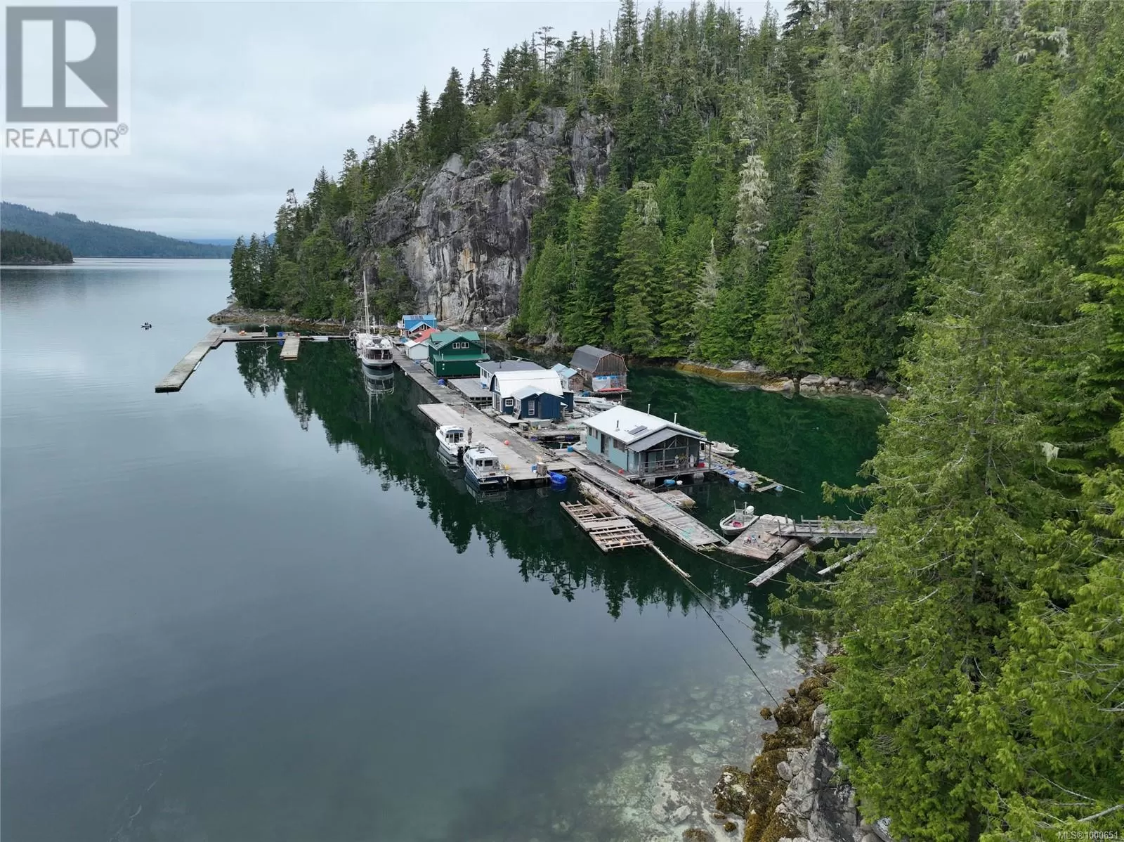 Long-term lease for commercial moorage, workshop and floating cabins situated in Echo Bay, Gilford Island. This well-protected location enjoys beautiful southern and western exposure and has relatively quick, easy access to Knight Inlet and a multitude of other inlets, islands and waterways throughout the Broughton Archipelago. Port McNeill on Vancouver Island is approximately 25 nautical miles to the south. The lease is on the âsunny sideâ of the bay, while the dramatic rise of land behind the lease has led to the nickname âCliffside Marinaâ, with majestic trees and rock faces rising straight up out of the water providing protection from winds. There are floating cabin moorage rentals in place. The owner also has a personal 1000sqft float cabin and workshop at the dock, which are included in the sale. The floating buildings are moored closest to the shoreline on the inside of the dock. At one end of the main dock that runs along the shore there is an arm with three additional fingers, allowing for moorage for transient or seasonal boaters, currently renting at $1/linear foot. Two new floats have just been added to this moorage, one set up as a common gathering area. There is a water licence for commercial use of water from Ranger Creek on the land behind the lease. There is also an effluent permit in place for the lease, although each float cabin is responsible for their own effluent. The lease has 19 years left on it, making this an attractive long-term opportunity. Kwaxwalawadi - Echo Bay Marina is across the bay and offers a restaurant, post office, store, fuel services, lodge accommodations and water taxi and float plane services. In the past, Cliffside Marina has handled overflow boat traffic from Echo Bay. The purchase opportunity is for Lease #V906829, water license #C100930 and effluent permit #14721, sole ownership of +/- 1000sqft floating shop, 1000sqft floating cabin, all dock/anchoring infrastructure, and the assignment of all leases. (id:27476)