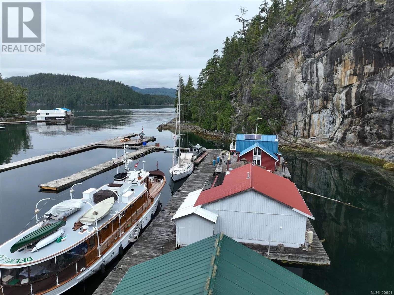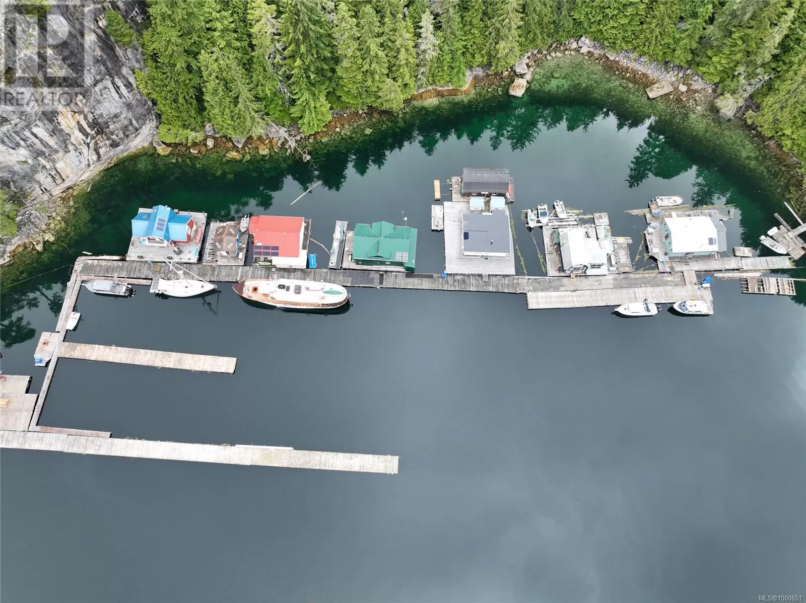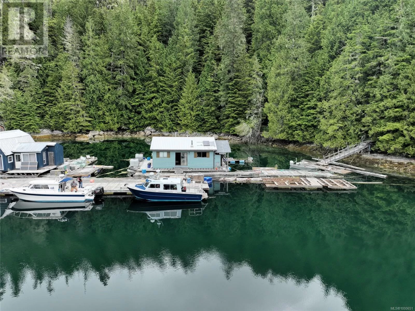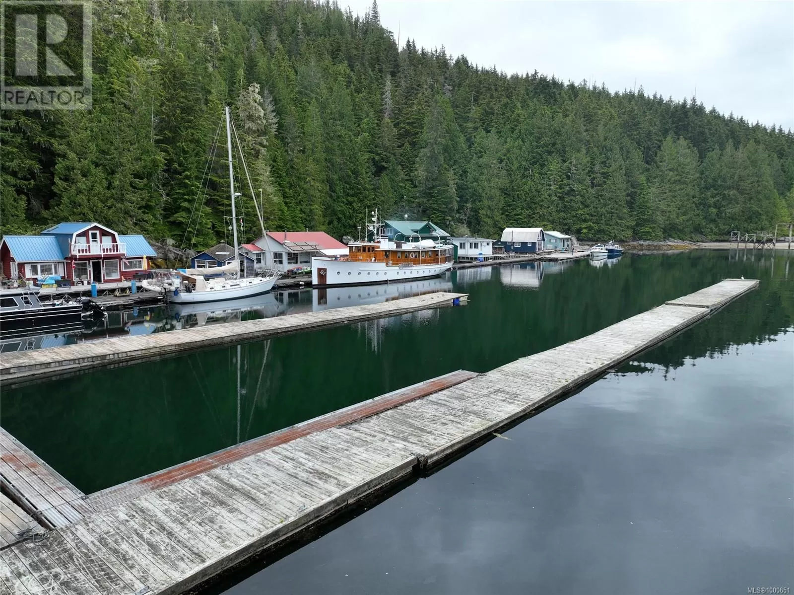 Long-term lease for commercial moorage, workshop and floating cabins situated in Echo Bay, Gilford Island. This well-protected location enjoys beautiful southern and western exposure and has relatively quick, easy access to Knight Inlet and a multitude of other inlets, islands and waterways throughout the Broughton Archipelago. Port McNeill on Vancouver Island is approximately 25 nautical miles to the south. The lease is on the âsunny sideâ of the bay, while the dramatic rise of land behind the lease has led to the nickname âCliffside Marinaâ, with majestic trees and rock faces rising straight up out of the water providing protection from winds. There are floating cabin moorage rentals in place. The owner also has a personal 1000sqft float cabin and workshop at the dock, which are included in the sale. The floating buildings are moored closest to the shoreline on the inside of the dock. At one end of the main dock that runs along the shore there is an arm with three additional fingers, allowing for moorage for transient or seasonal boaters, currently renting at $1/linear foot. Two new floats have just been added to this moorage, one set up as a common gathering area. There is a water licence for commercial use of water from Ranger Creek on the land behind the lease. There is also an effluent permit in place for the lease, although each float cabin is responsible for their own effluent. The lease has 19 years left on it, making this an attractive long-term opportunity. Kwaxwalawadi - Echo Bay Marina is across the bay and offers a restaurant, post office, store, fuel services, lodge accommodations and water taxi and float plane services. In the past, Cliffside Marina has handled overflow boat traffic from Echo Bay. The purchase opportunity is for Lease #V906829, water license #C100930 and effluent permit #14721, sole ownership of +/- 1000sqft floating shop, 1000sqft floating cabin, all dock/anchoring infrastructure, and the assignment of all leases. (id:27476)