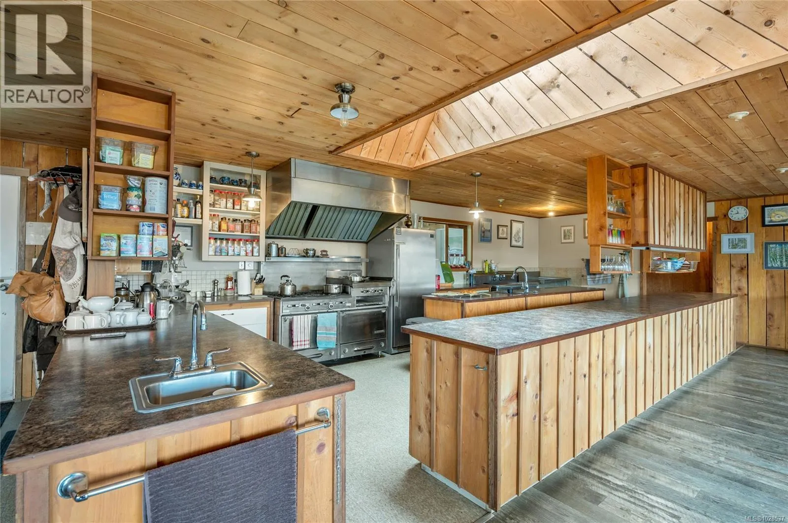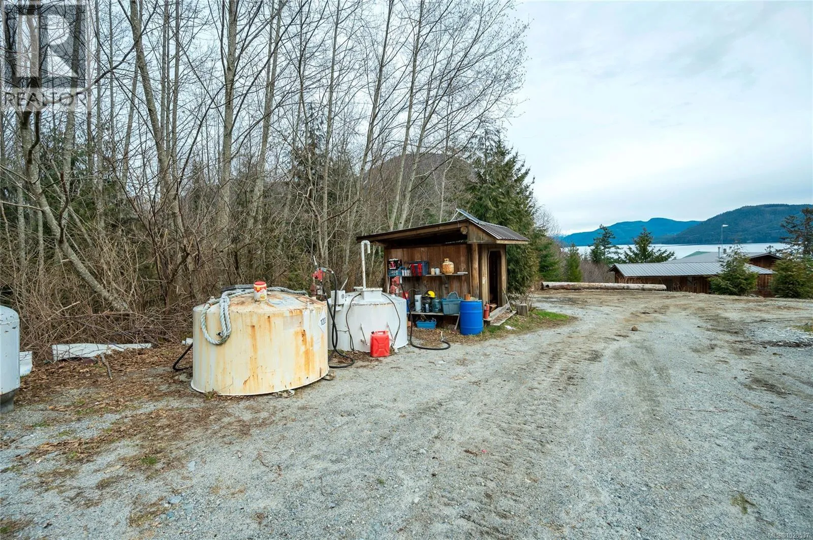33.7 acre oceanfront property in Jackson Bay offering beautiful views up Topaze Harbour with long distance views of snowcapped mountains. Zoned for both residential and commercial use, the property offers an opportunity for diverse uses. The current owners developed it to cater to coastal work crews in the forest industry, fish camps, divers etc. The main lodge and bunkhouse are set up with commercial kitchens, bathroom and laundry facilities, and common areas. There is also a main residence, a one-room cabin, a sizable workshop and additional outbuildings, plus dock and moorage facilities. An internal road network allows access throughout the entire property and onto the adjoining forest service road system. There is a greenhouse and large garden area enjoying full sunshine and giving the ability to produce a large quantity of fresh produce. The multiple structures on the property are situated to take advantage of the beautiful ocean views and sunny exposure. The fully independent and integrated systems on the property include separate septic systems for the lodge, bunkhouse, residence and studio; a significant freshwater source with retention ponds and 2500 gallon holding tank for garden use, an array of solar panels which feed a battery bank, and an invertor system. There are three diesel generators for back up and times of high demand. There is also a water treatment plant to comply with commercial use and health department requirements. The power and water lines on the property are buried and the gas line to the lodge is buried. The property enjoys the benefit of access to a significant network of mainland forest service roads offering hundreds of kilometers through Crown land, other magnificent inlets in the region plus numerous lakes throughout the area abundant with fish and wildlife, making the property ideal for ecotourism and adventurers. Boat and float plane access only, the nearest launch point is Kelsey Bay in the Sayward Valley on Vancouver Island. (id:27476)
