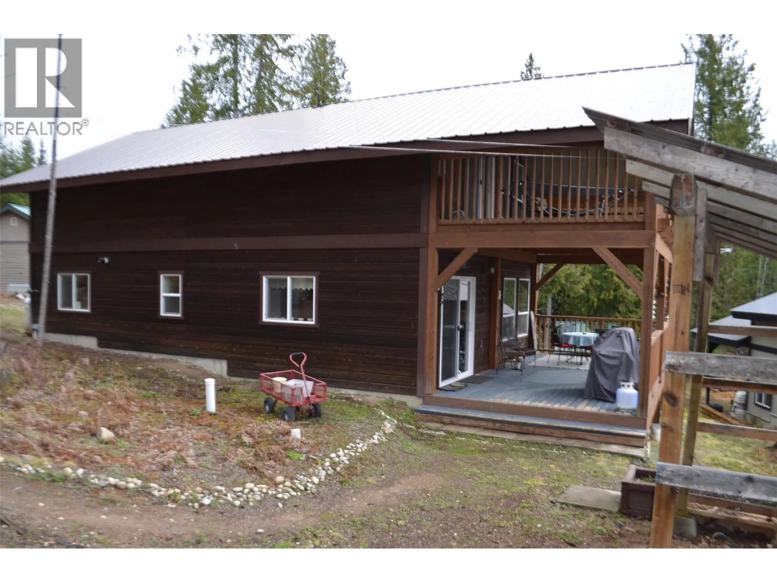 Located in this waterfront development, exquisite 3 bedroom, 2 bath oasis boasting a warm and inviting cabin ambiance. This meticulously designed retreat features covered decks perfect for gazing at the stunning surroundings. The property includes a spacious attached garage/shop/boathouse and a detached bunkie or workshop for added convenience. Situated mere steps from the picturesque sandy shores of Shuswap Lake, residents can luxuriate in the private common beach and dock, all within the tranquil setting adjacent lush marine park. Despite its off-grid status, the home seamlessly blends modern technology with nature, offering satellite internet access, cell service and solar power with a whisper-quiet generator, and on-demand hot water. Indulge in a secluded, upscale lakeside lifestyle with this exceptional offering. Turn-key, furnishings included. (id:27476)