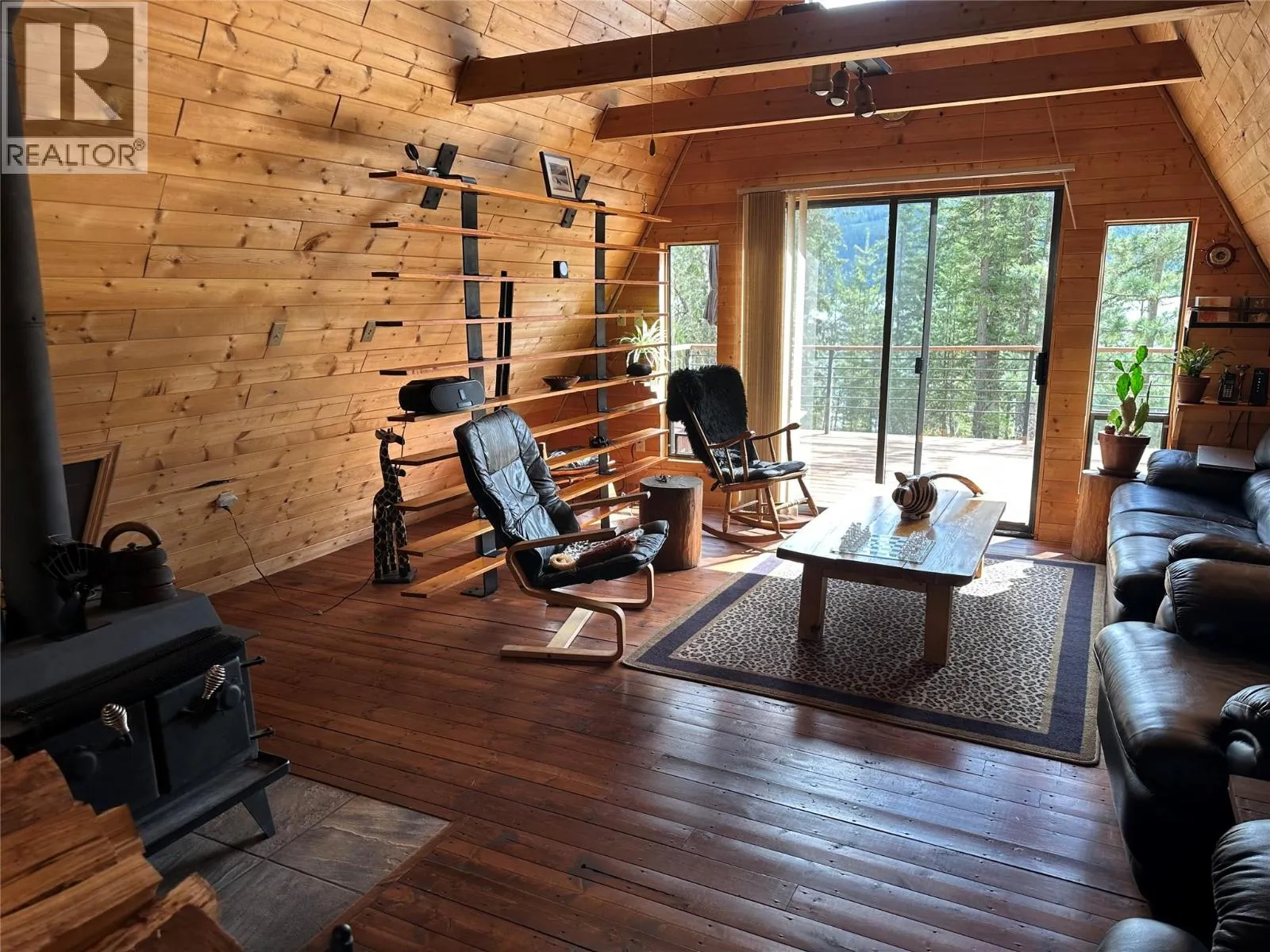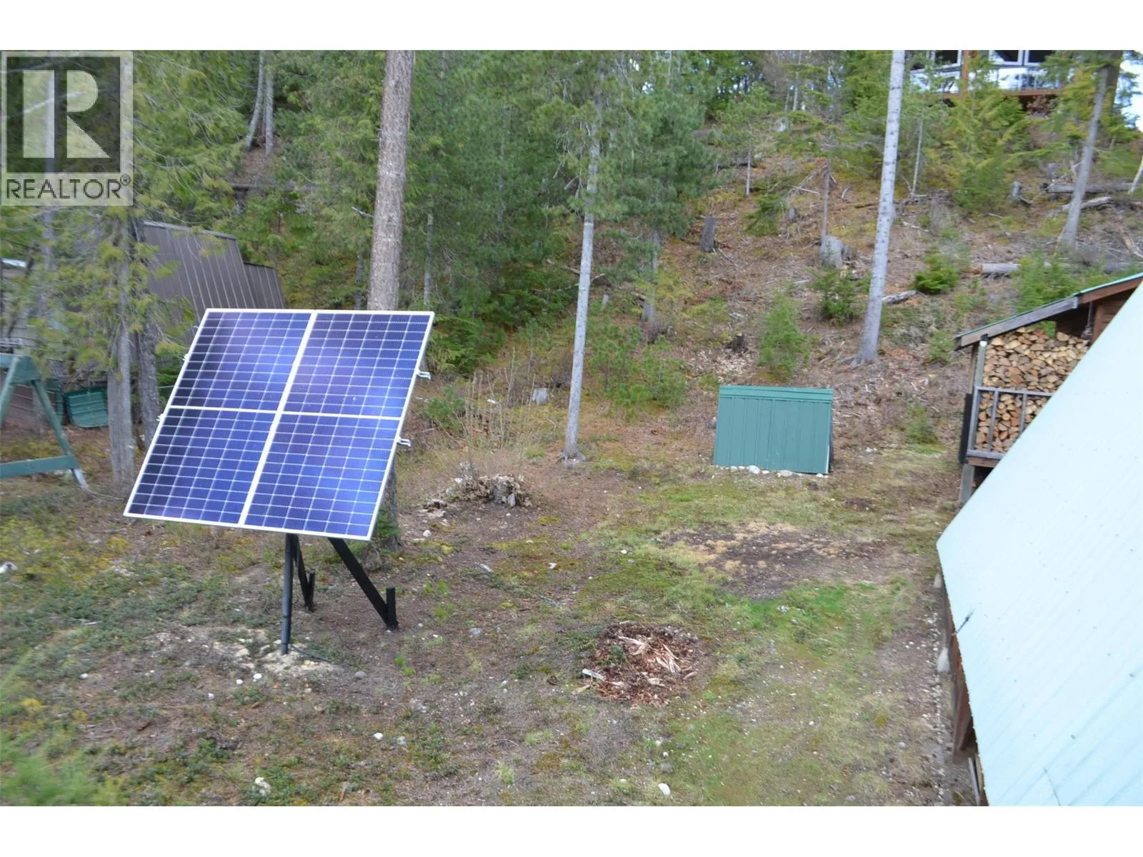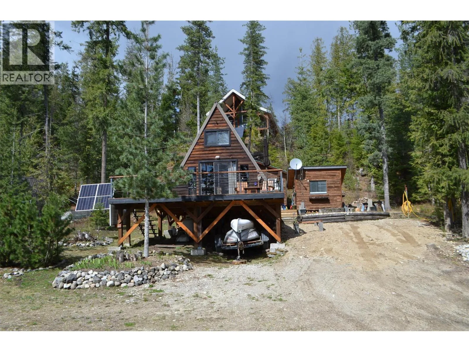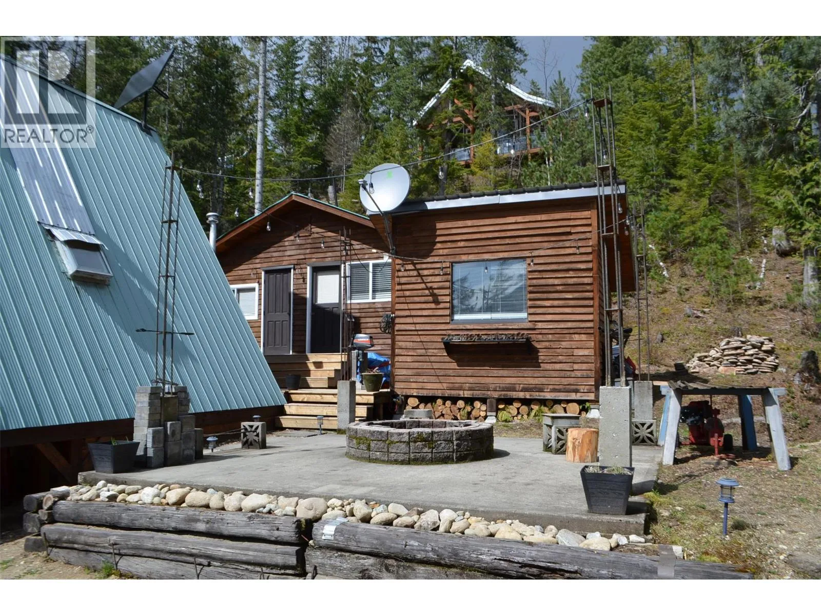 Charming A-Frame cabin with 2 bedrooms, 1 bath, and a spacious deck offering stunning views of both the lake and the mountains. Located in a waterfront development with a private common beach and dock next to the serene marine park, this off-grid property boasts solar power, and satellite internet. Enjoy easy access to the sandy shores of Shuswap Lake and unwind by the inviting firepit area. A perfect retreat for nature lovers seeking tranquility and serenity by the water. (id:27476)
