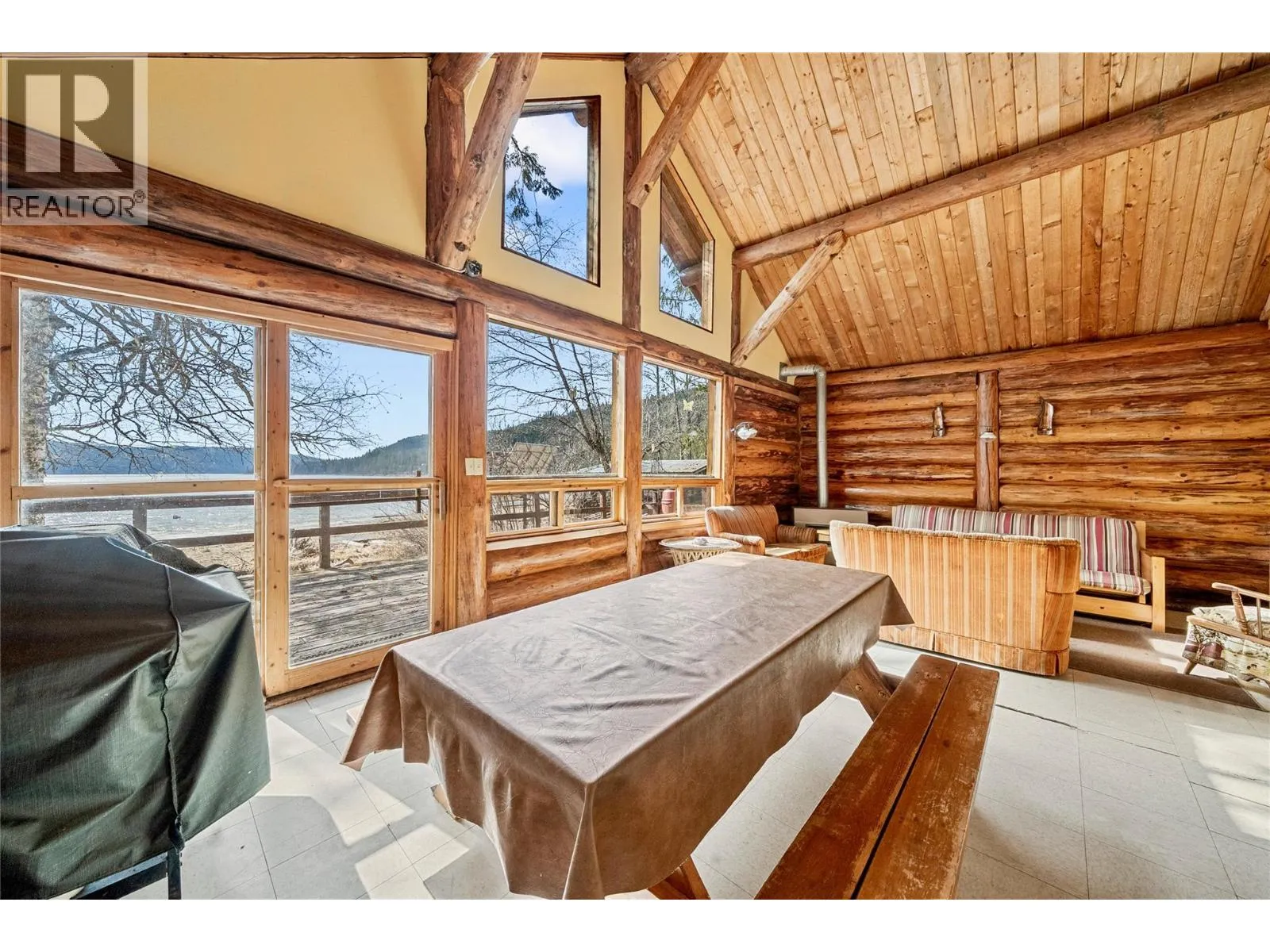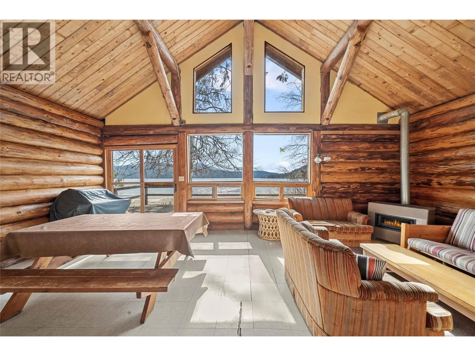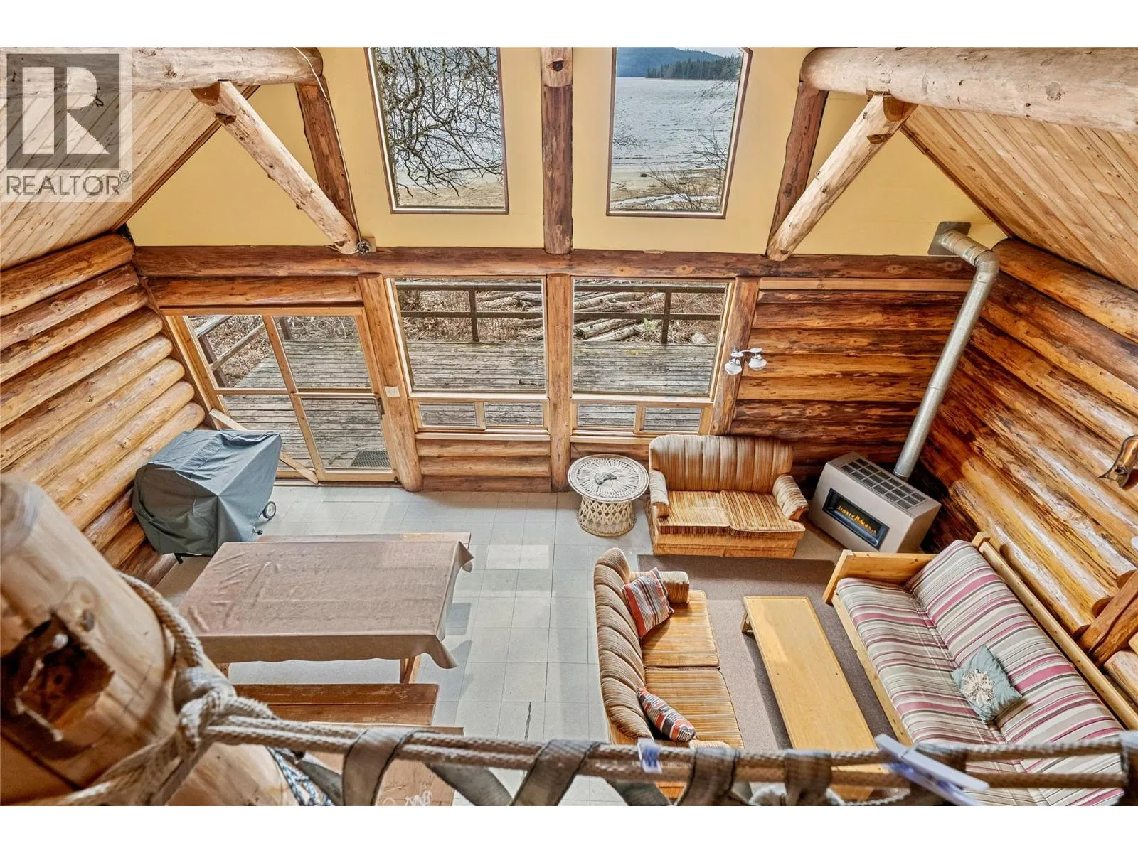 Escape to the unparalleled beauty of the North Shuswap with this rustic, fixer-upper, off-grid log home, perfectly nestled within the tranquil embrace of Dasniers Bay and enveloped by a lush canopy of majestic trees. This south-facing lakefront sanctuary offers a truly idyllic retreat, boasting a gently sloping, white sand beach of your own where crystal-clear waters invite endless summer memories for family and friends of all ages. The hand-built cedar cabin radiates authentic rustic charm through its beautiful post-and-beam architecture, featuring an airy, open-concept layout crowned by vaulted ceilings that allow brilliant natural light to flood the space. A cozy main-floor bedroom and a spacious loft provide abundant sleeping quarters, while the expansive deck invites you to savour breathtaking panoramic views of the lake. True off-grid serenity awaits in this intentionally rustic home, equipped with a 375 lb. propane tank, gas appliances, central propane heating for crisp mornings, loft water storage, and on-demand hot water, alongside superb potential for future solar panel integration. Sold ""AS IS"" and requiring a serious handymanâs touch, this unique property serves as a spectacular canvas to lovingly restore and personalize your dream recreational getaway. With a Crown lease extending to 2036 (renewable in 15-year increments) at $8,040.00 annually, this majestic Shuswap haven is ready for its next chapter. Immediate possession is available. All furniture included. (id:27476)
