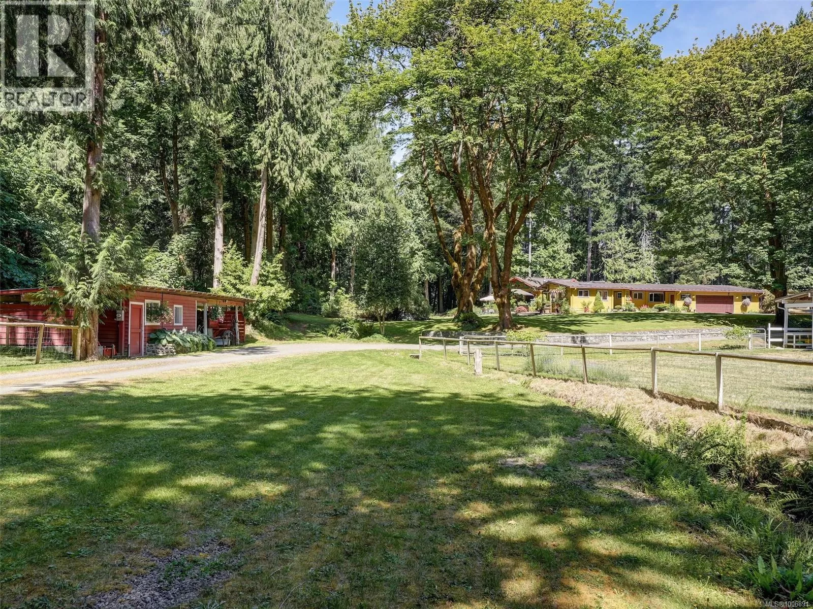 Mystic Maples, a serene country estate beside Shawnigan Lk School, mins from the village/lake. Zoned R3 w/ subdivision potential, this exceptional property offers the perfect balance of privacy, opportunity, & lifestyle. Ideal for equestrians & out-door enthusiasts, prof. drained riding ring featuring summer/winter paddocks, & a small stable. 2 tranquil ponds enrich the natural setting. A 2009 timber-frame addition (sourced from the property) of a stunning primary suite w/ floor-to-ceiling windows, leather flooring, a Blaze King F/P, & heated rock steps, brings even more character to the home. Additional features incld brand new metal roof, triple garage, heated crawl space, a deep 530ft well w/ 2022 pump, & underground services from the gated entry. A powered boat shed/carport offers options. On septic & well, w/ nearby access to community water & sewer, this is refined rural living at its best. Book a showing today to immerse yourself in this oasis of calm. (id:27476)