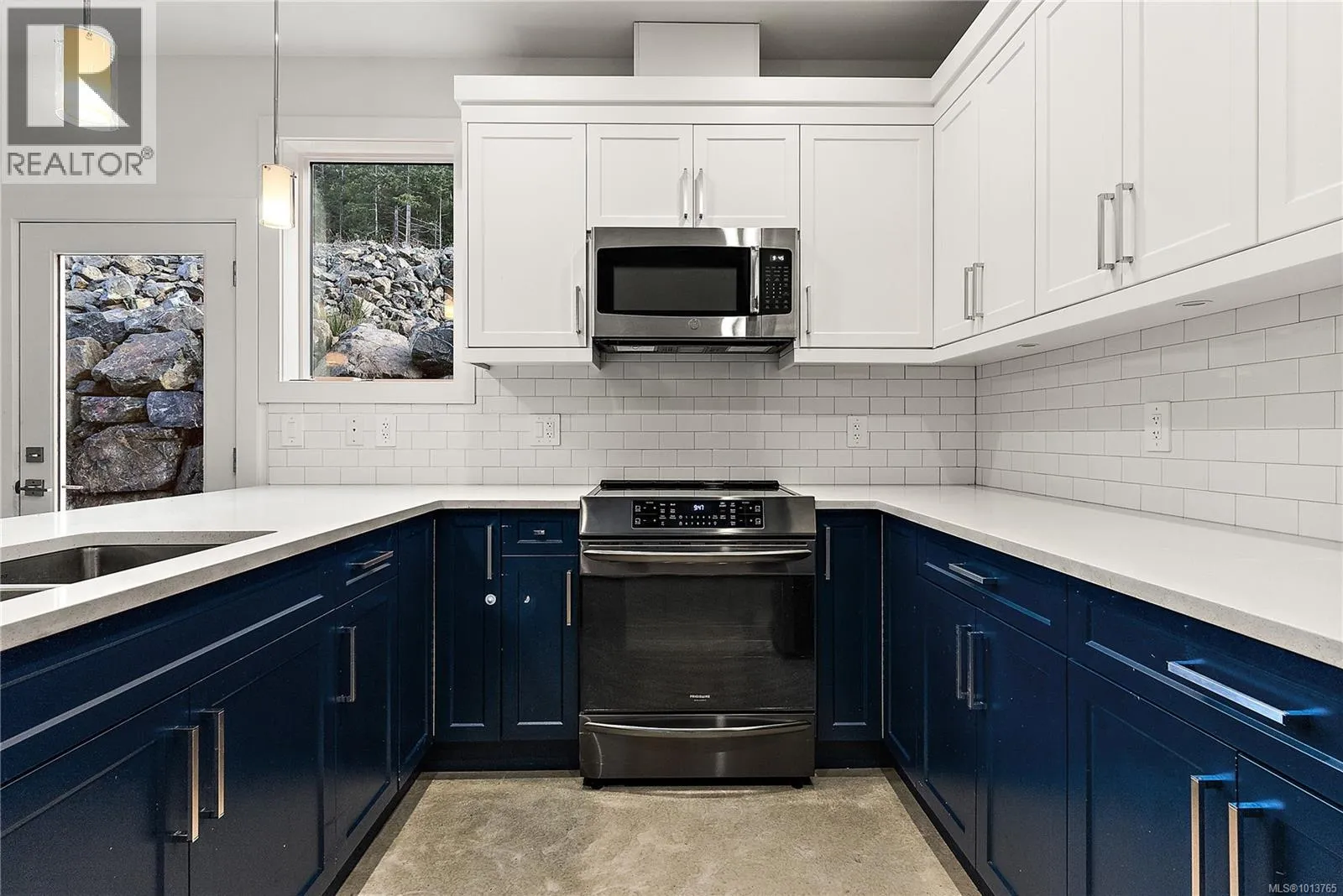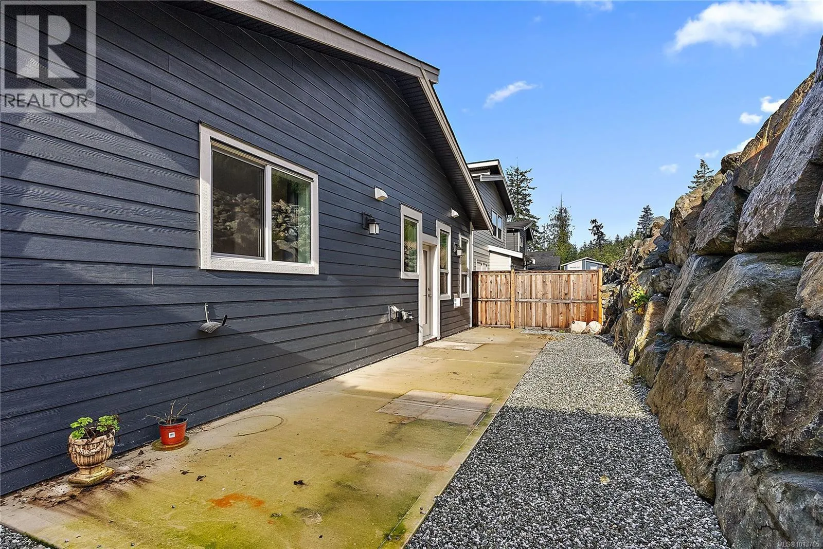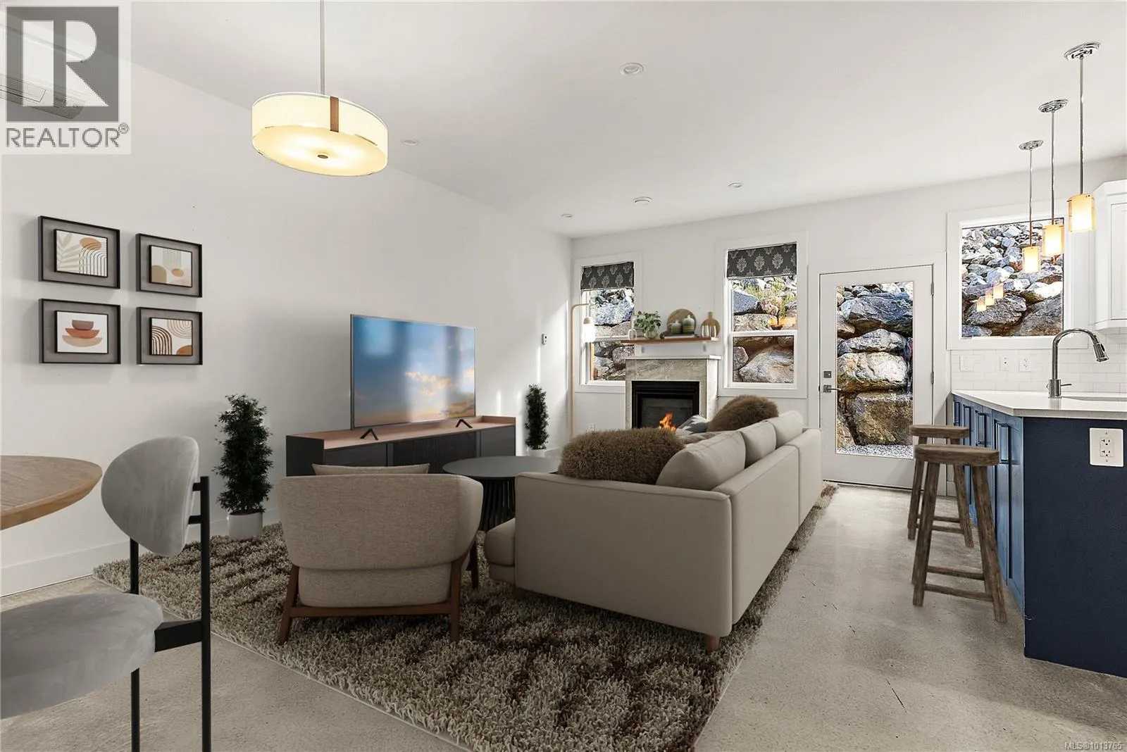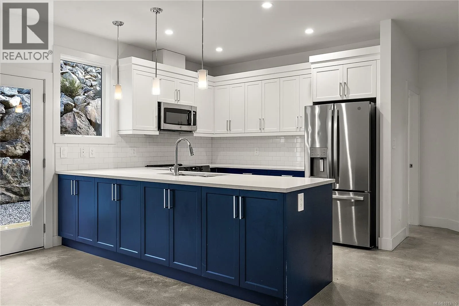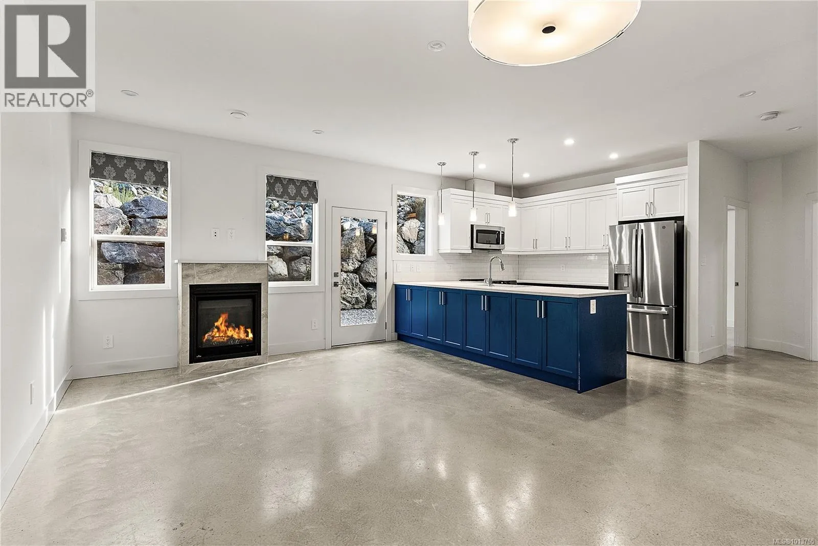 Introducing a stunning nearly new rancher for sale in the coveted Shawnigan Heights neighborhood. This modern home boasts a garage and double width driveway, offering ample parking and storage space. Enjoy the ease of single-level living and a thoughtfully designed layout that maximizes comfort and functionality. With high-quality finishes throughout, including quartz counters, stainless appliances, soft close cabinets and polished concrete floors, this home exudes contemporary elegance. You will love the open concept, no step living with soaring high ceilings and natural gas fireplace. Complete with 2 large bedrooms, 2 full bathrooms and a spacious den/office. Enjoy the benefits of having a new home warranty without paying the GST! Located in a sought-after area, residents can enjoy the tranquility of suburban living while being just 15 mins to amenities, schools, parks, and more. Don't miss the opportunity to own this exceptional property. (id:27476)